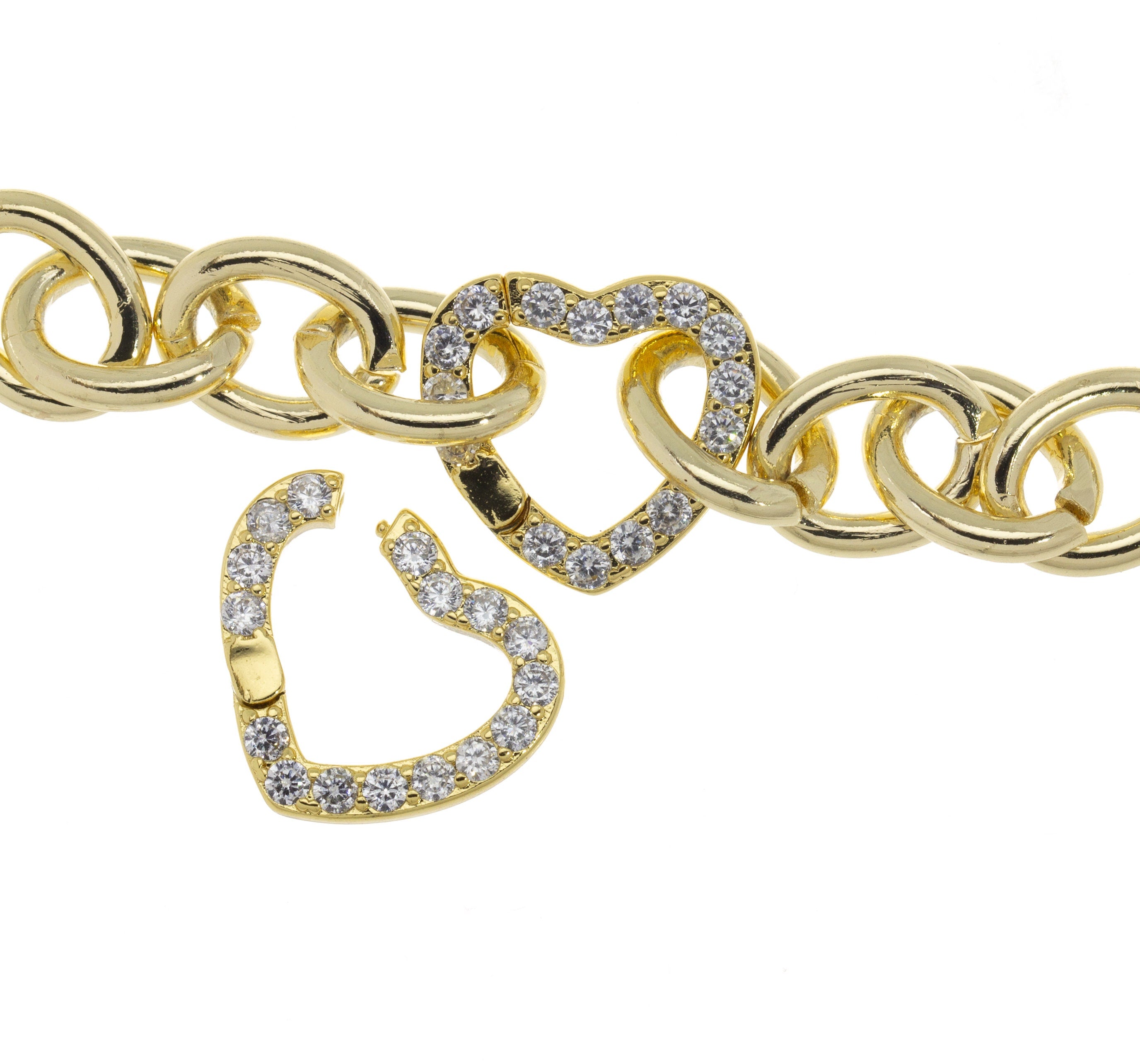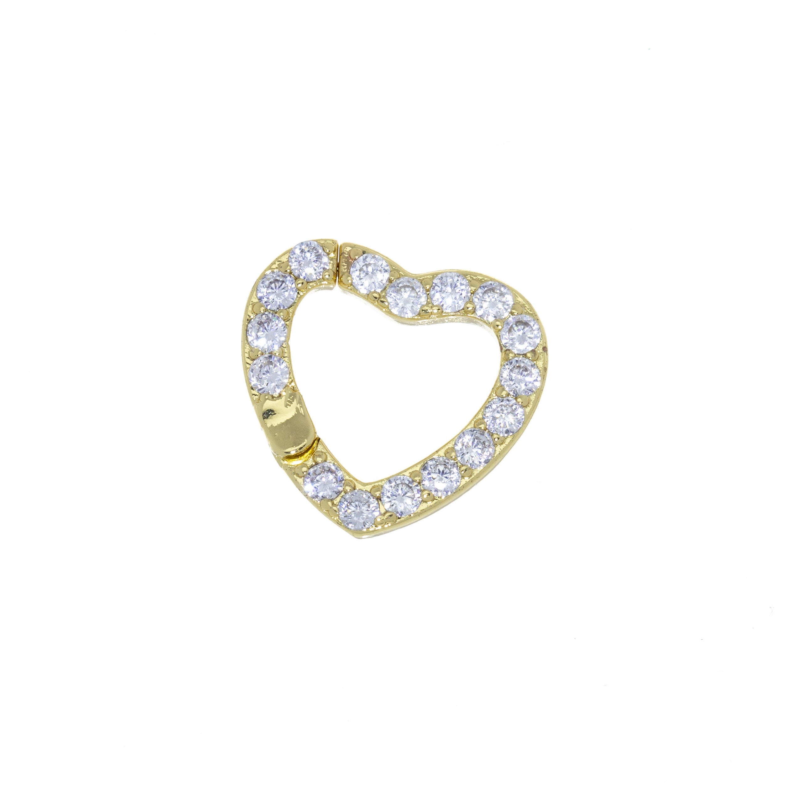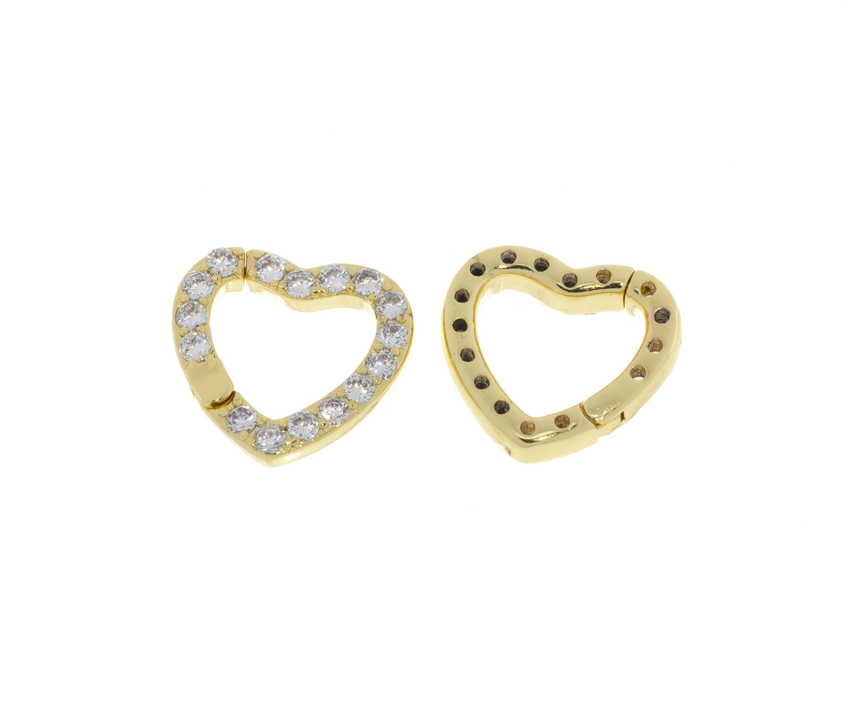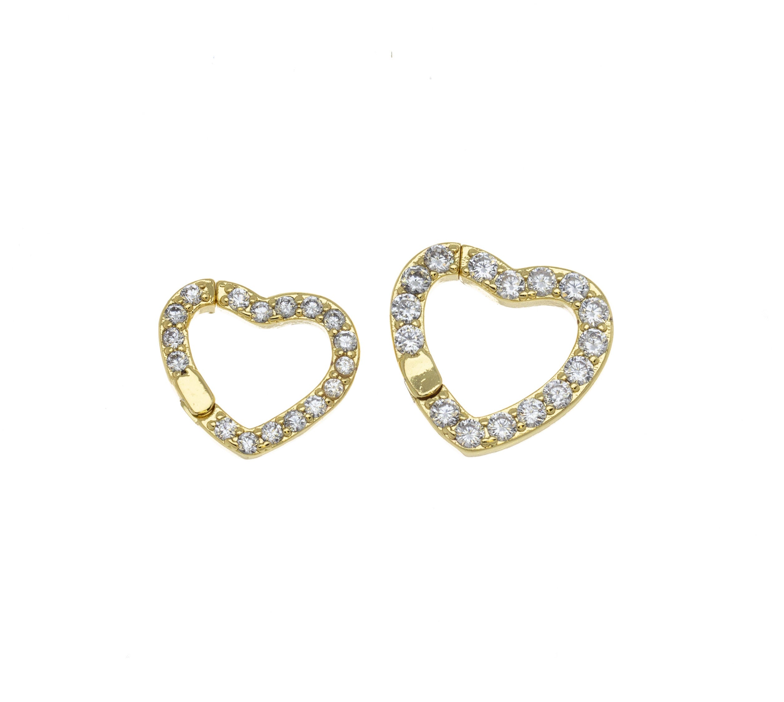 Heart Shape Enhancer Snap Close Clasp,Two Sizes Gold Enhancer Connector Clasp With CZ,Pave Heart Clasp,CLG303-CLG304
