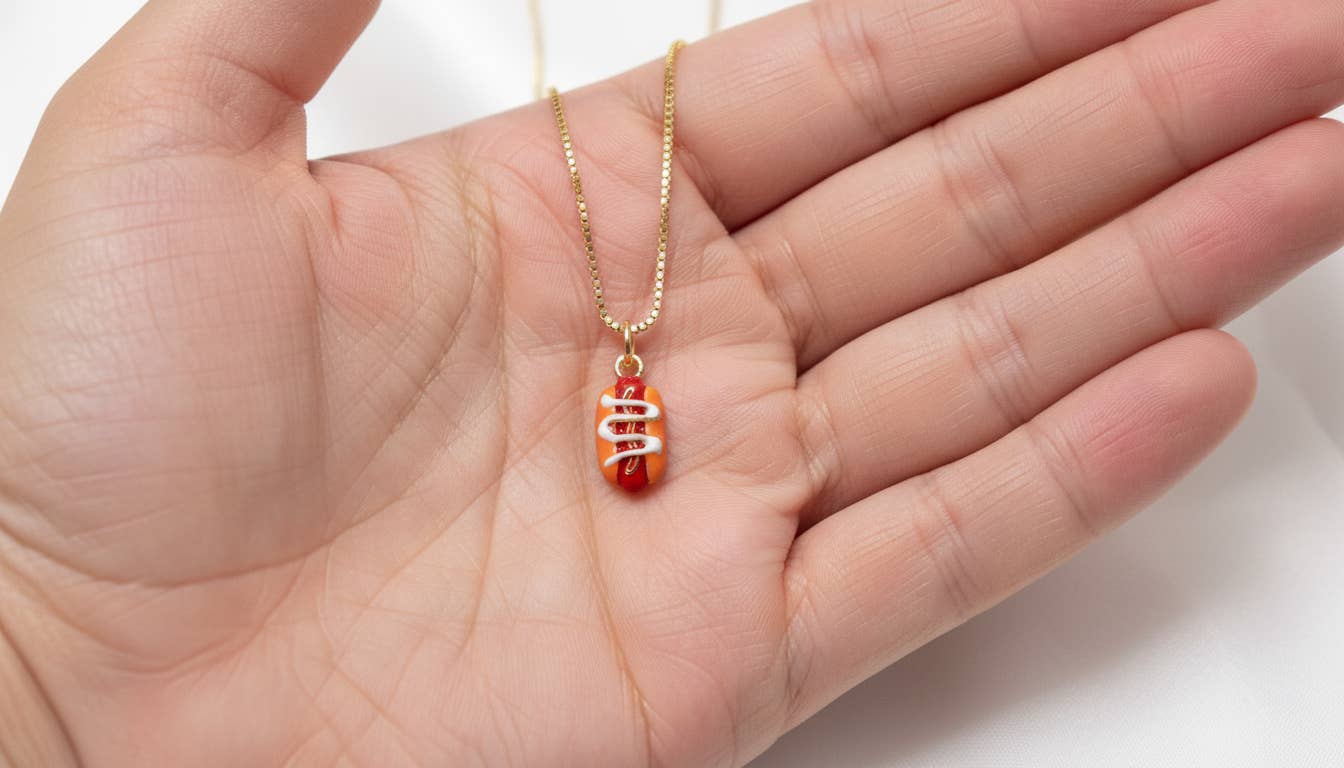 Hot Dog Charm for Jewelry Makers, Food charm, Hot Dog lover charm, Shiny Enamel Finish, CPG2894