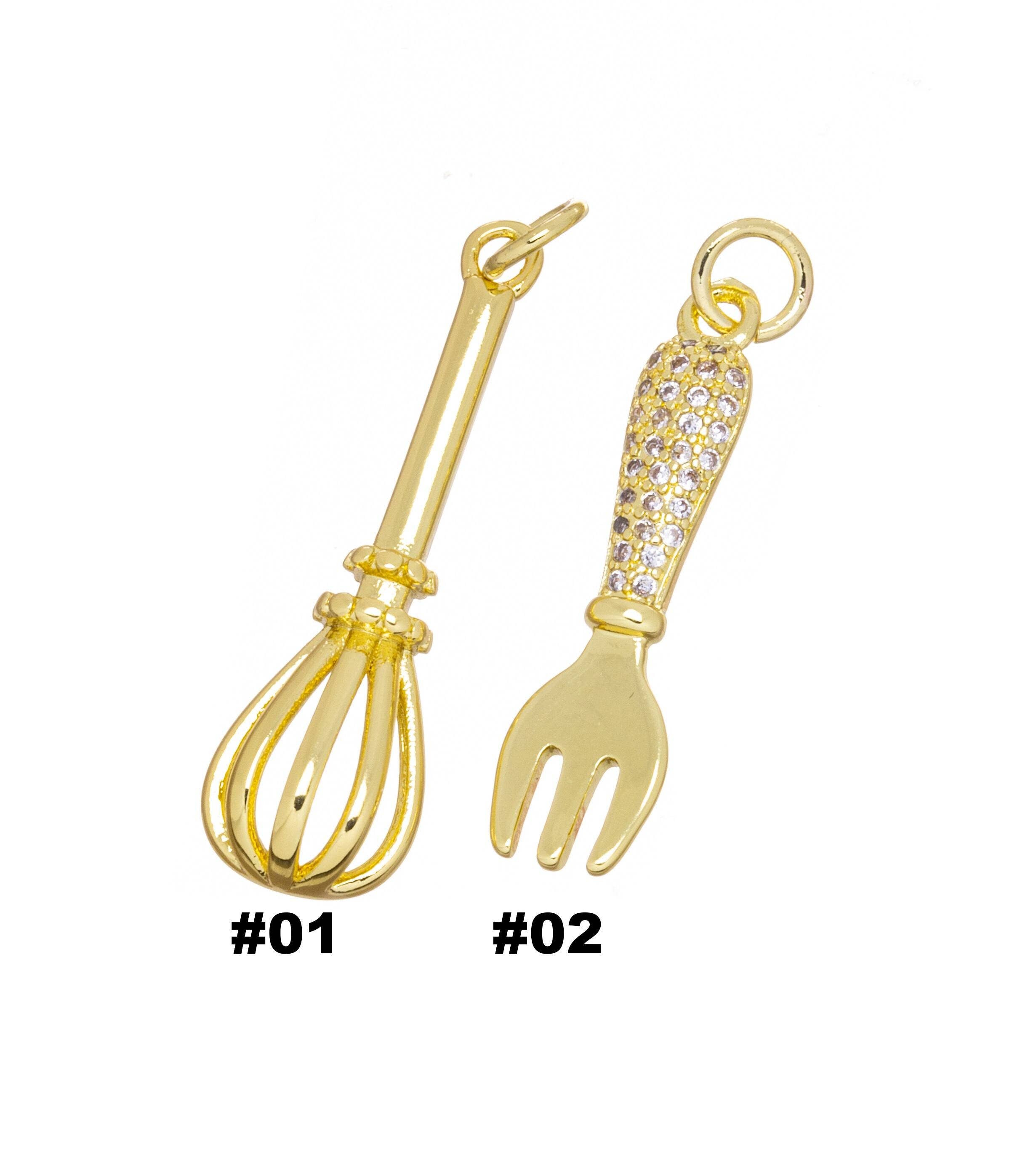 Kitchen Utensil Charms: Egg Whisk, Fork, Egg Beater
