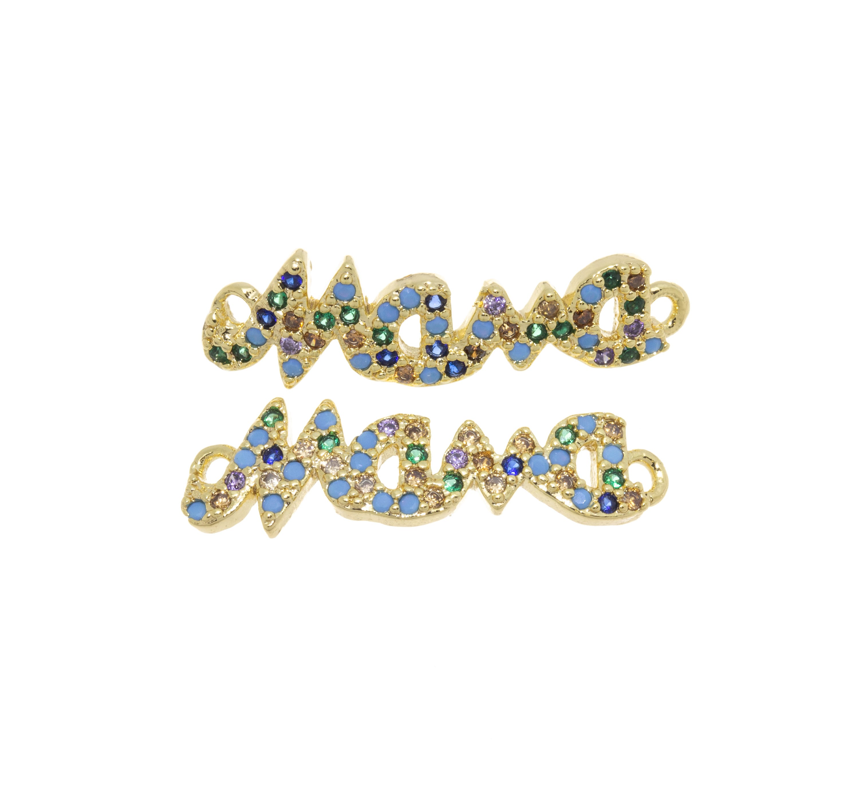 Mama Charm Connector For Bracelet,Mama Word Monogram Connector Charm,Mother’s Day Gift,Mama Pave CZ Monogram,CNG045