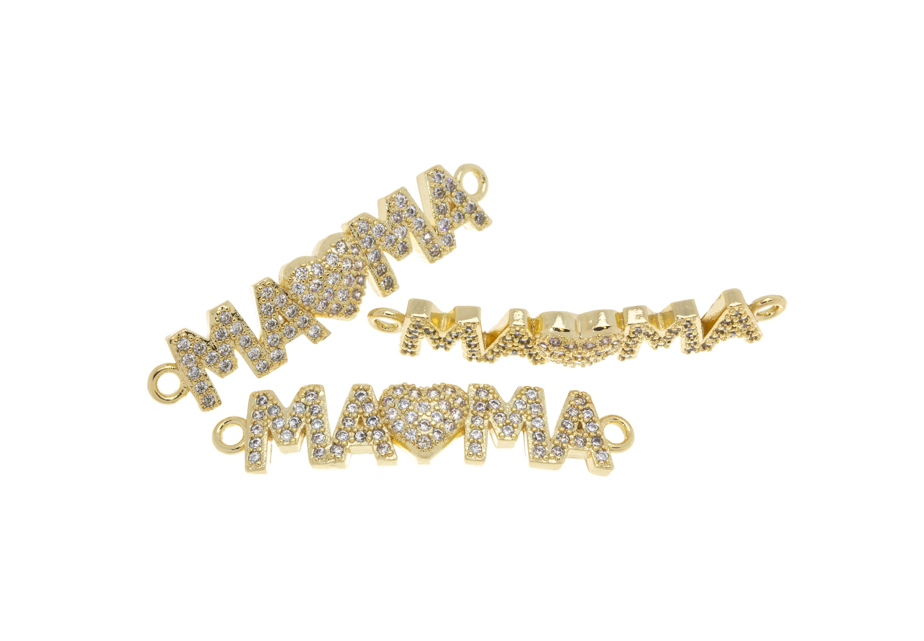 Mama Heart Connector Charm For Bracelet,Monogram Mama With Heart Connector Bracelet Charm,Gold Mama Bracelet Charm,CNG051