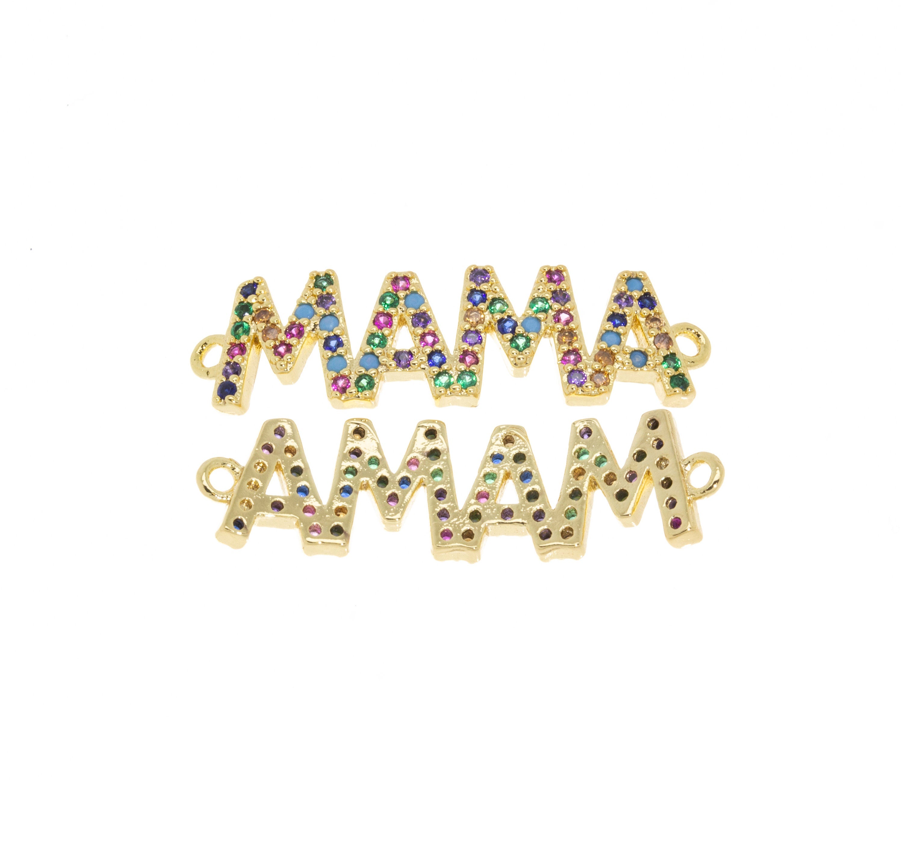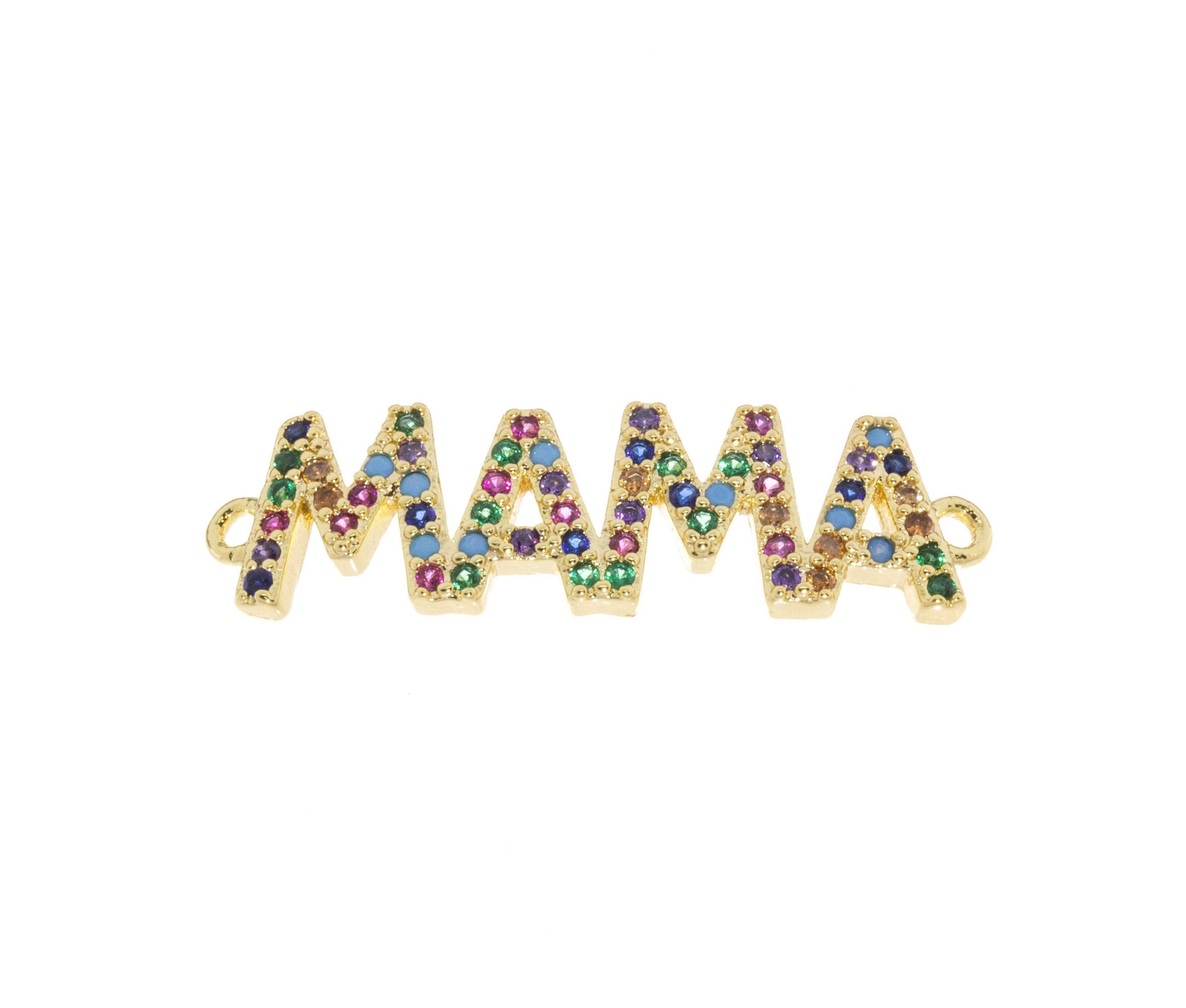 Mama Monogram Bracelet Charm,Mama Word Monogram Connector Charm,Mother’s Day Gift,Mama Pave CZ Monogram,CNG039