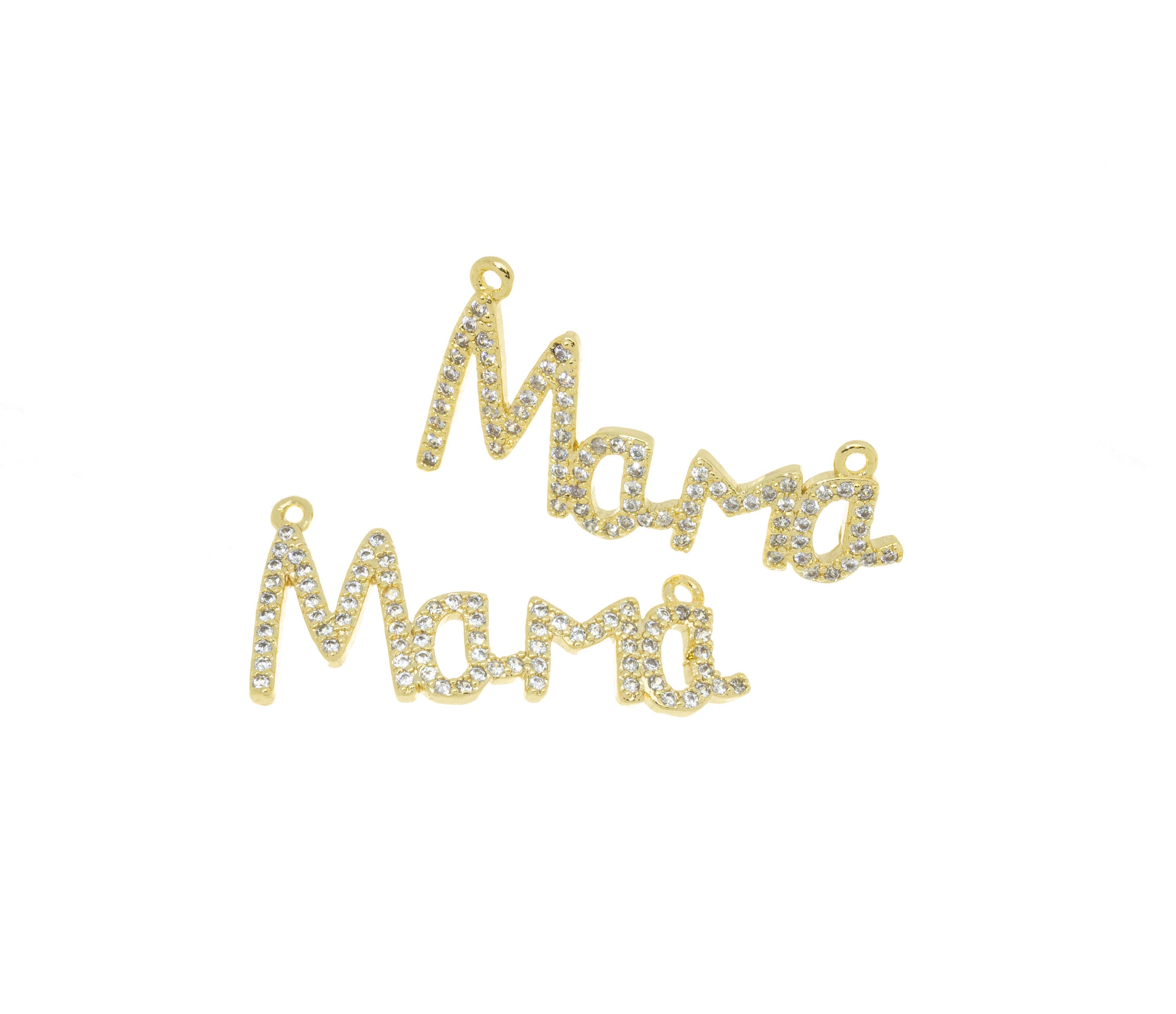 Mama Monogram Necklace Charm,Mama Word Monogram Connector Charm For Necklace,Mother’s Day Gift,Mama Pave CZ Monogram,CNG049