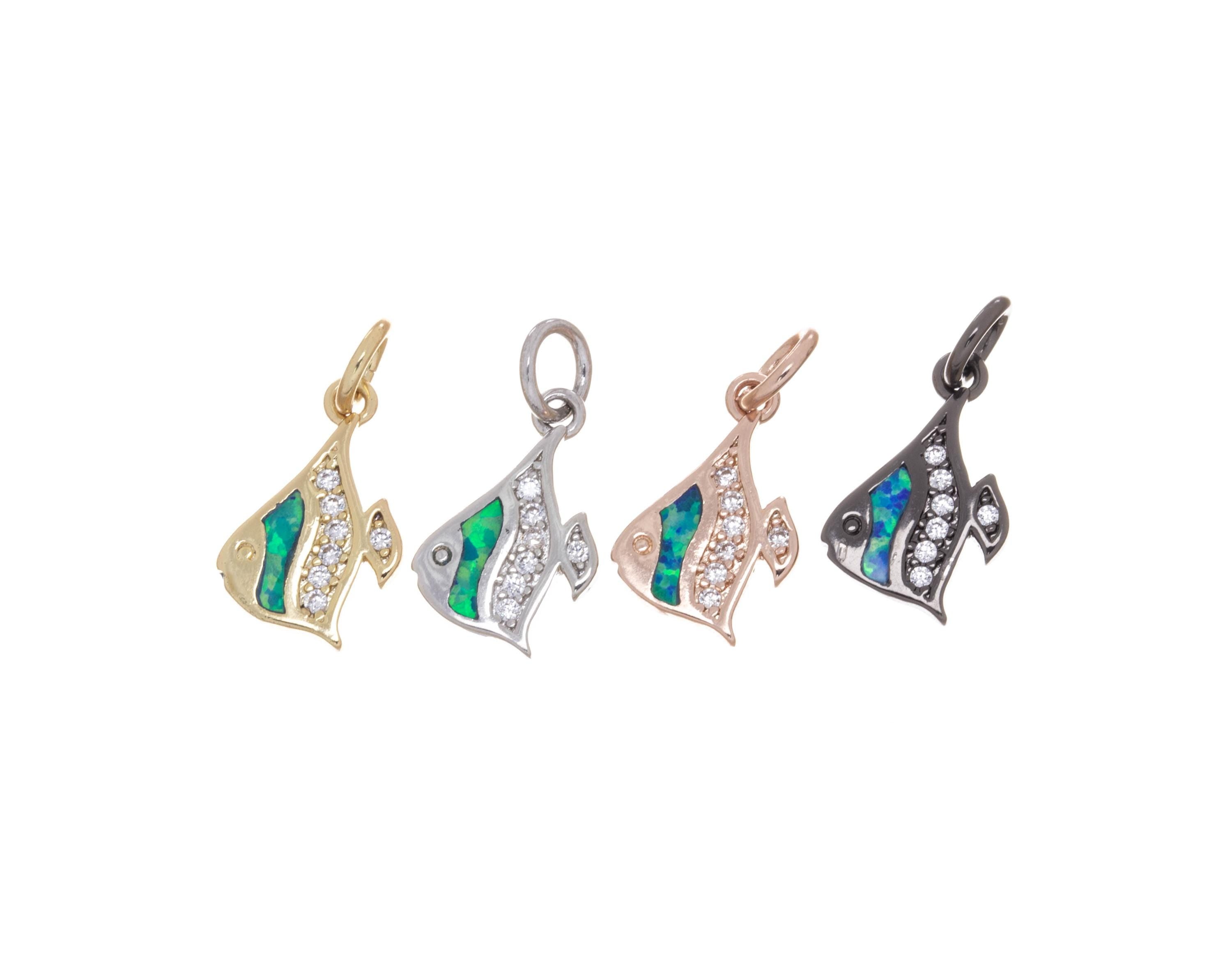Mini Angel Fish Charm,Opal Fish Charm For Jewelry Making,Dainty Exotic Fish Charm With Blue Opal,Permanent Jewelry Making Charm,CPG843