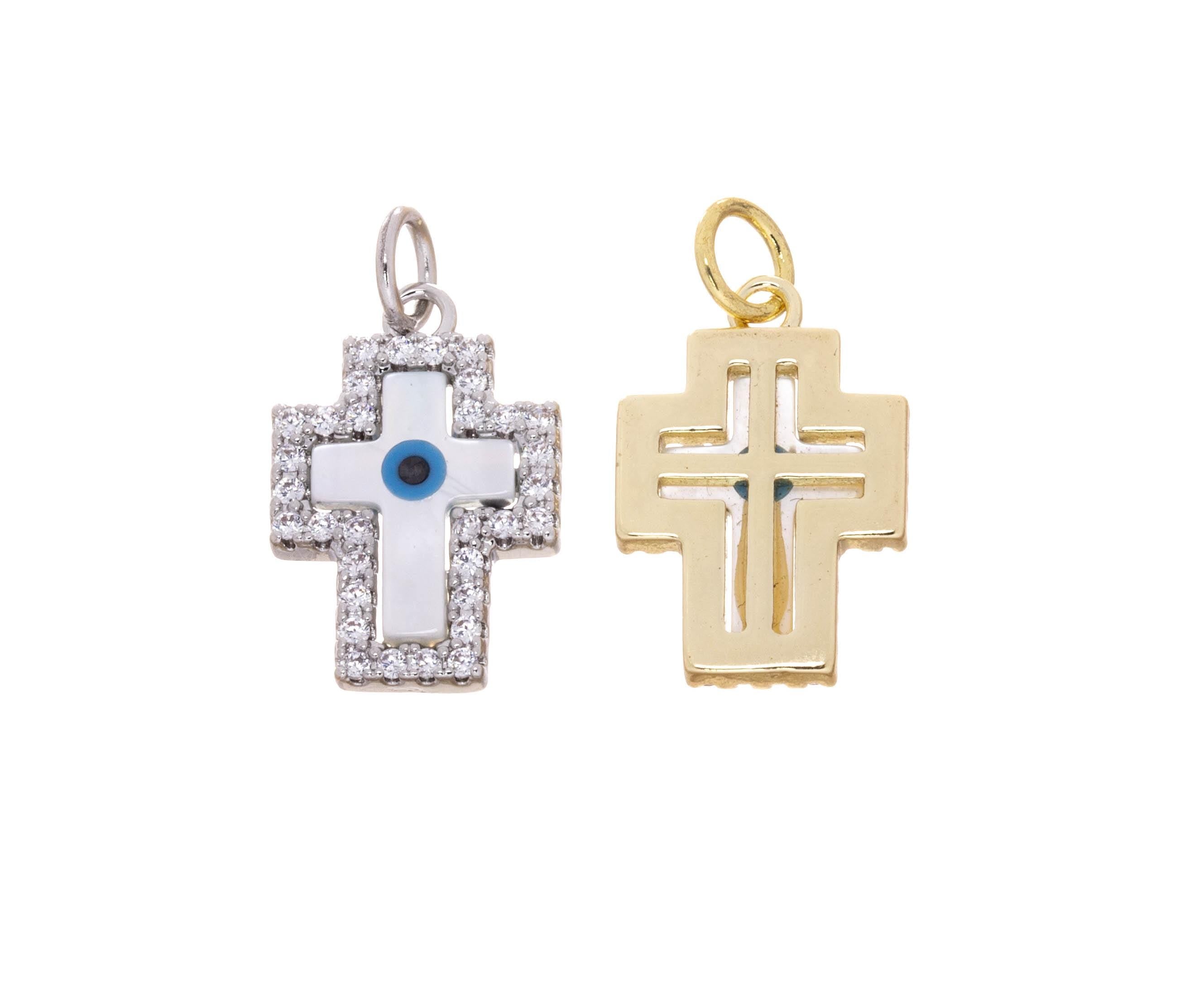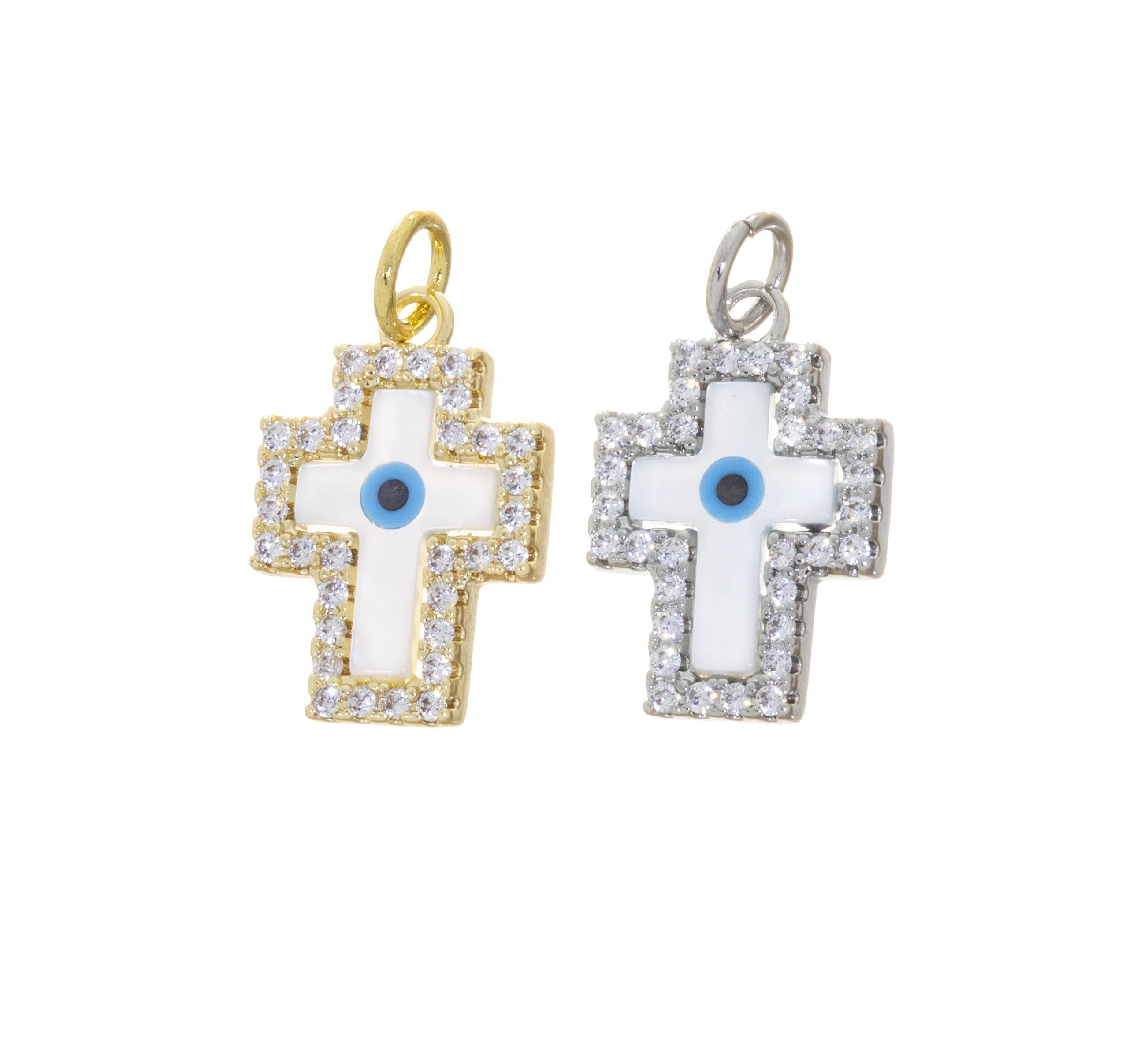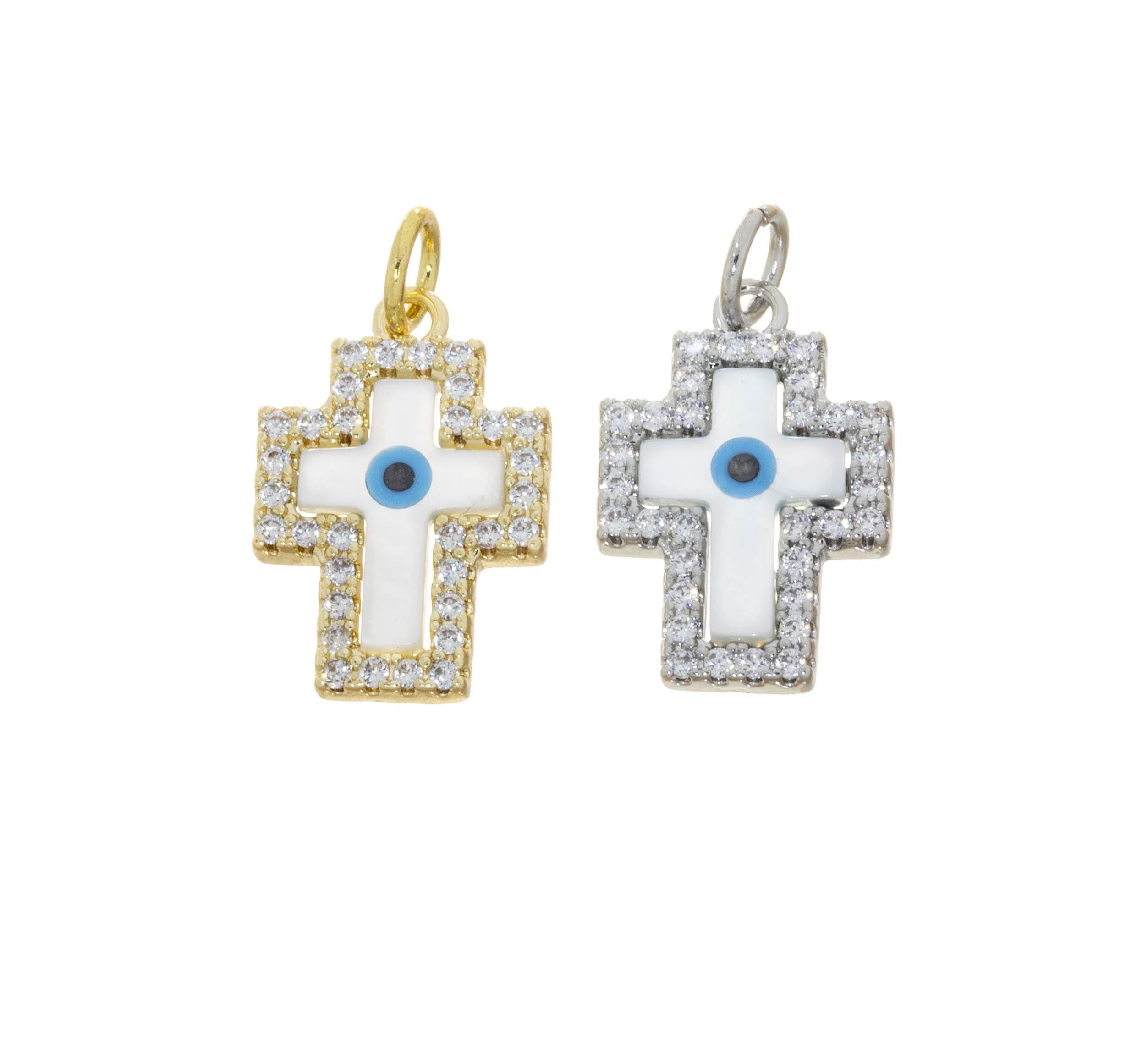 MOP Cross Amulet CZ Charm,MOP Evil Eye Cross Charm,Evil Eye Protection Charm,Cross Charm For Necklace,Turkish Nazar Evil Eye Charm,CPG831