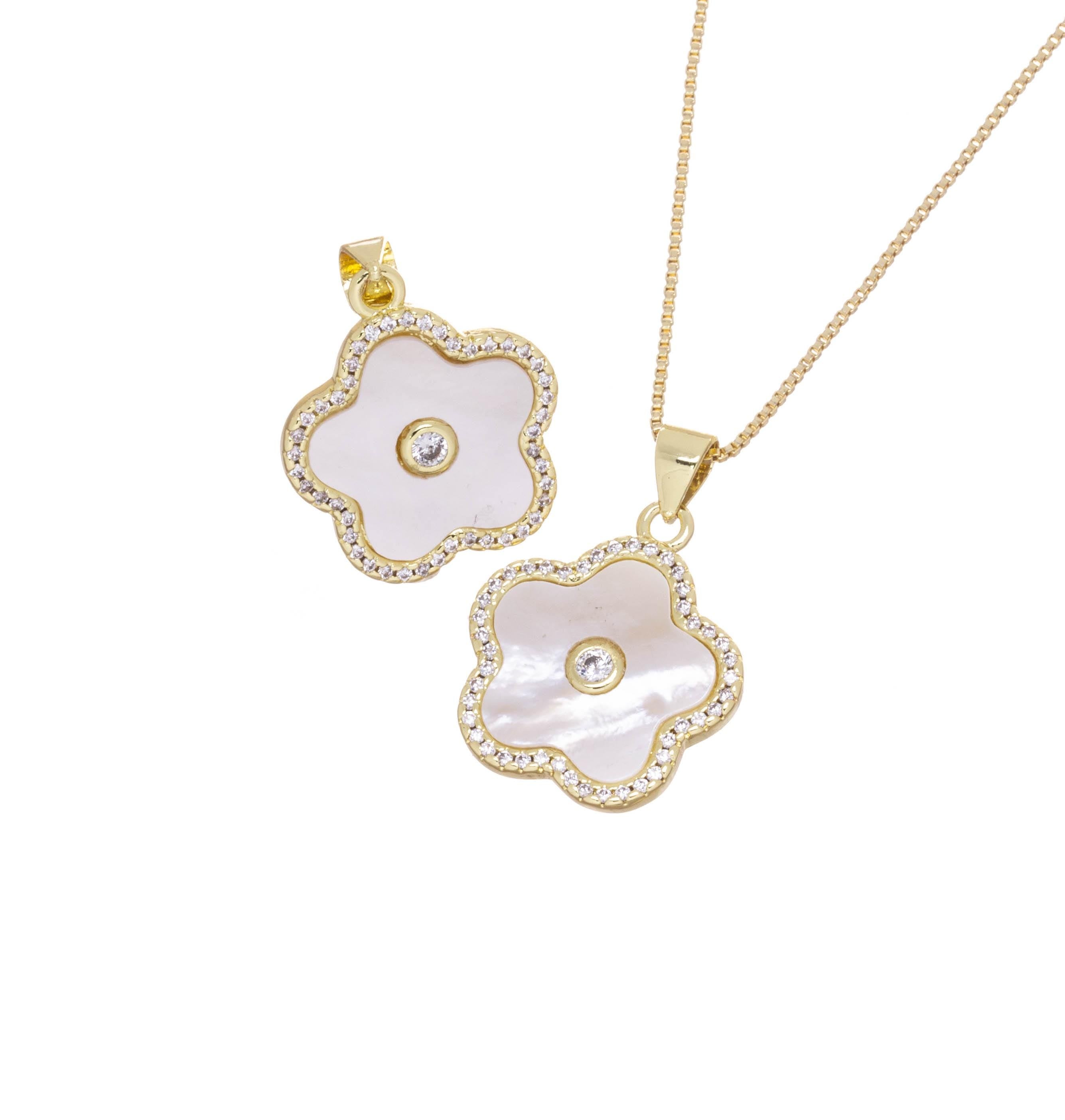 Mother Of Pearl Gold Flower Charm,Flower Charm With CZ,Mother Of Pearl Flower Charm,CZ Flower Charm,MOP Shell Flower Charm,CPG2706