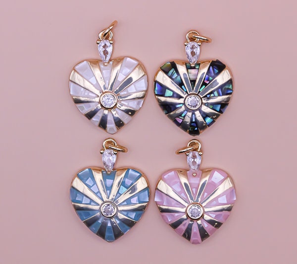 Mother of Pearl Mosaic Heart Pendant, 4 Colors, Love Pendant, Valentines day, White, Blue, Black, Pink, 1 pc or 10 pcs, WHOLESALE,CPG342