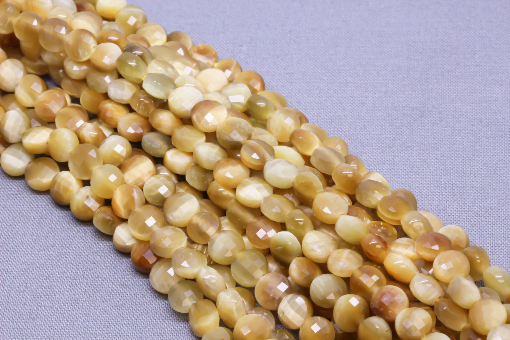 Natural Golden Tiger eye 6mm Faceted Puffy Round Coin Bead, 15.5 inches, FULL STRAND