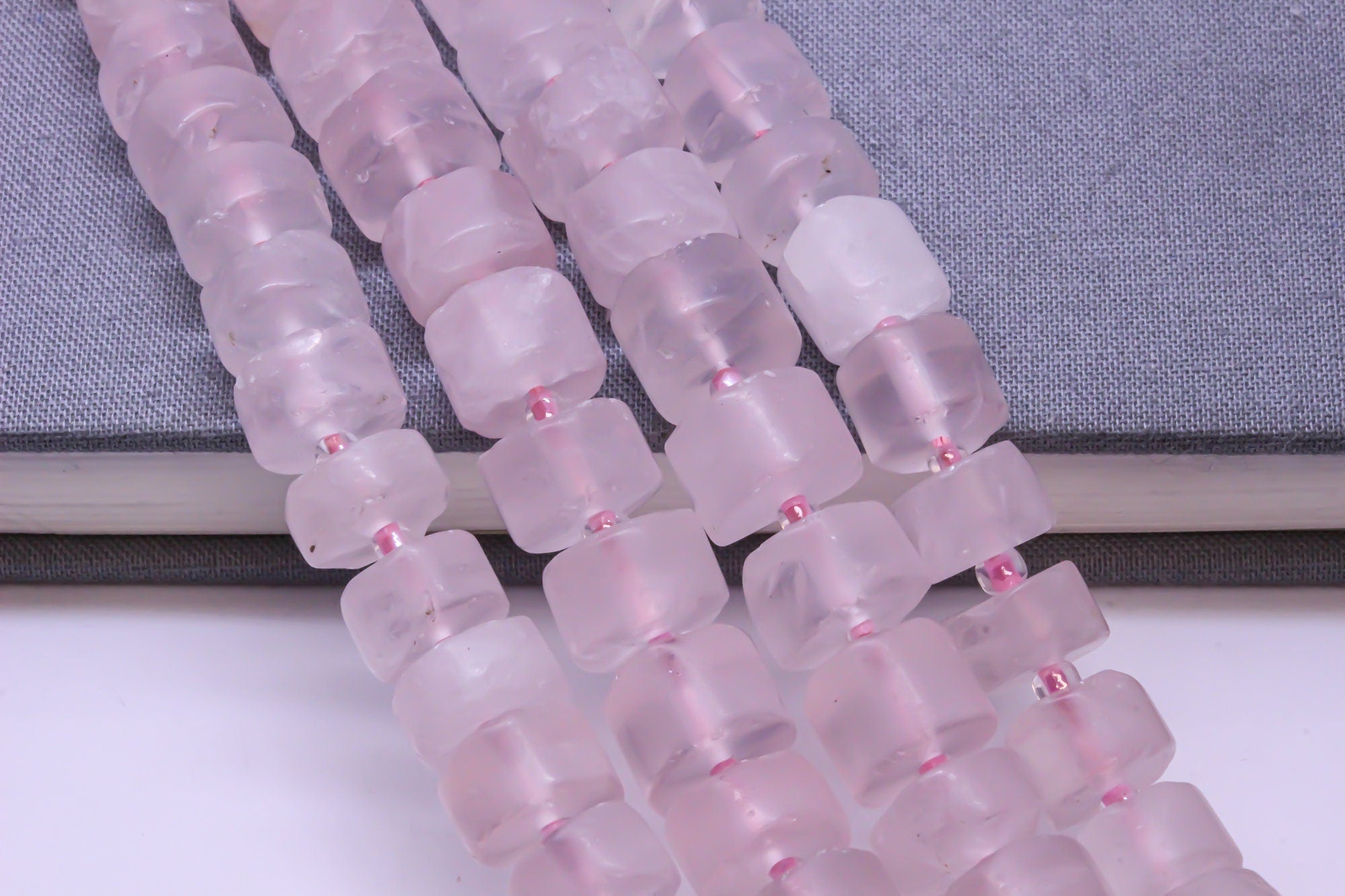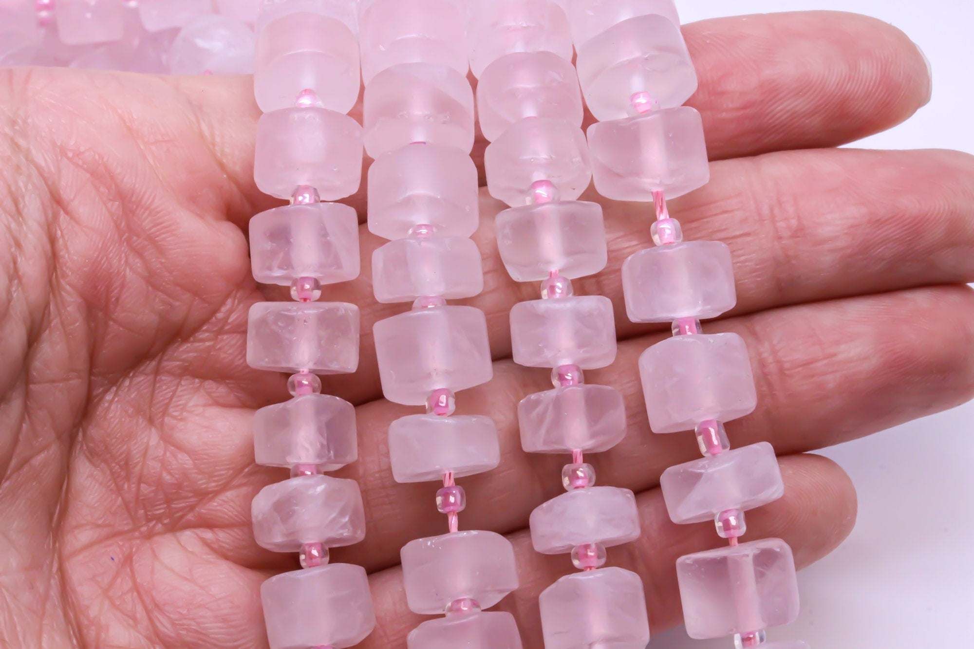 Natural Matte Finish Pink Rose Quartz Rondelle Beads, 10x6mm, Matte Tyre Beads, 15.5 inches, Full Strand