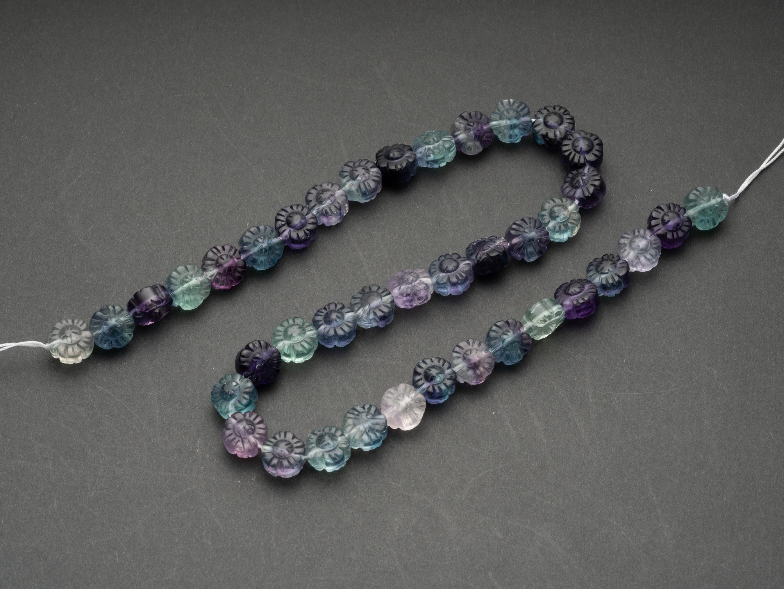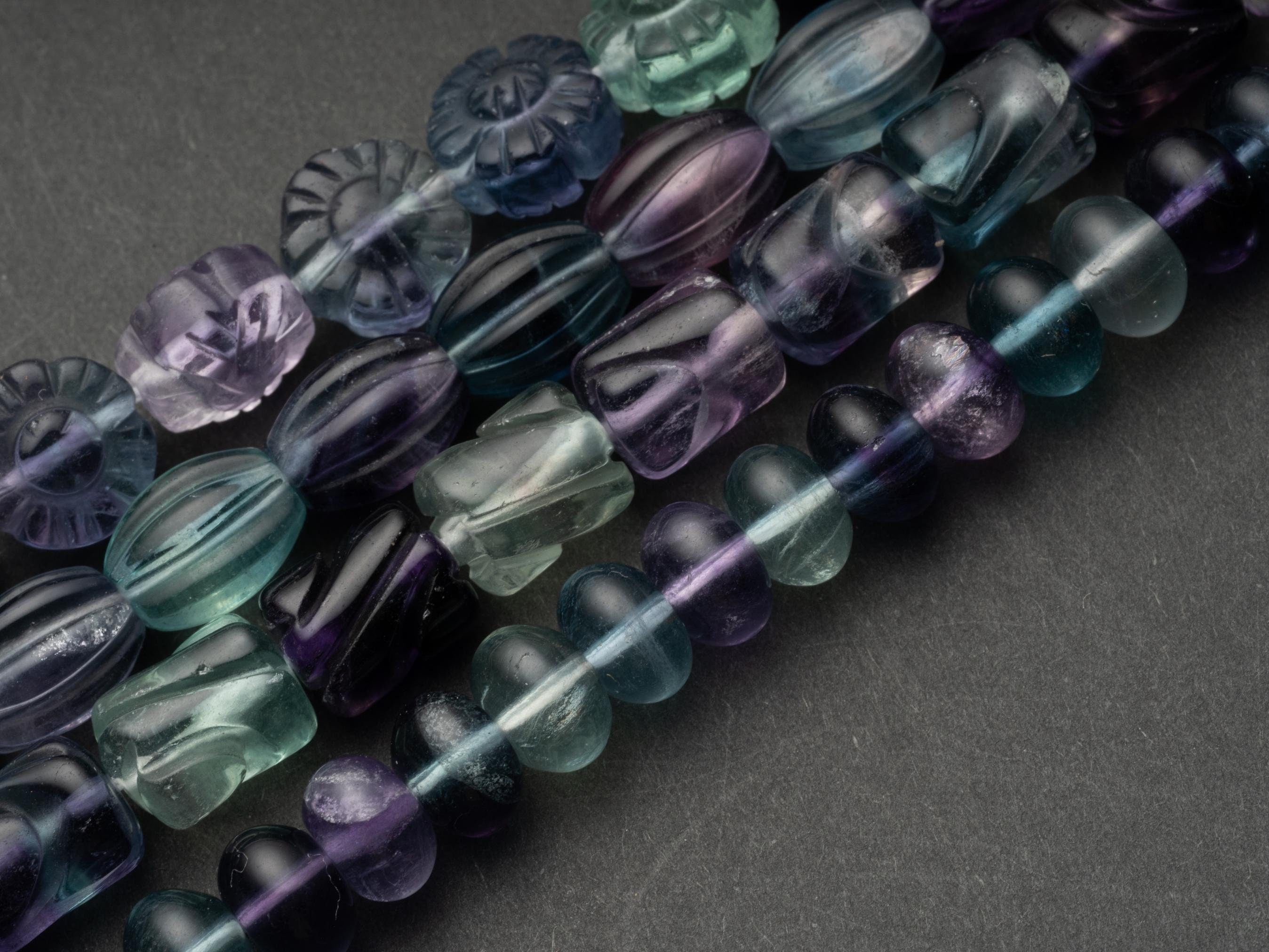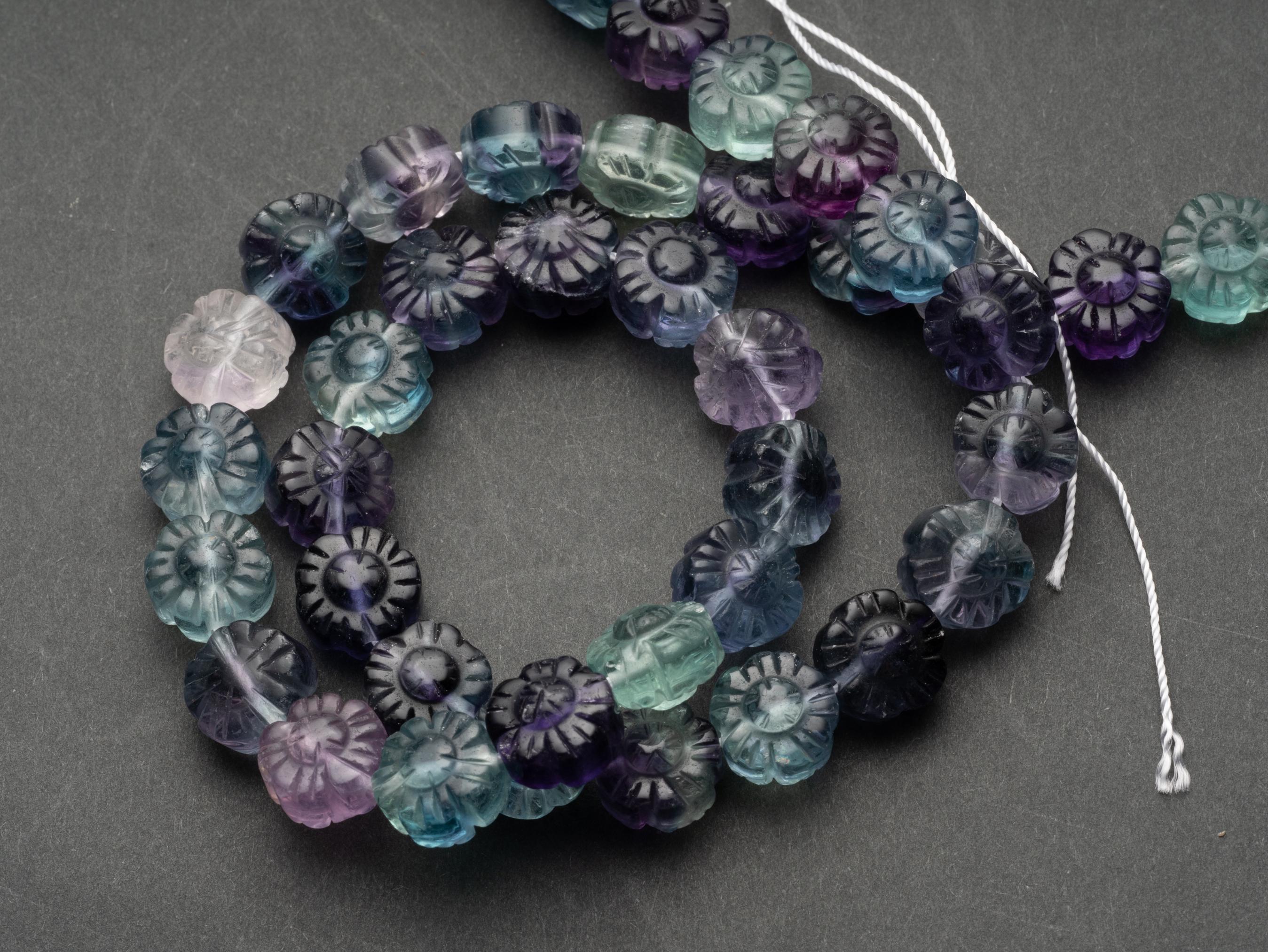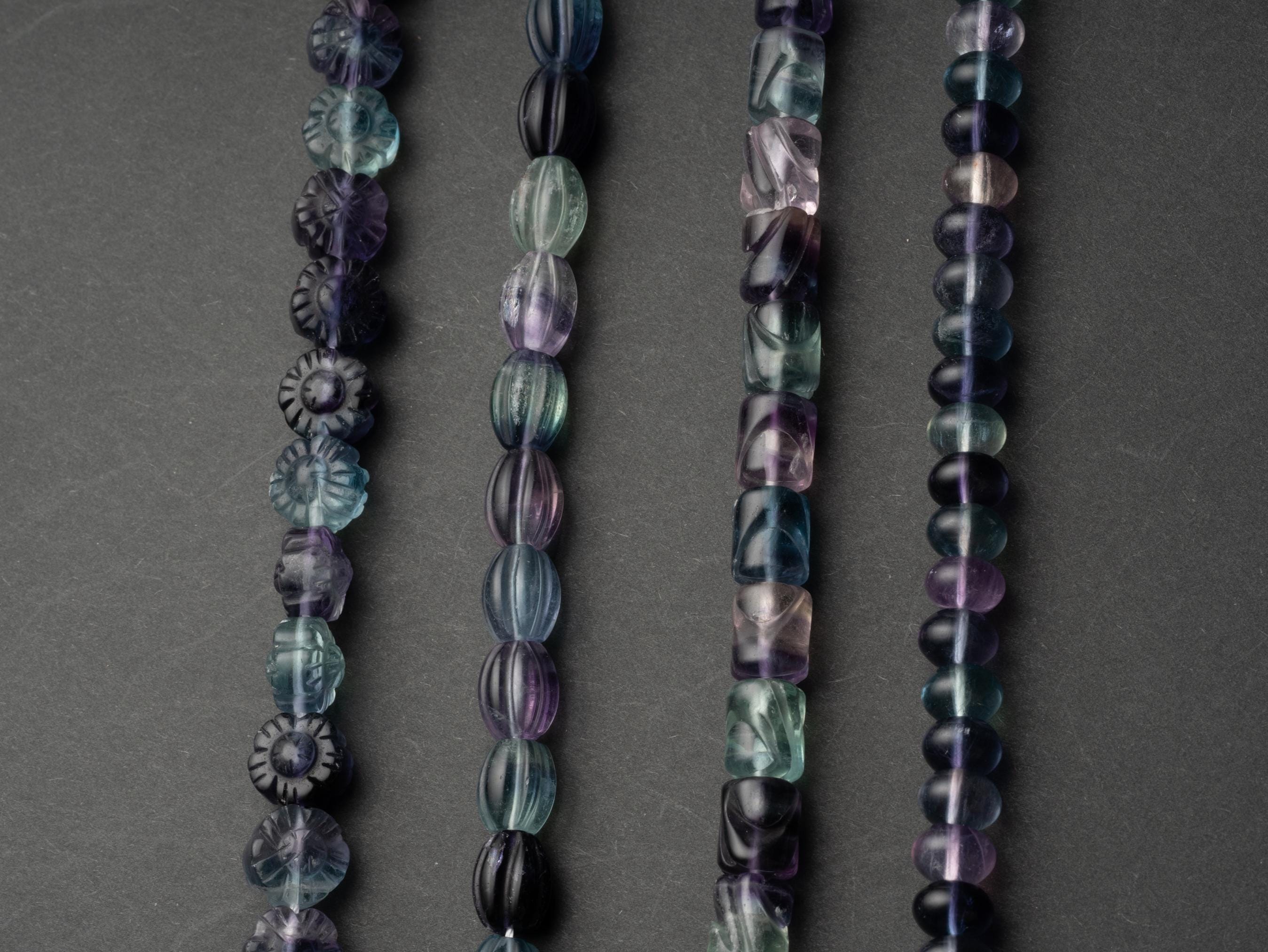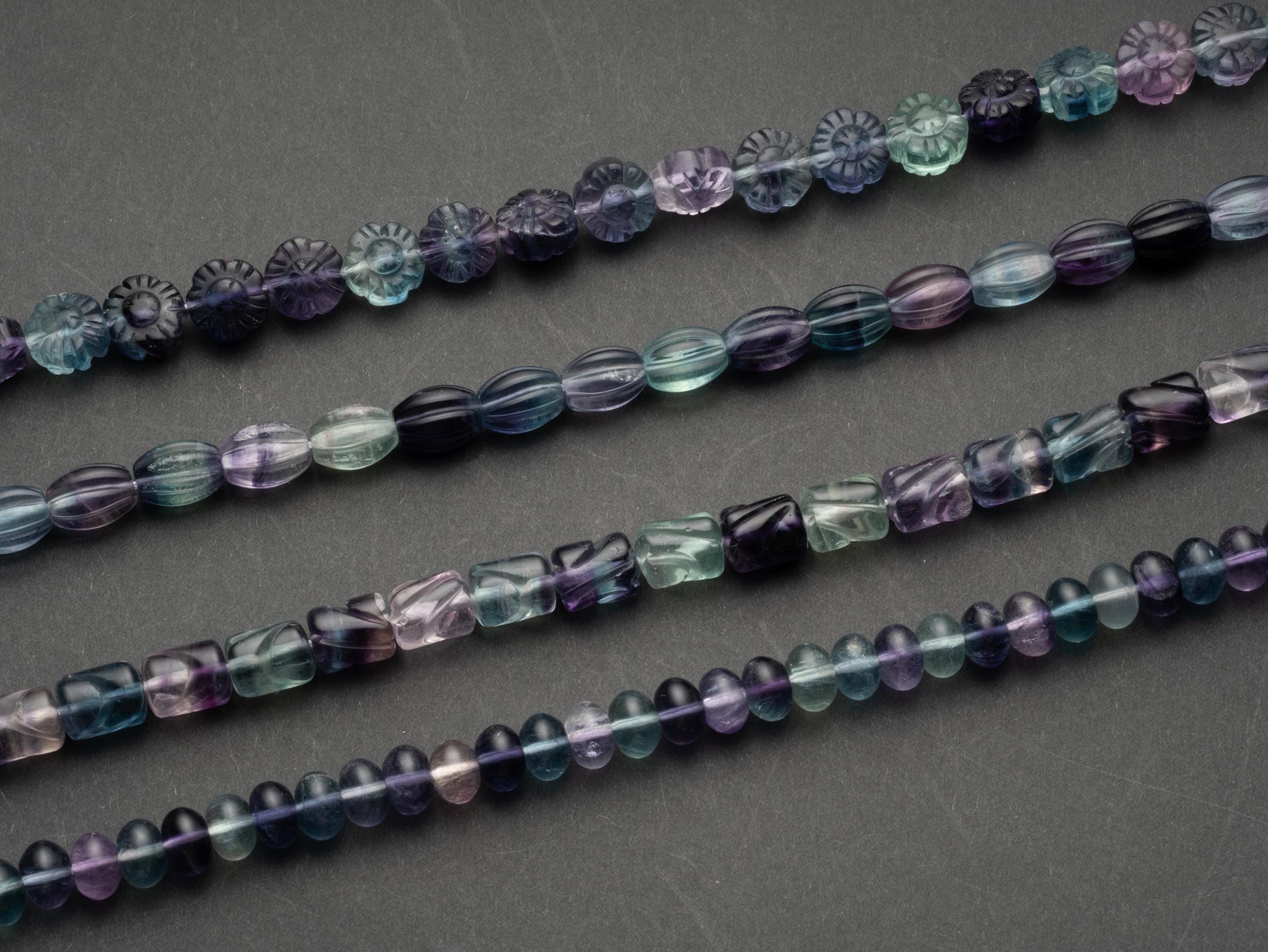 Natural Rainbow Fluorite Beads, 3 Styles Available: #001 Grooved Barrel, #002 Roundelle #003 Grooved Drum #004 Flower, FL001-004