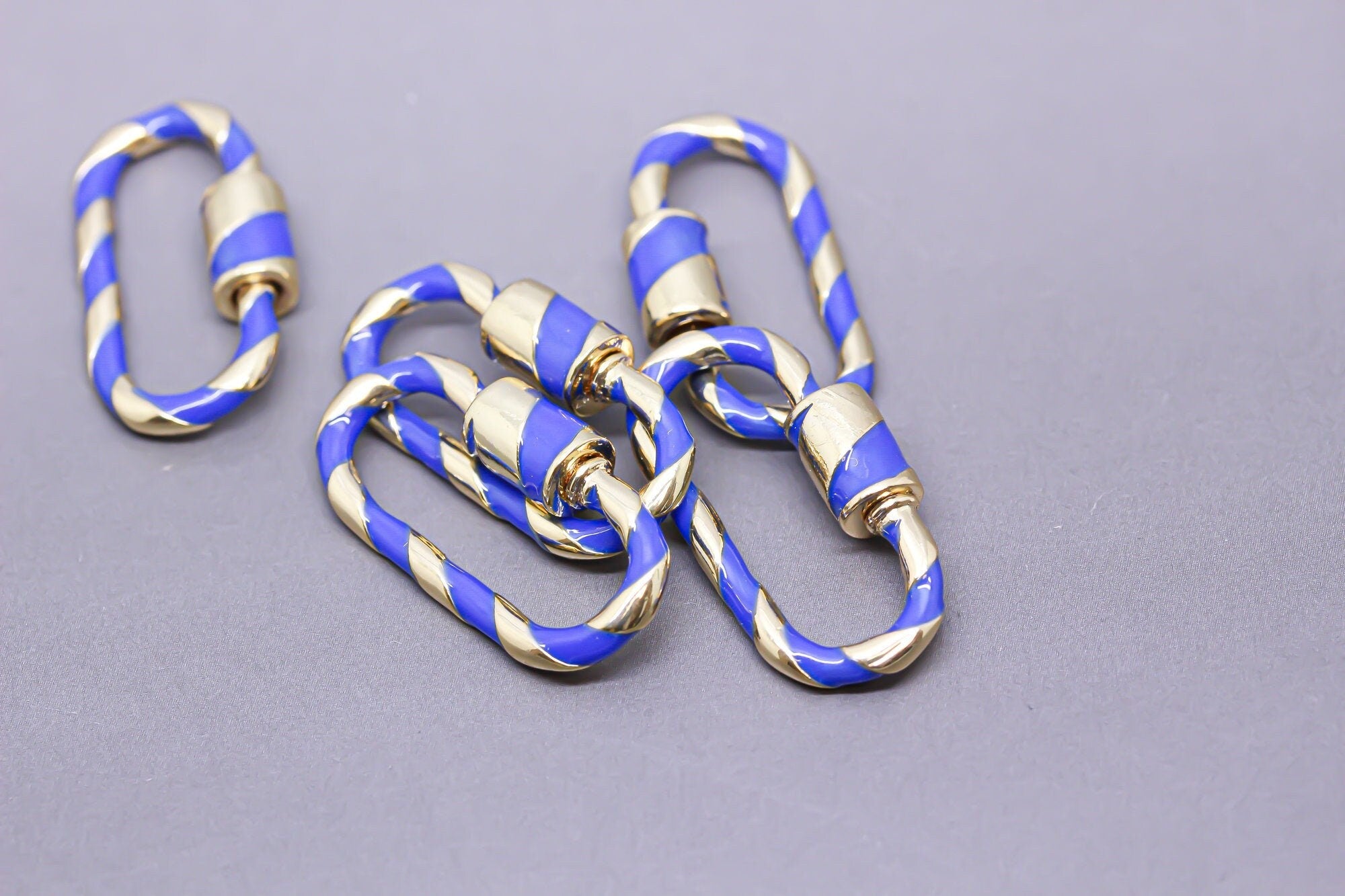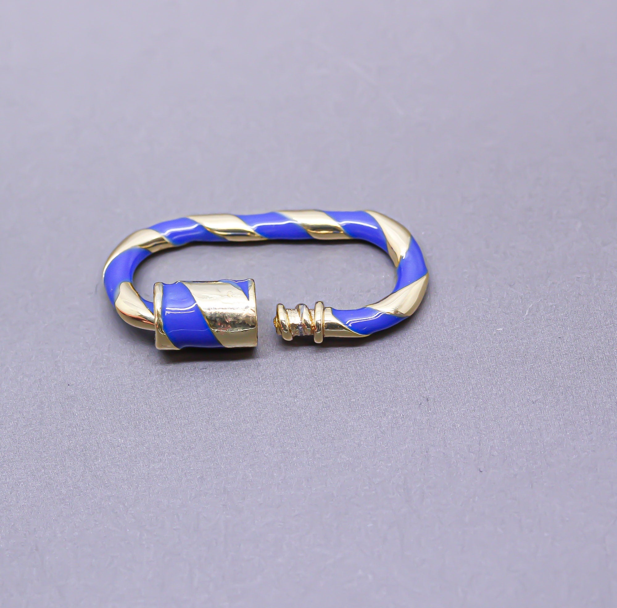 Navy/Gold Enamel 11x25mm Large Candy Cane Carabiner lock, Screw Clasp, Screw on Clasp, CLG082