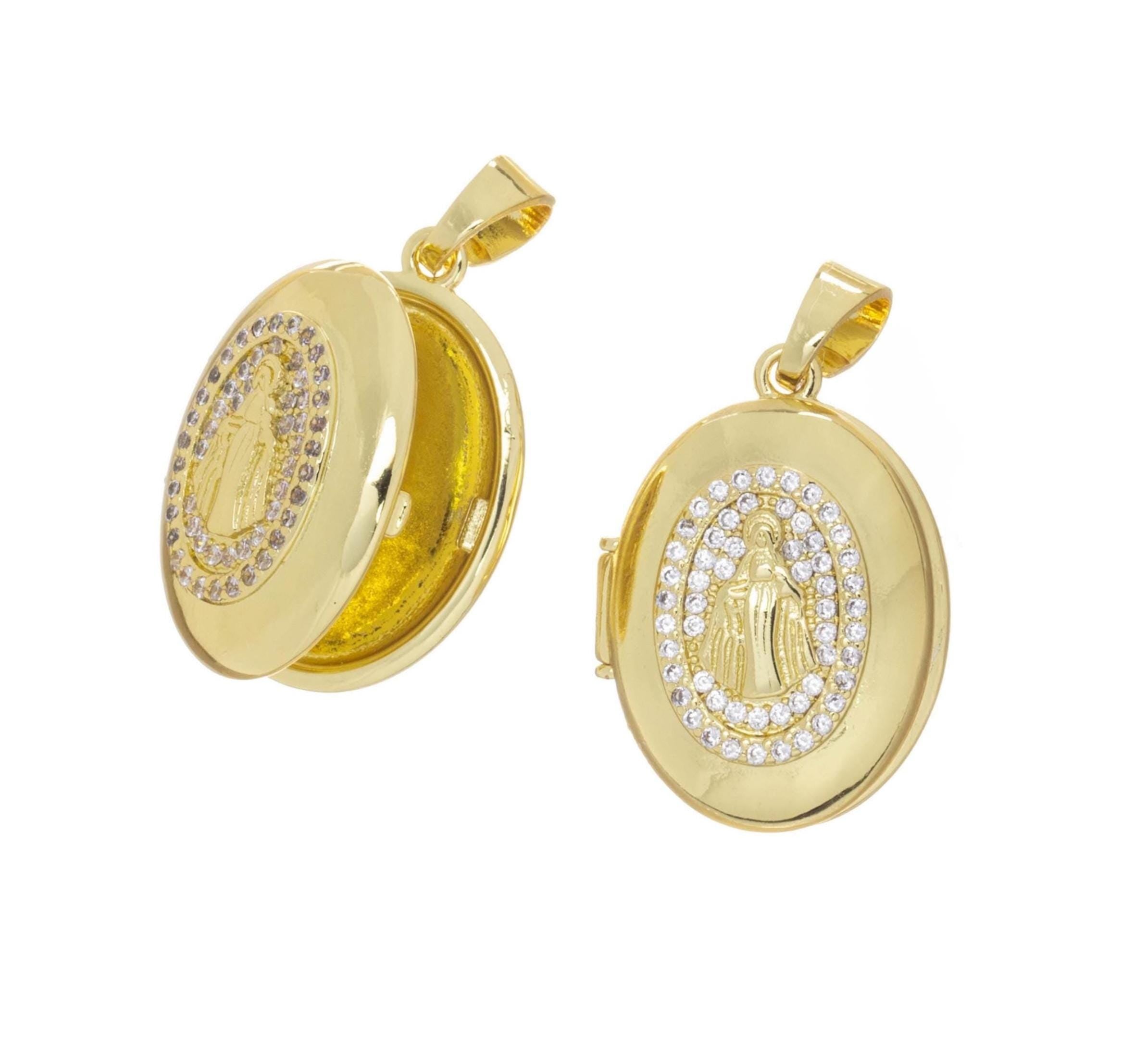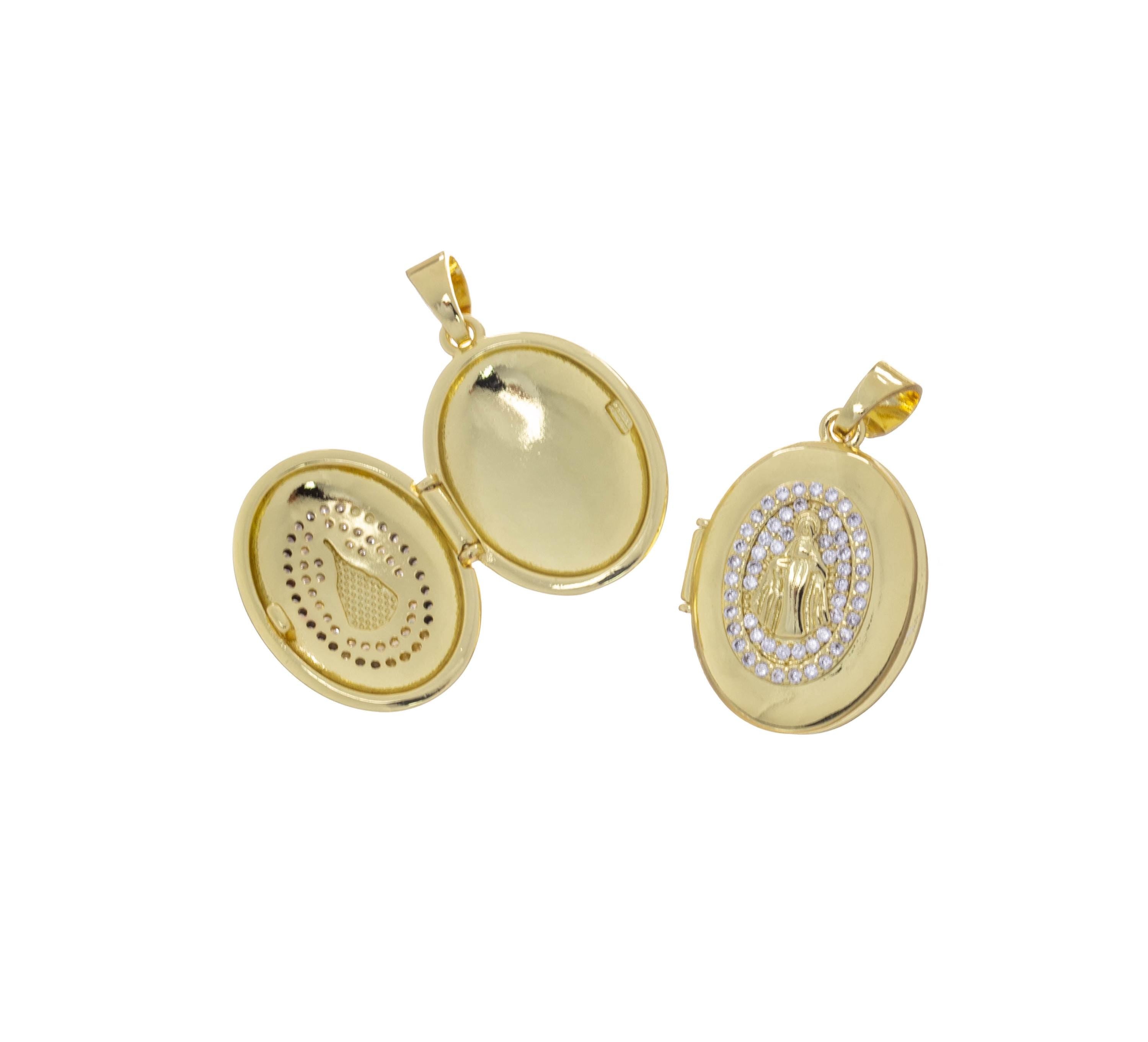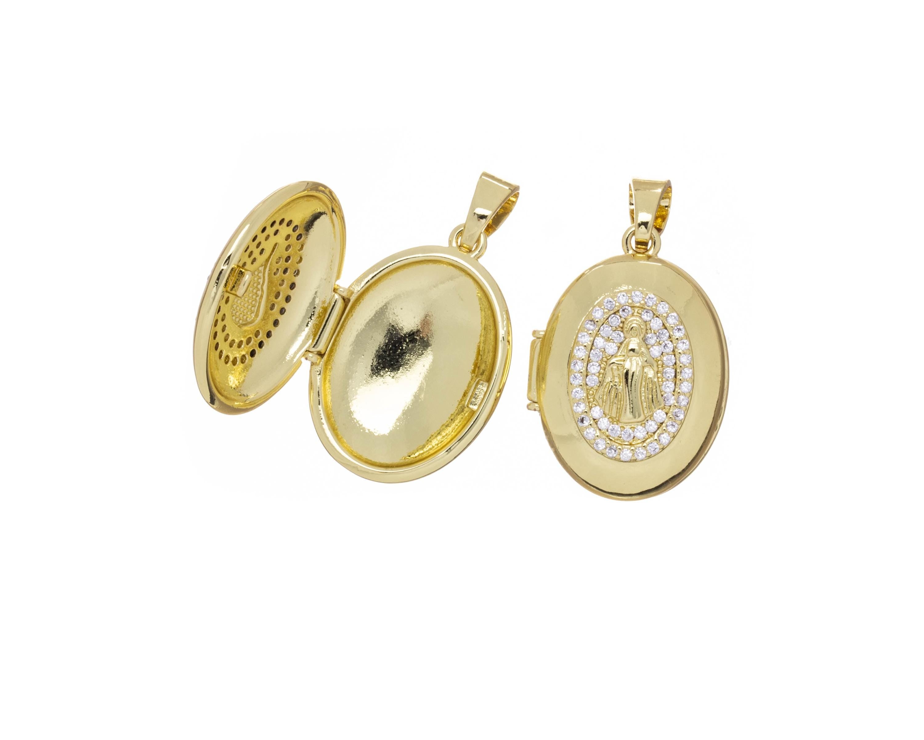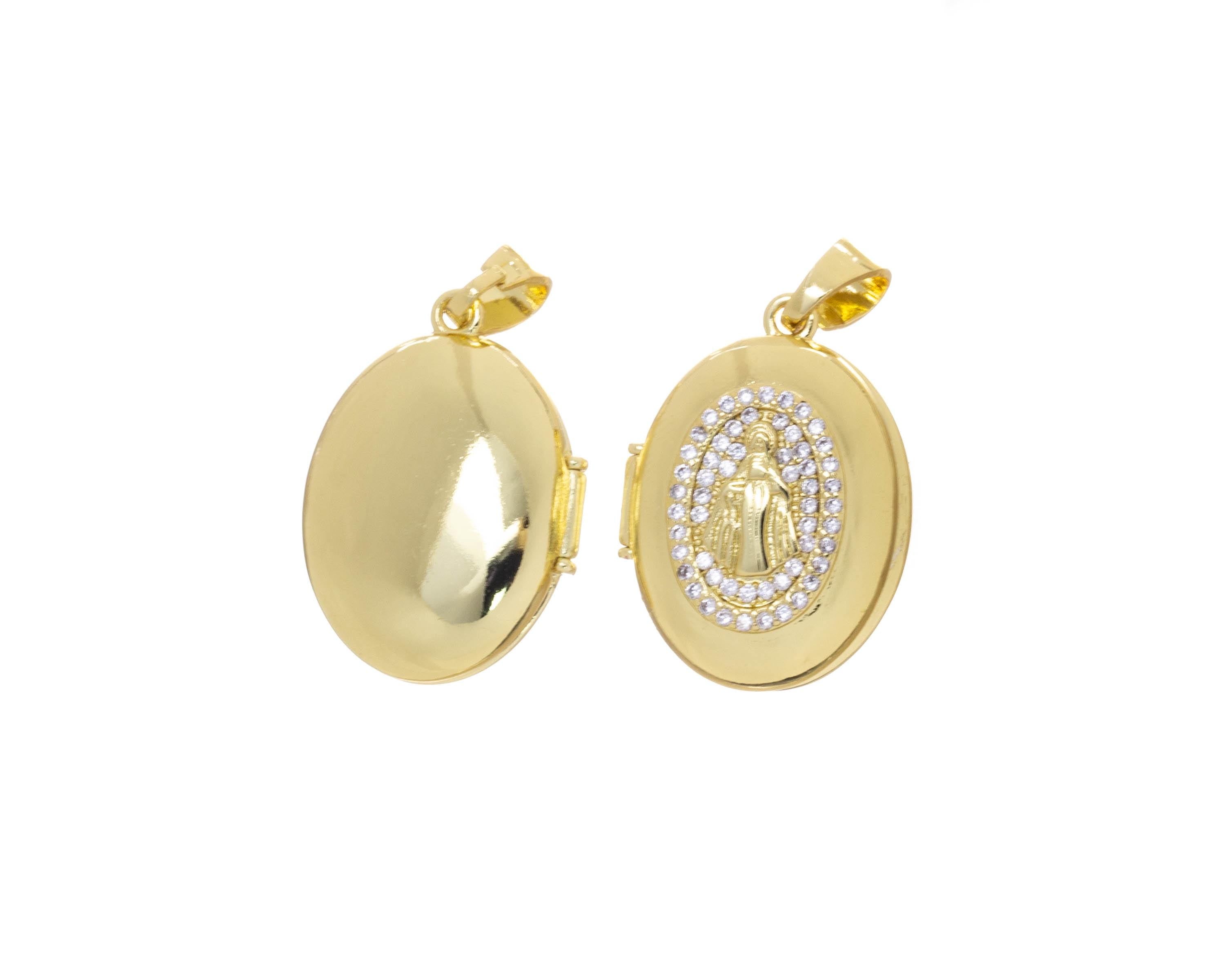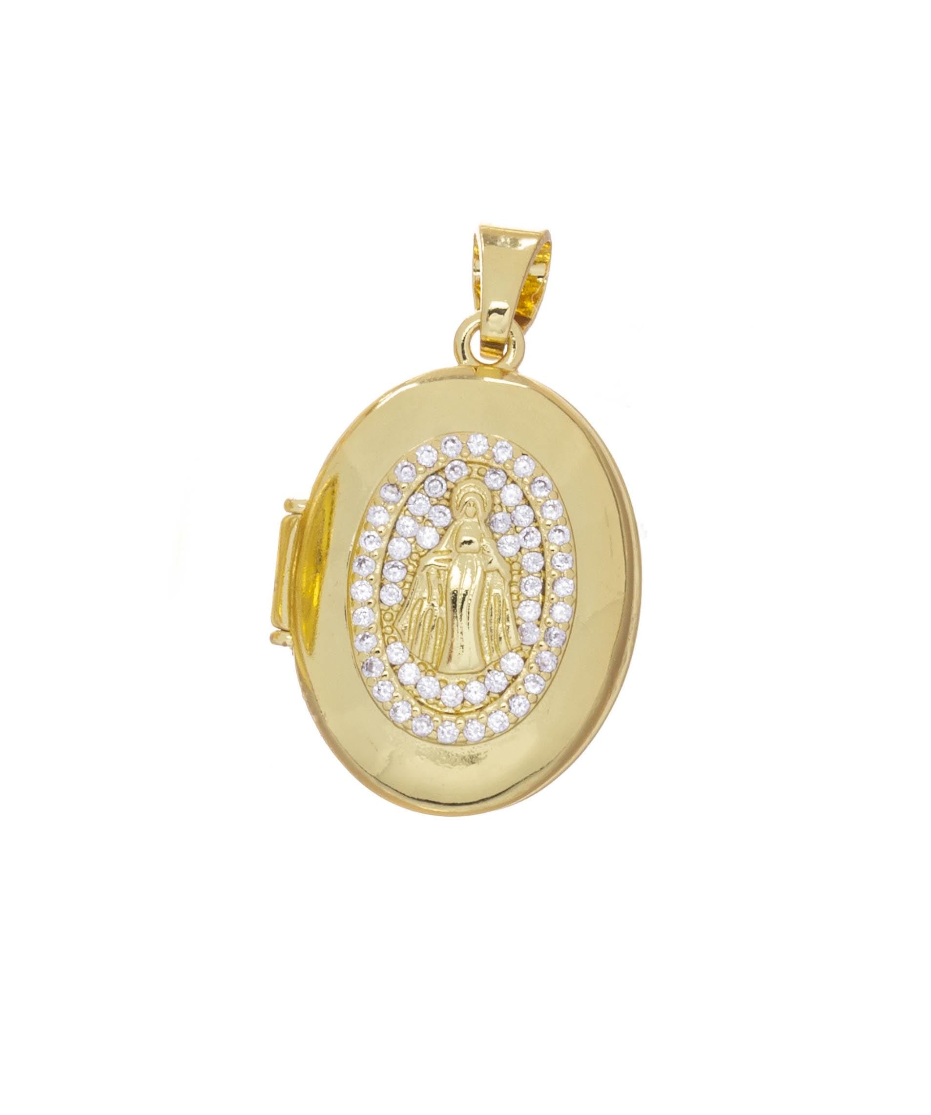 Open Hand Virgin Mary Locket Charm,Gold Religious Locket Charm For Necklace,Photo Locket Charm,Pave CZ Gold Locket Charm,CPG2532