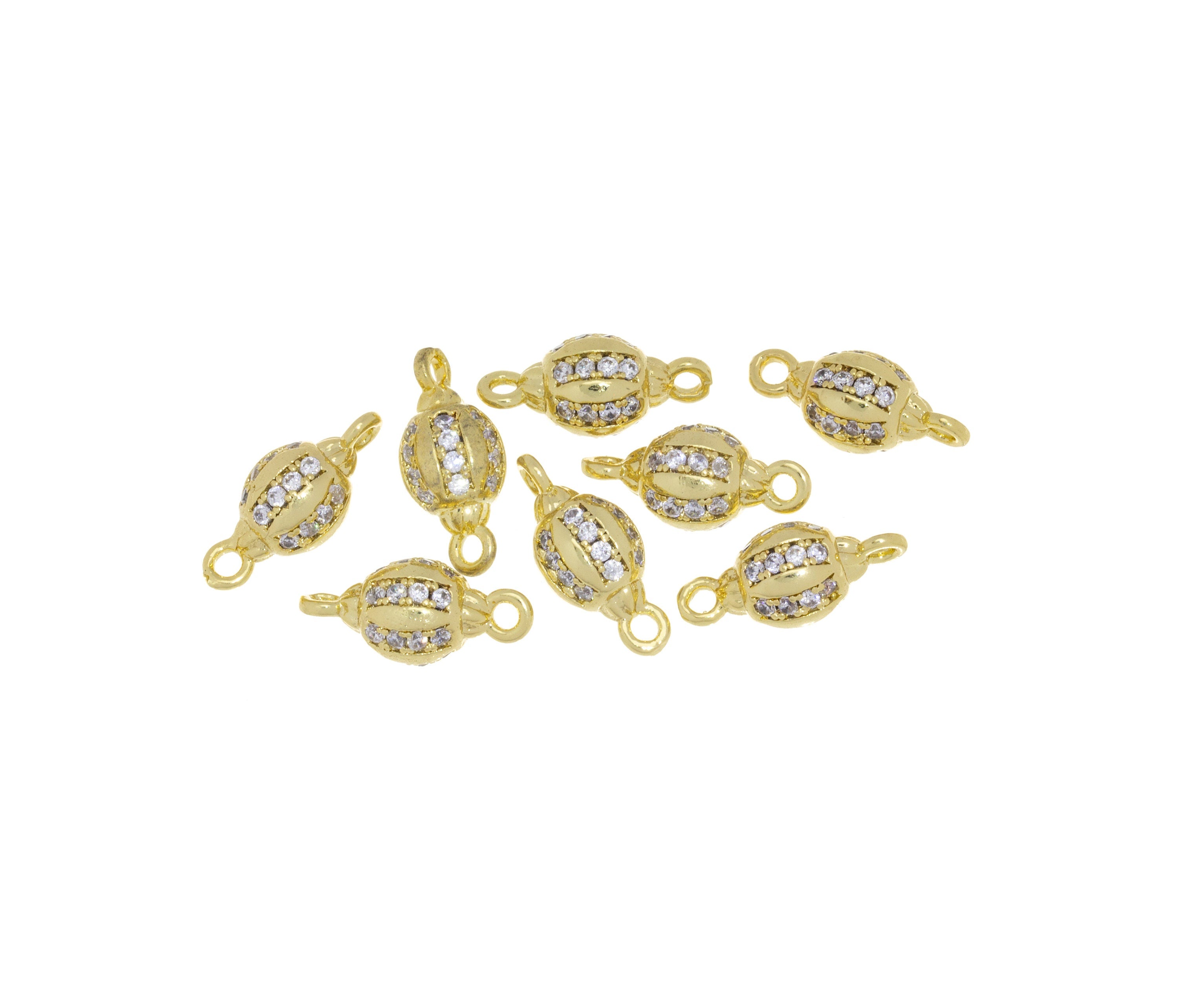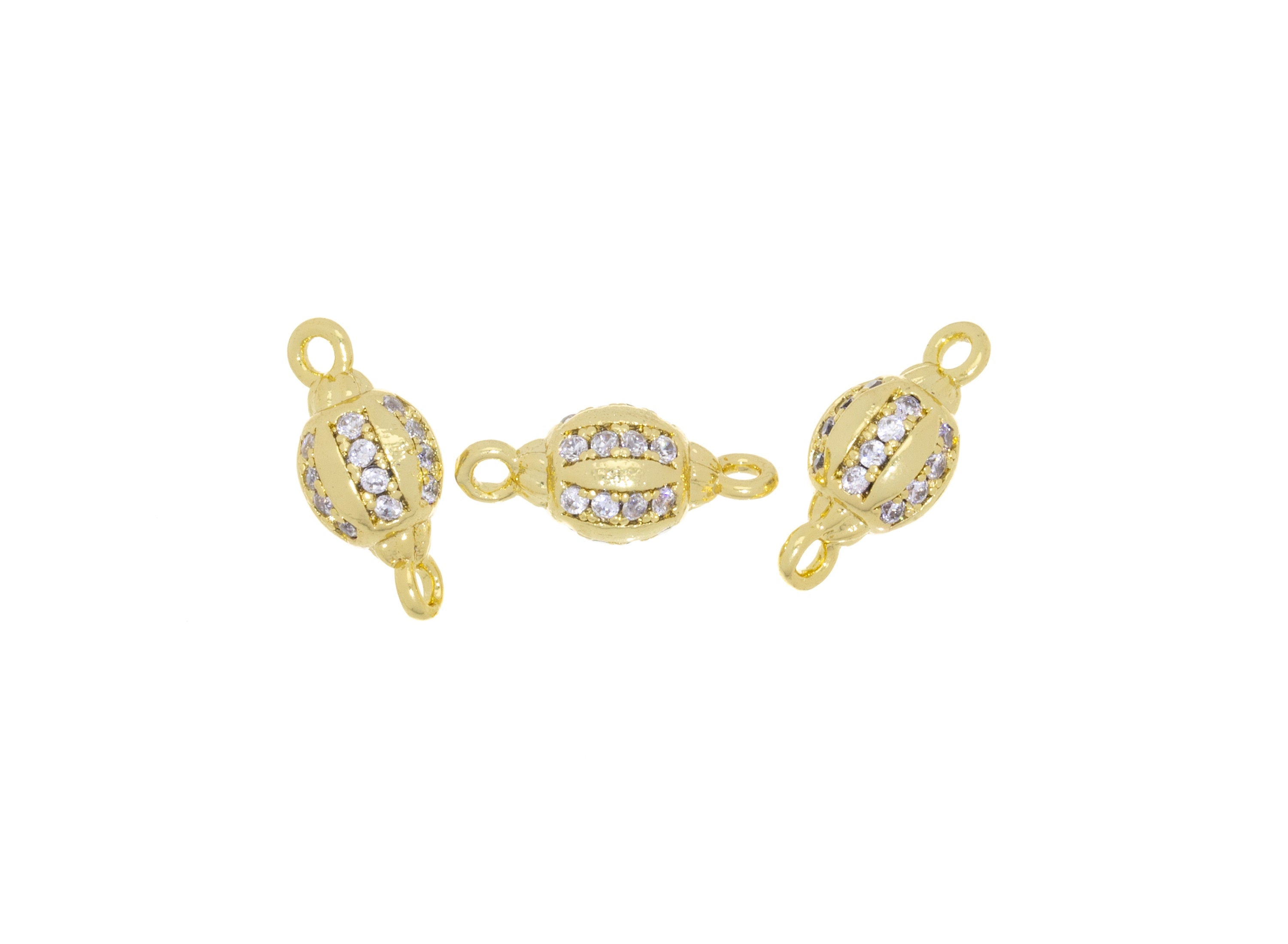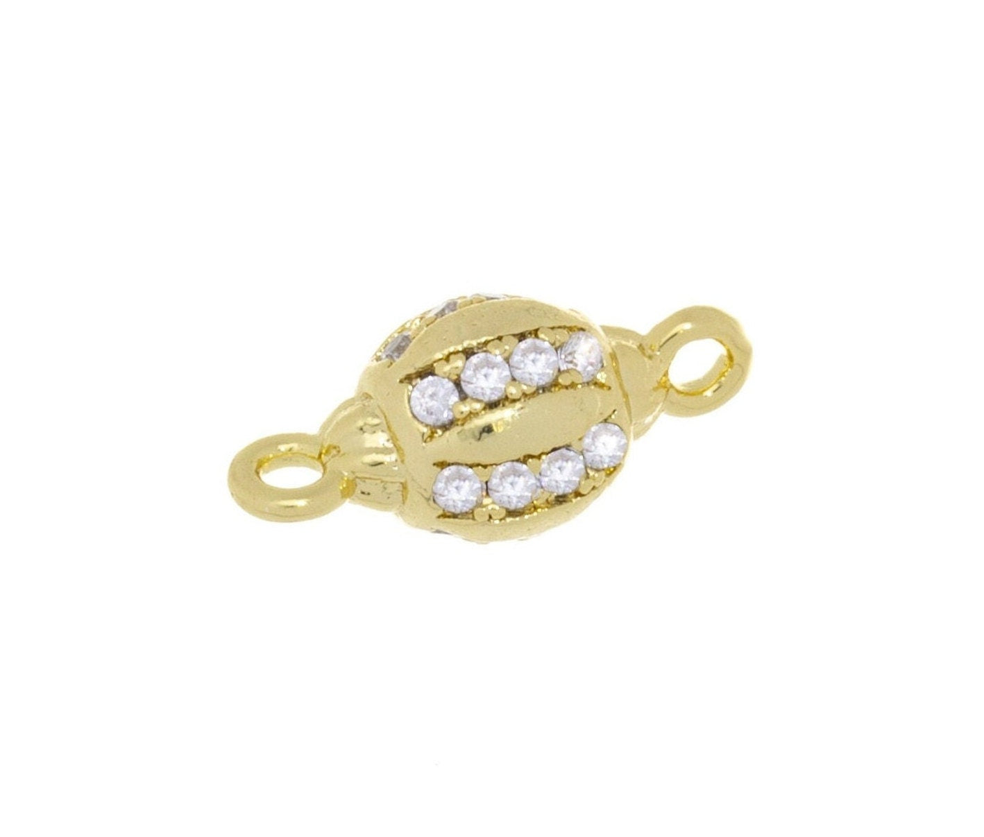 Oval Gold Ball CZ Spacer Connector,Dainty Pave Oval Connector Charm,Oval CZ Elongated Connector Spacer,CNG103