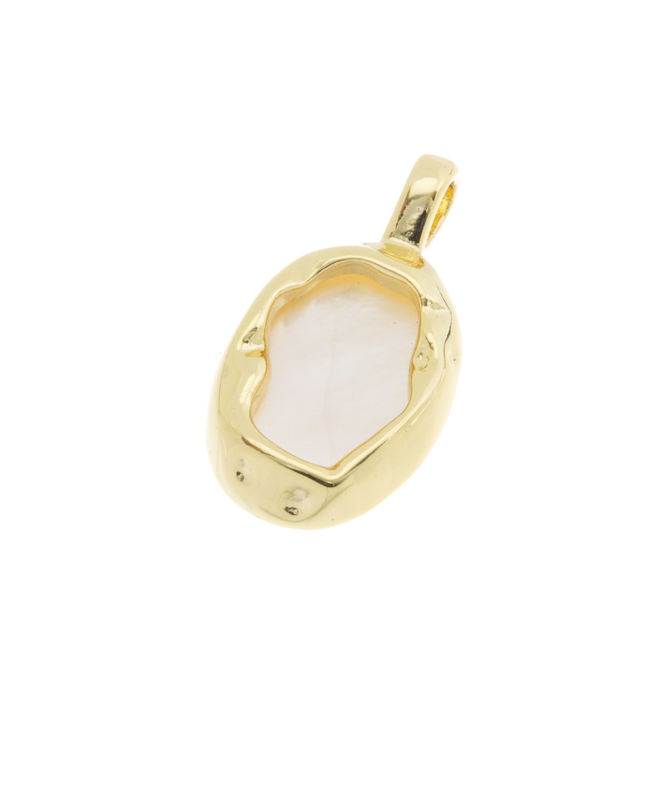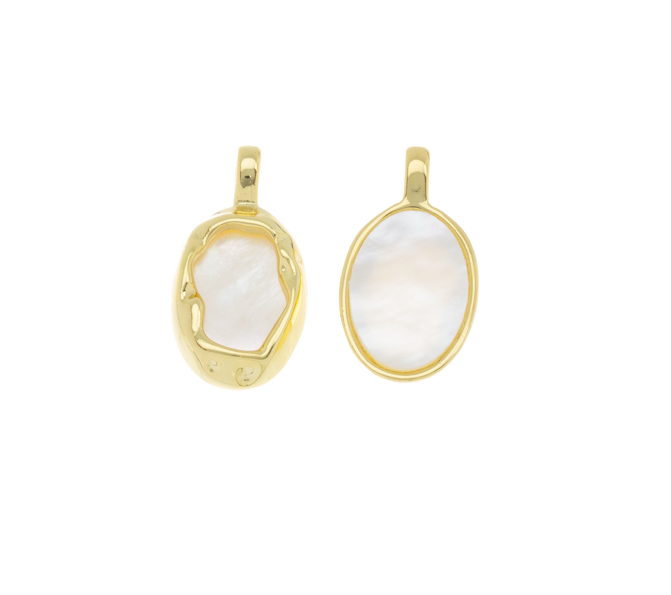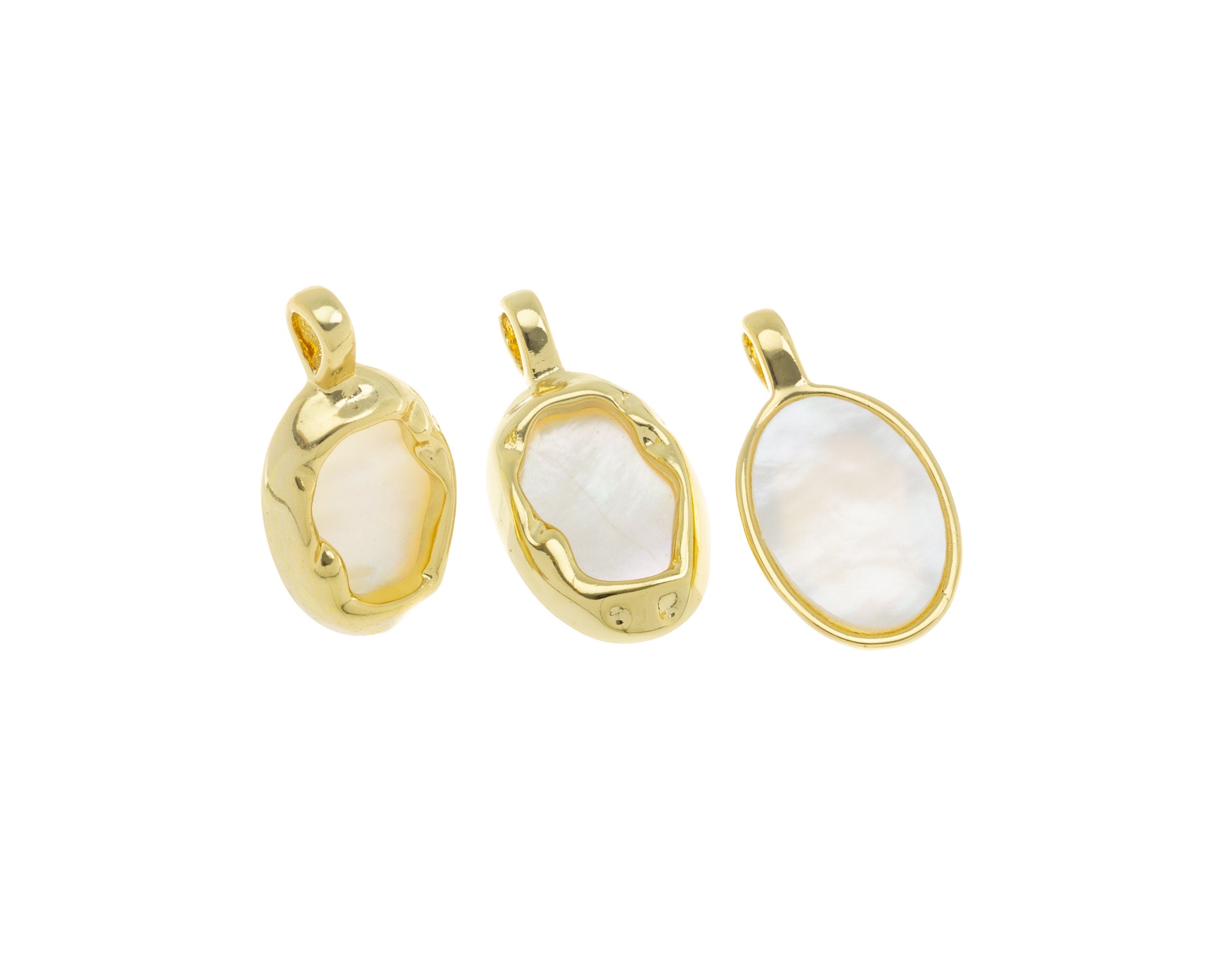 Oval Shape Gold Mounting With White Mother Of Pearl,Oval Gold MOP Charm ,Dainty Oval Mother Of Pearl charm,CPG714