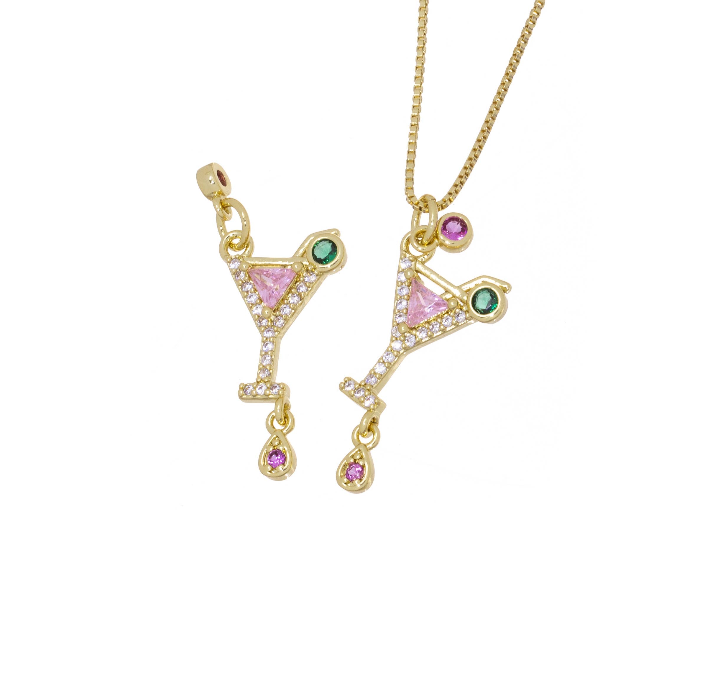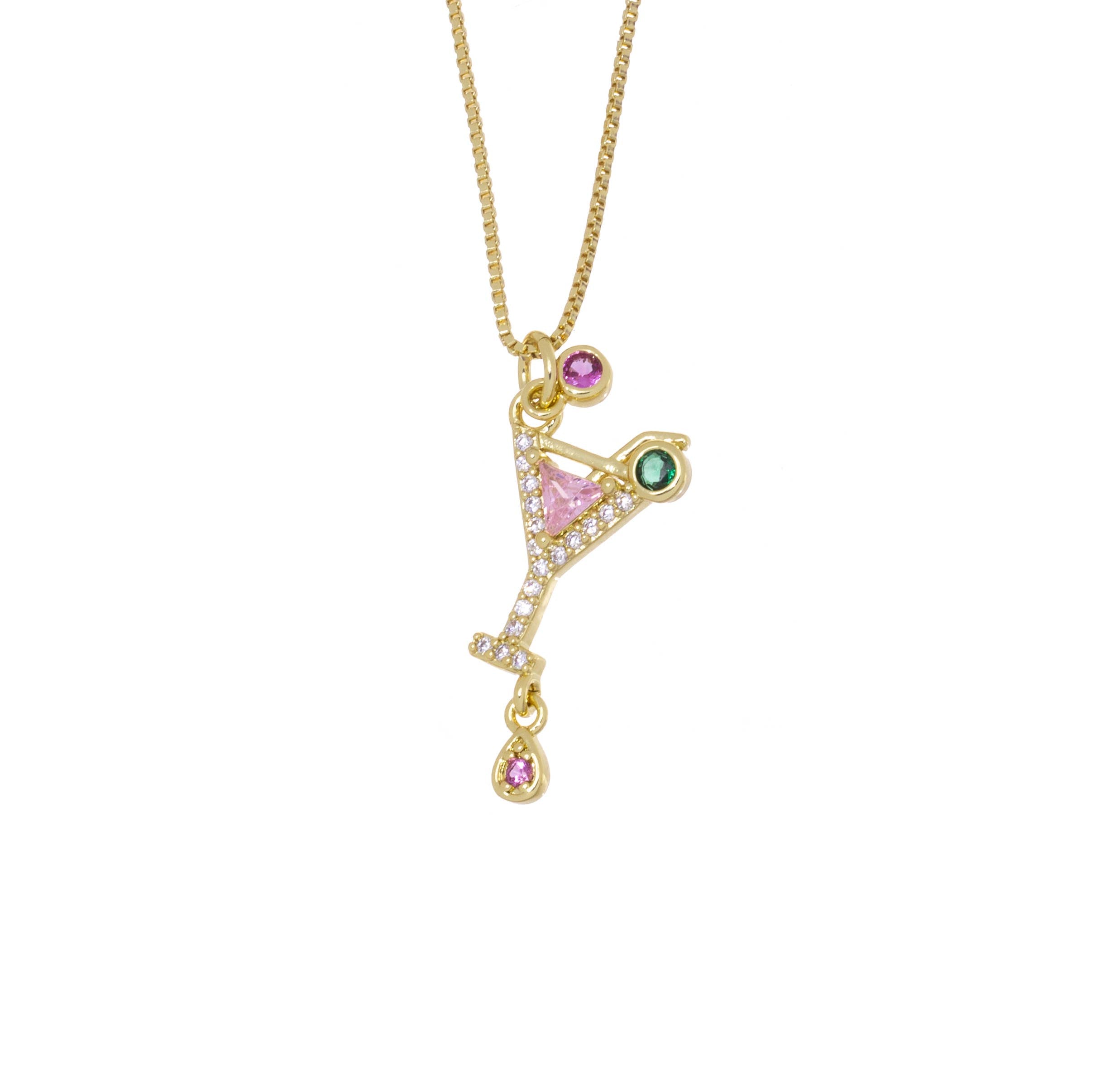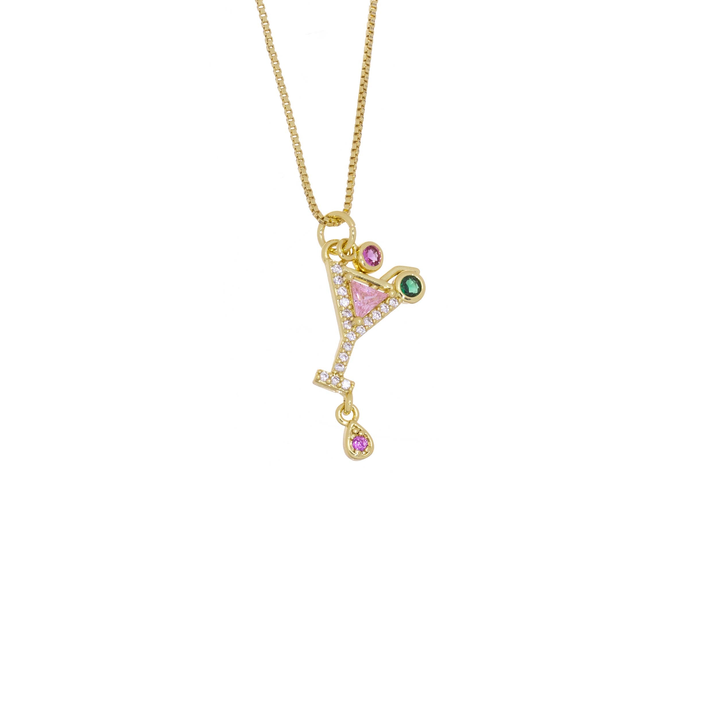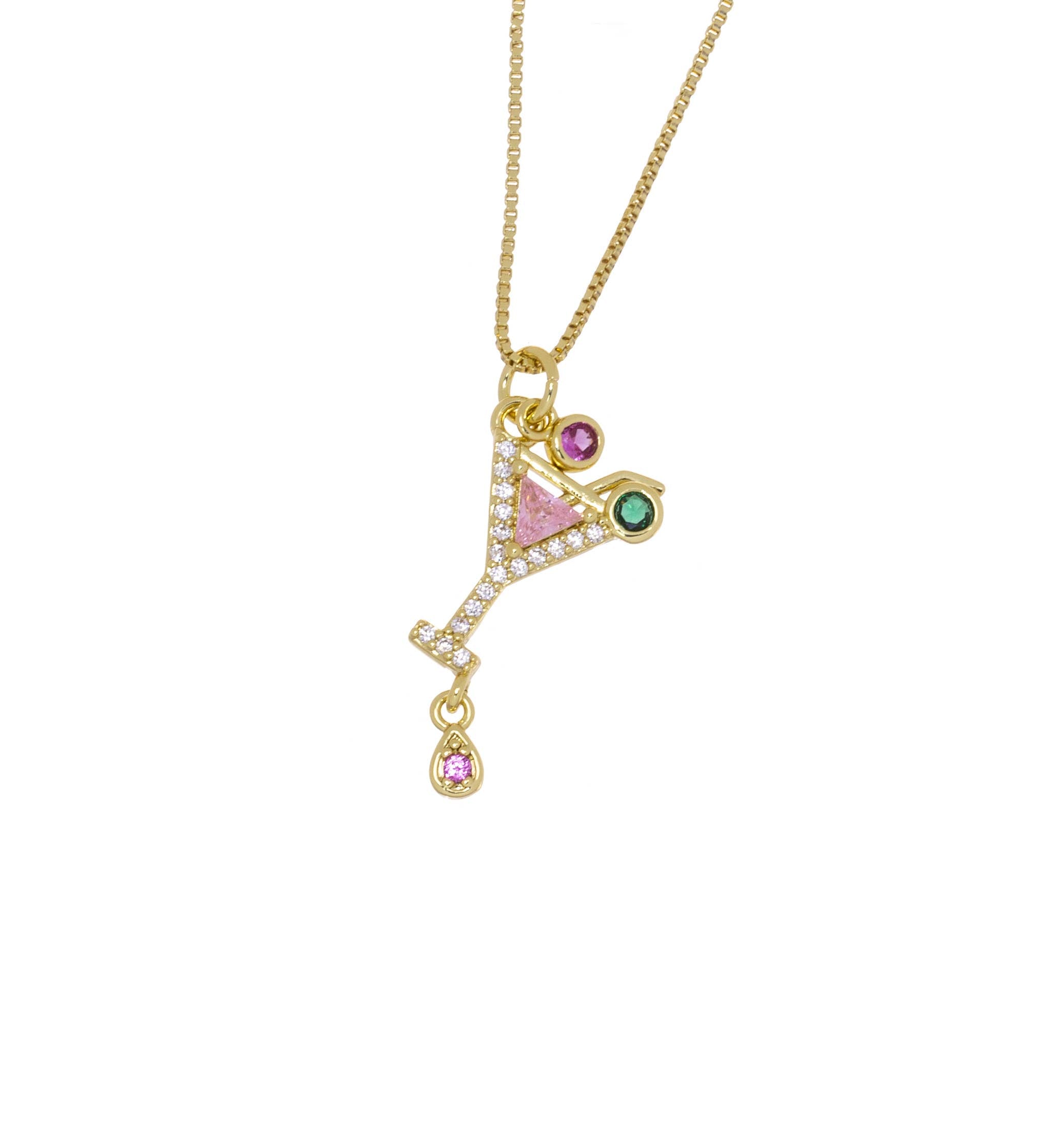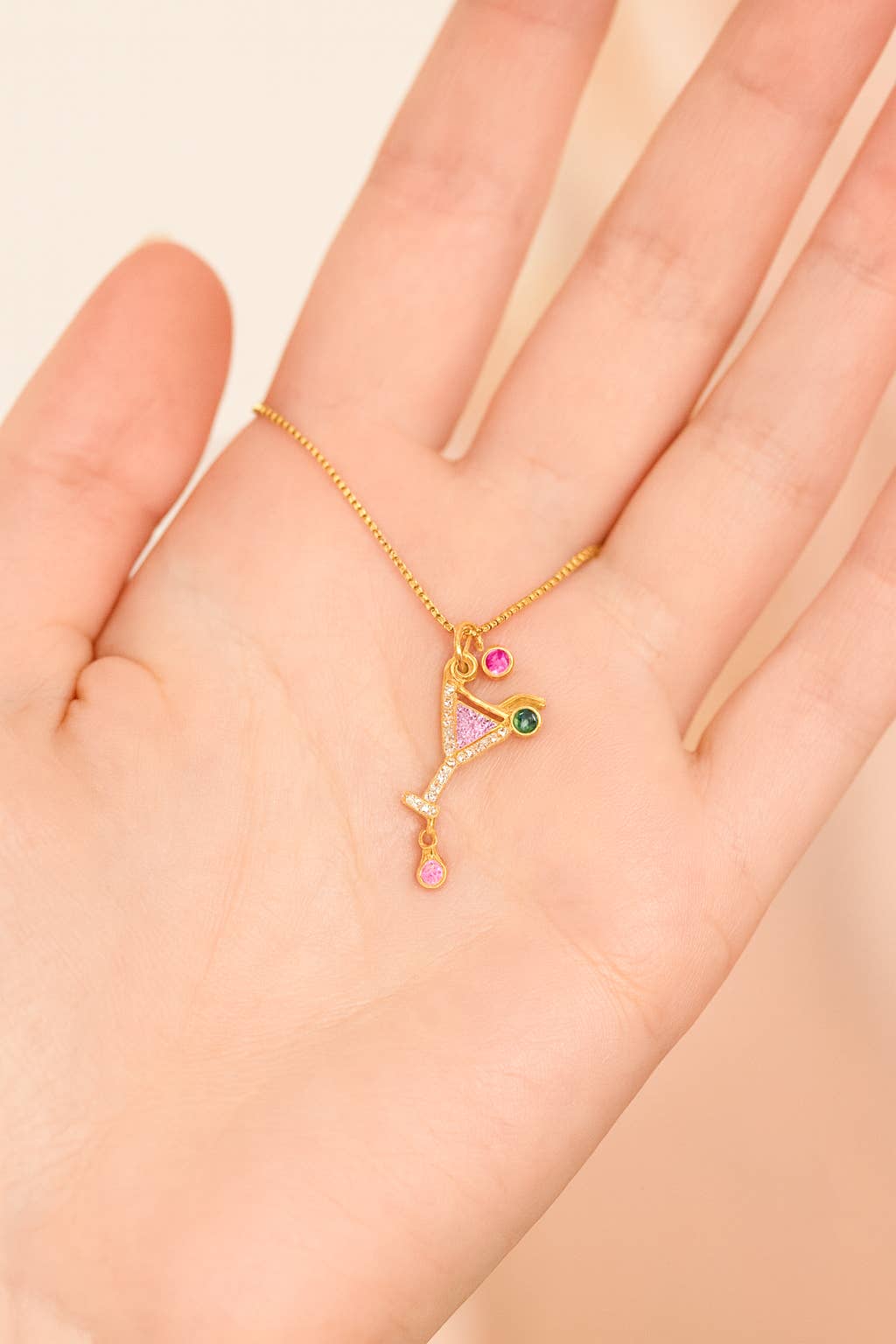 Pink Martini Drink Charm with Straw And Olive, CPG2912