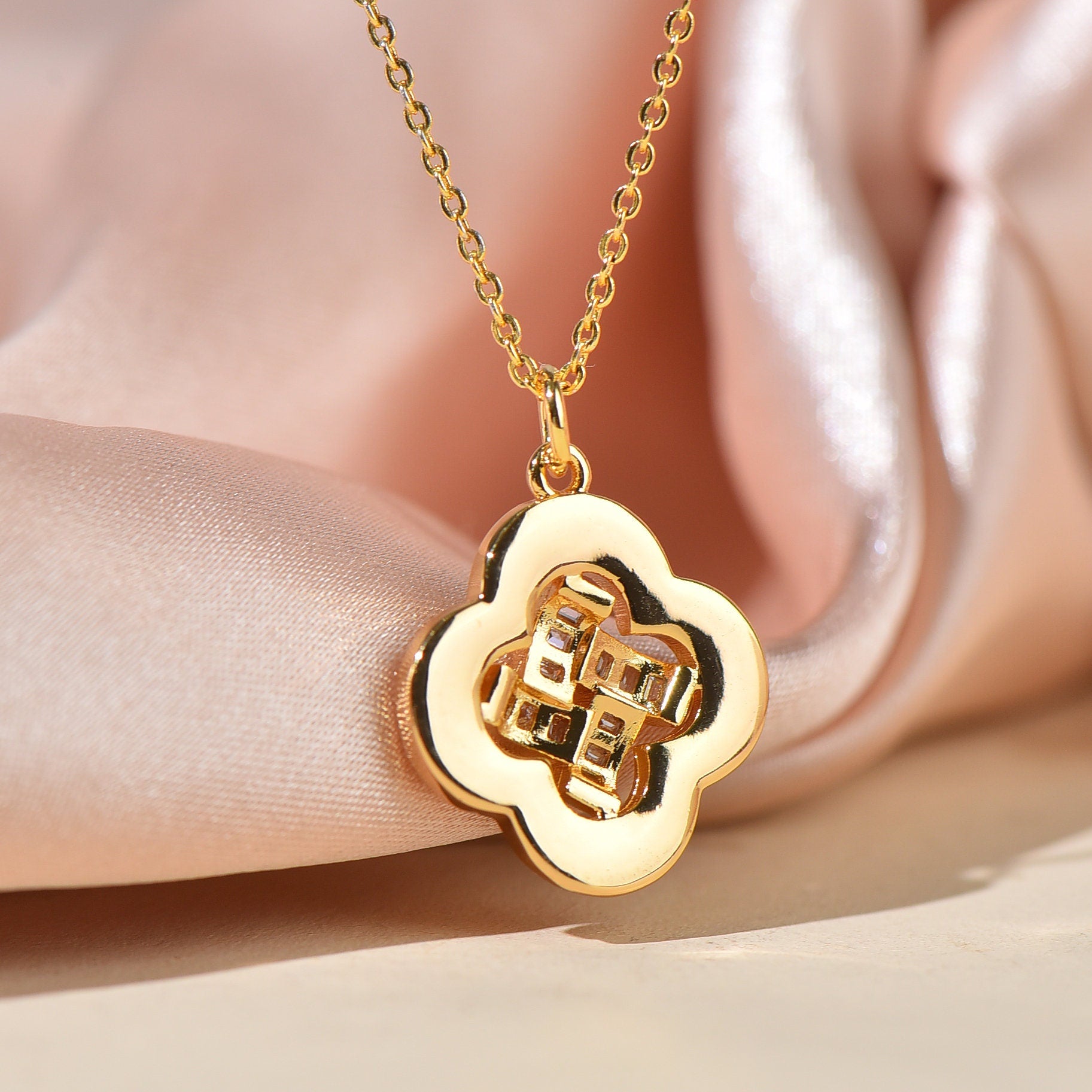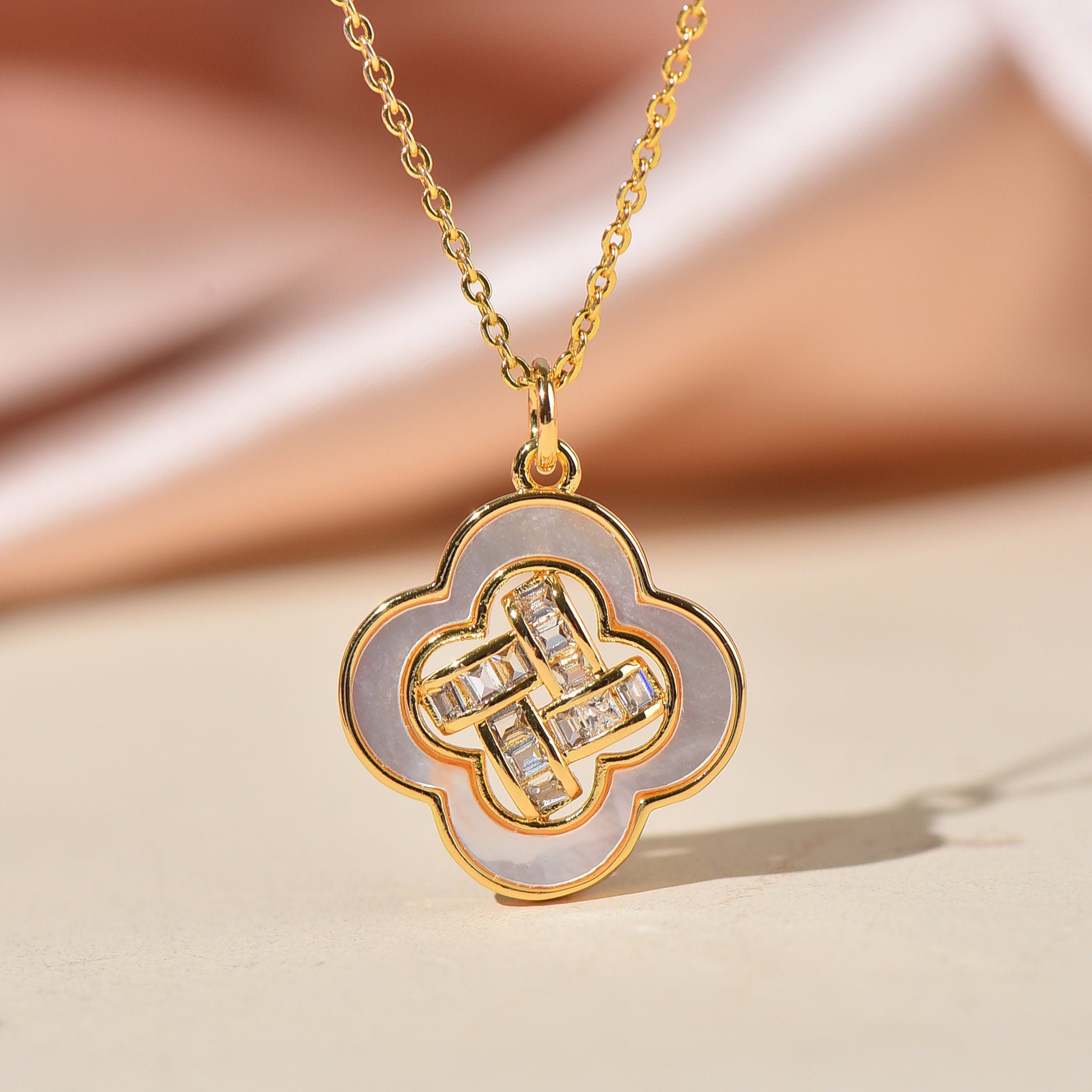 Pink Mother Of Pearl Clover Charm, Gold Four Leaf Charm With Baguette, CPG314