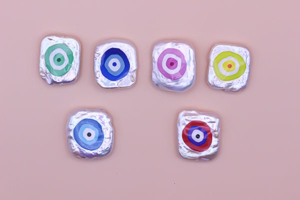 Playful Freshwater Pearl with Evil Eye Beads, around 15x20mm, High Quality Pearls, 6 options, FW-10-15