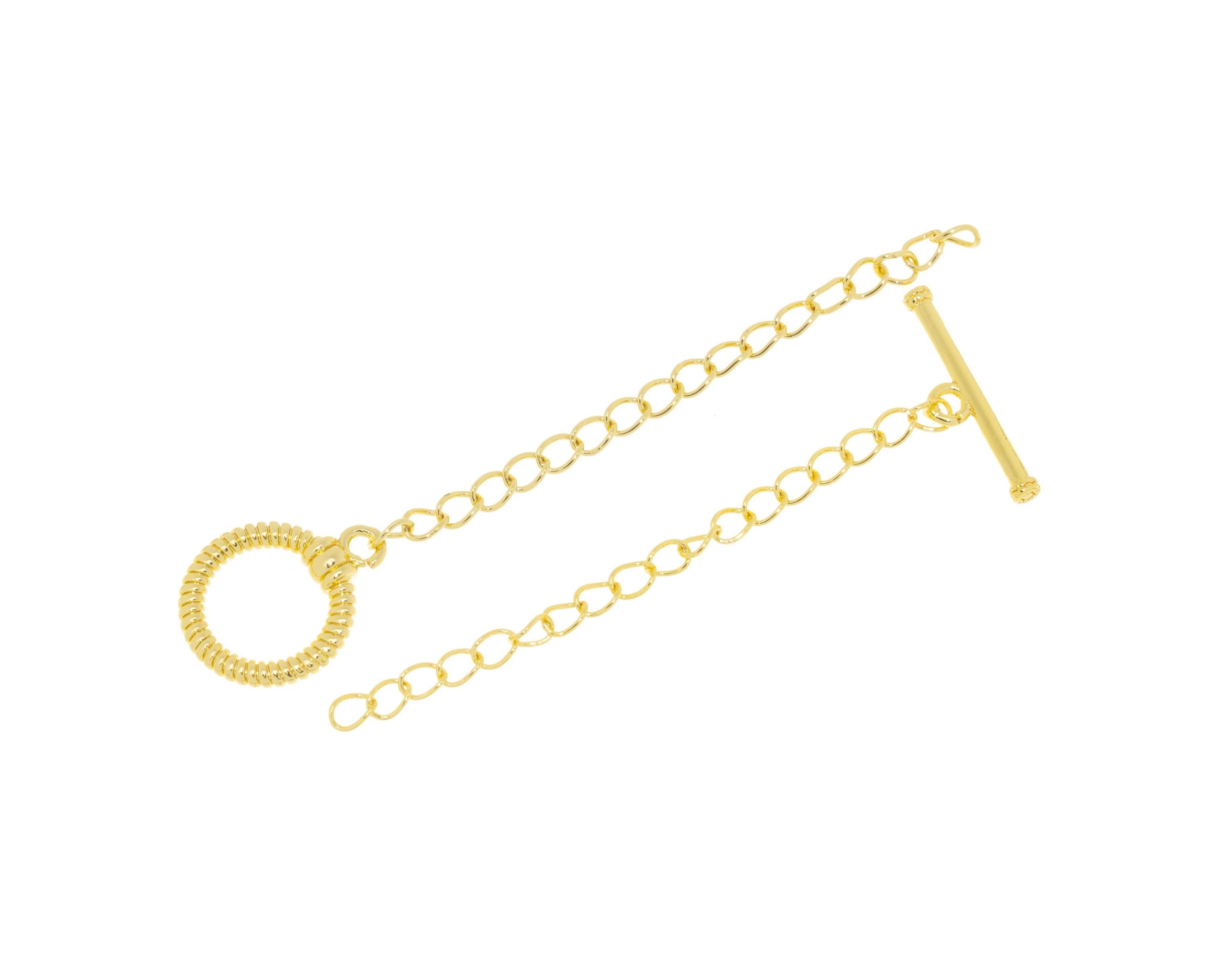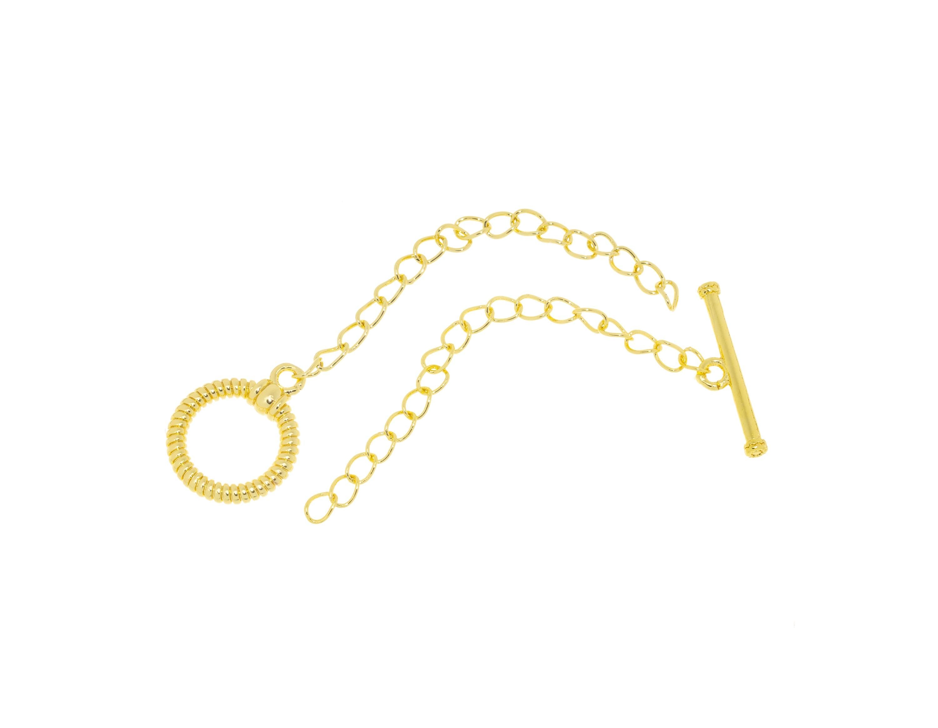Ribbed Circle Toggle Gold Clasp With Extender Chain,Two Piece Gold Round Toggle Clasp,Toggle Clasp For Jewelry Making,CLG324