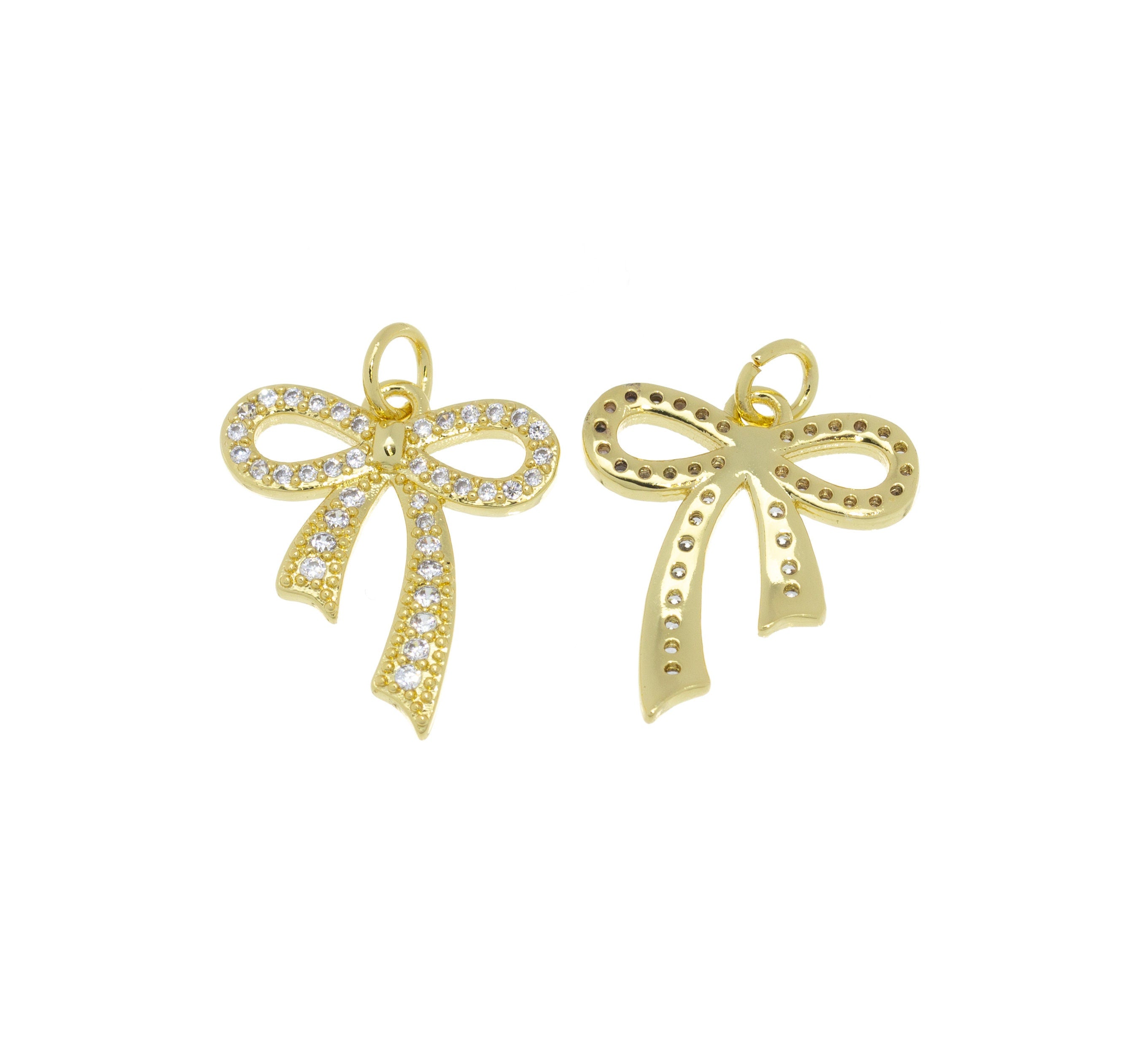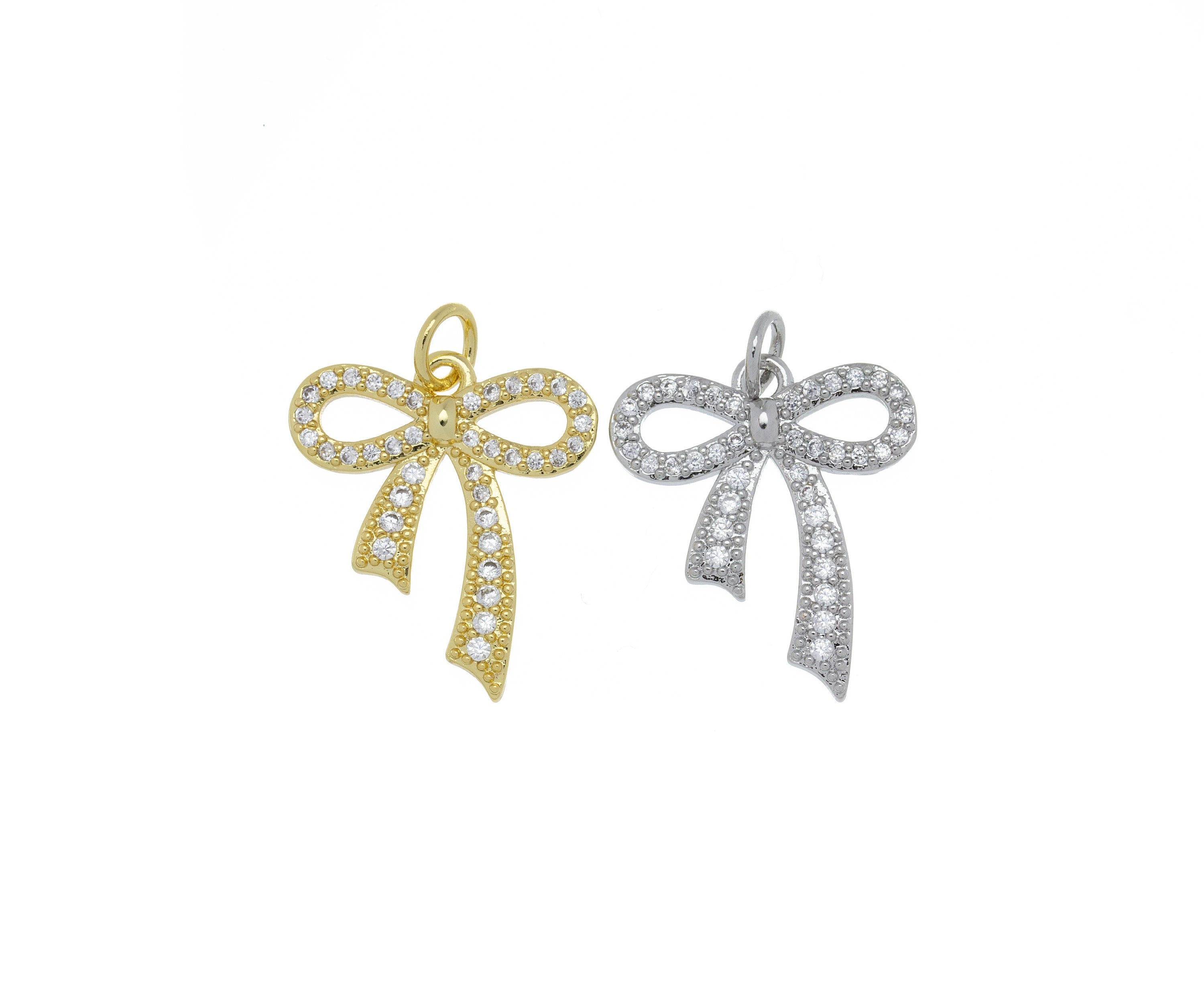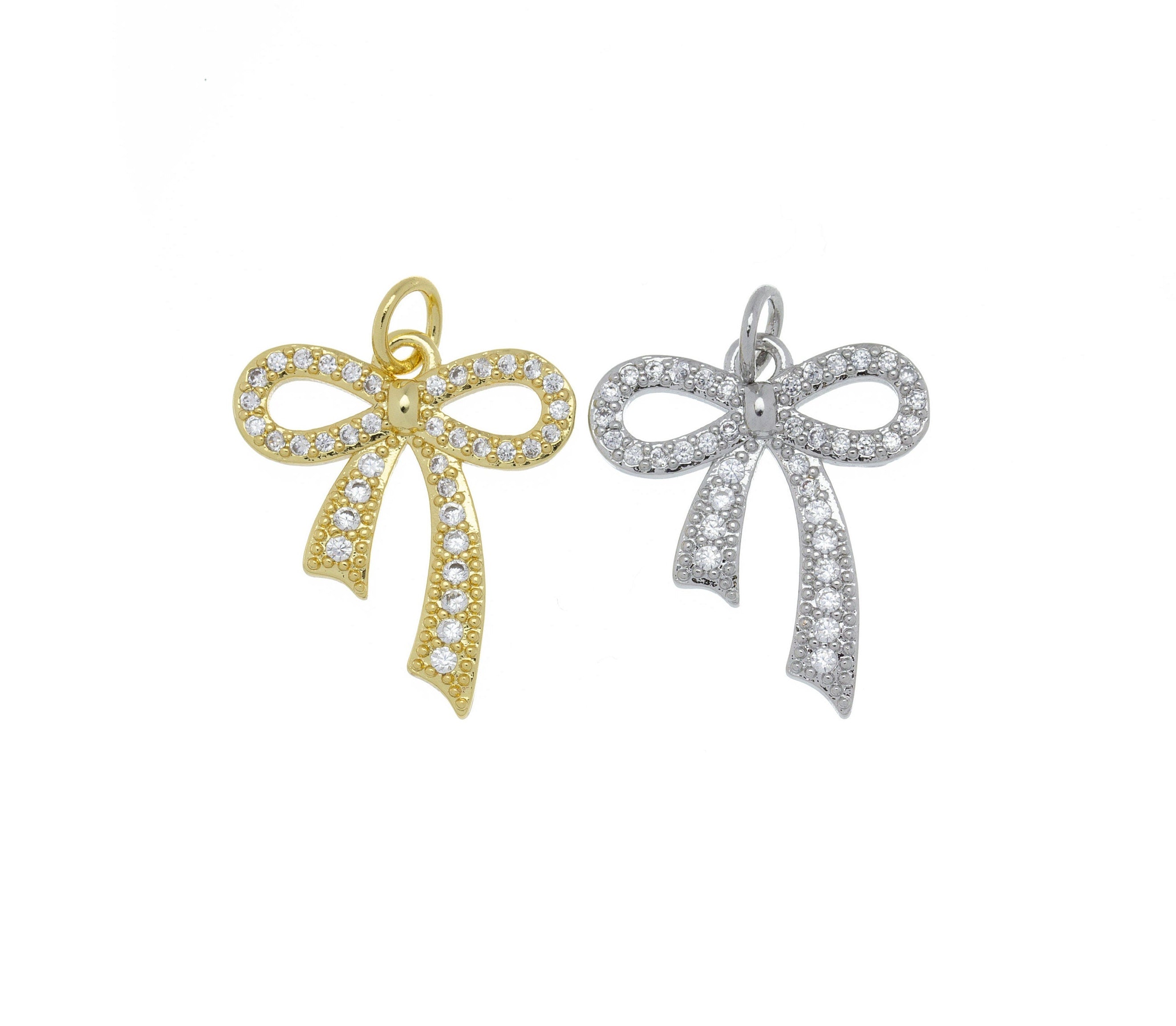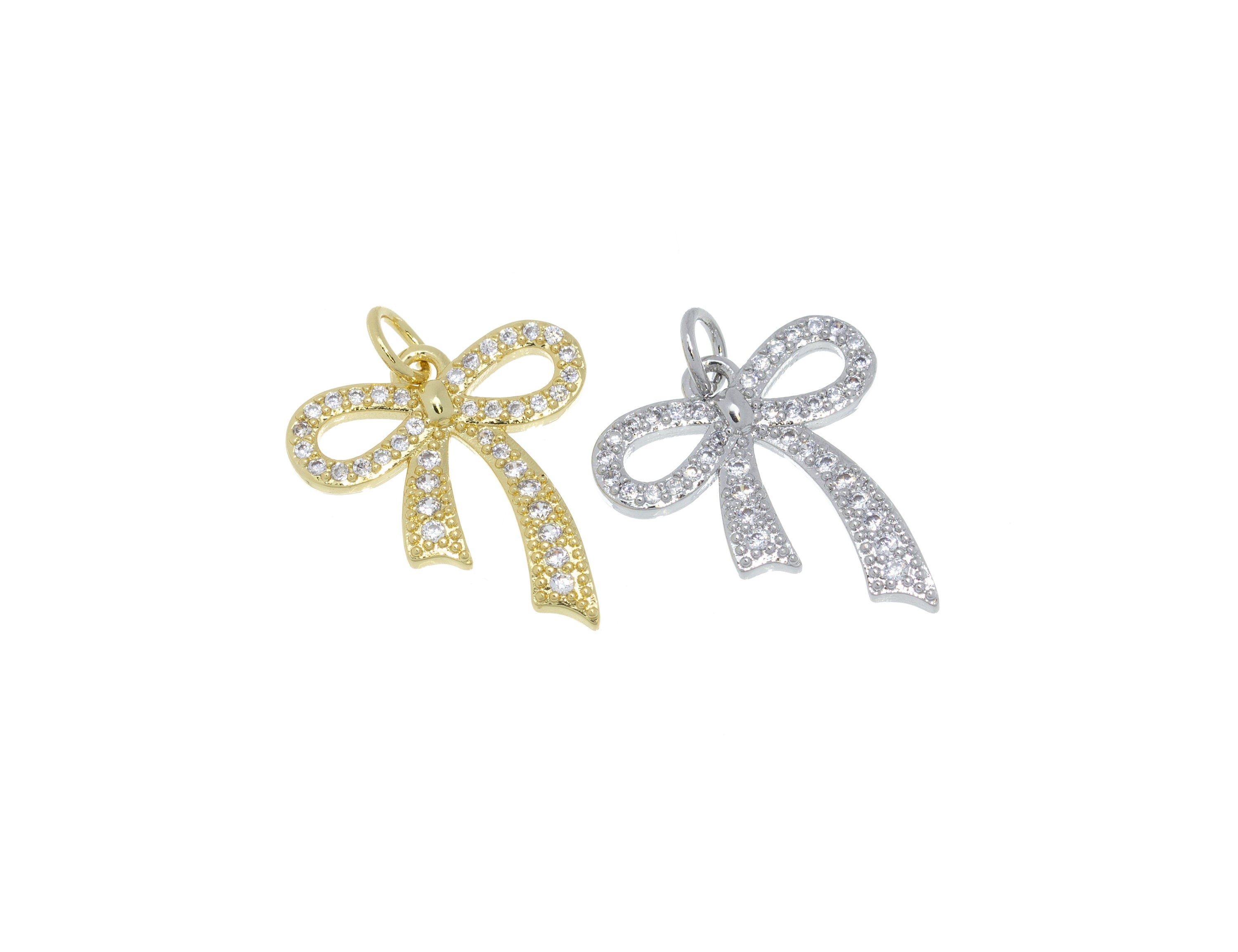 Ribbon Bow Tie Pave CZ Charm,Minimalist Ribbon Bow Tie Charm,Timeless Bow Tie Charm For Jewelry,CPG662,CPS662