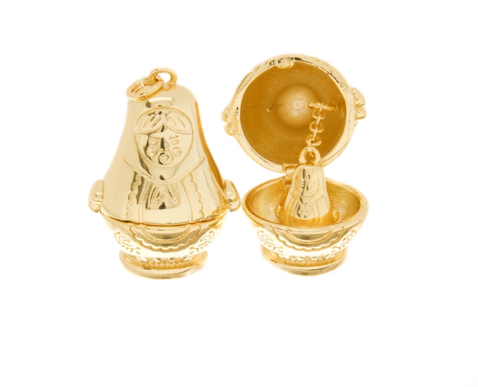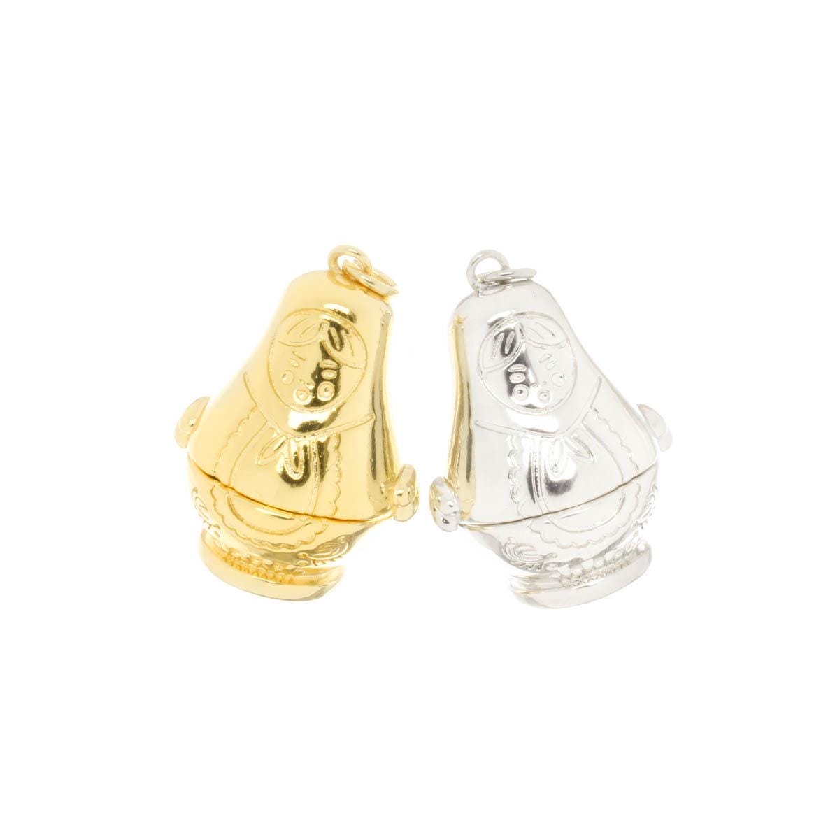 Russian Doll Charm, Babushka, Gold Russian Doll Pendant, Doll within a doll, Matryoshka, Nesting Doll, Russian Folk Art Charm, CPG2688