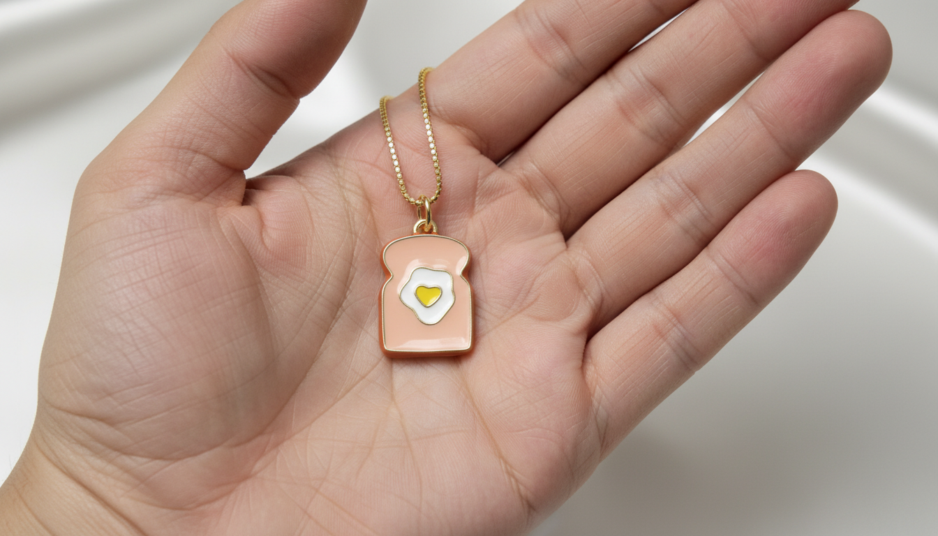 Shinny Egg Over Toast Charm for Jewelry Making CPG2892