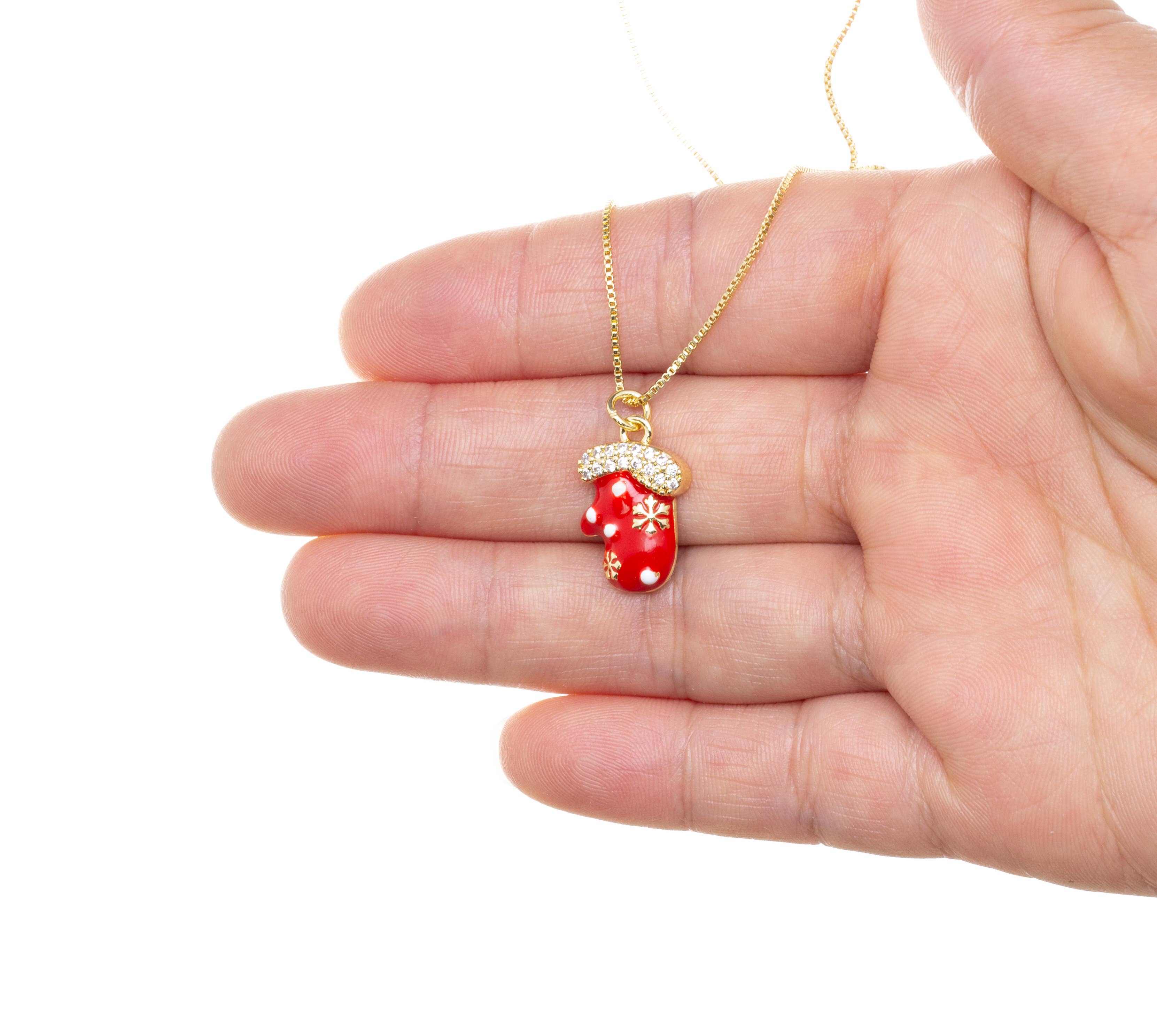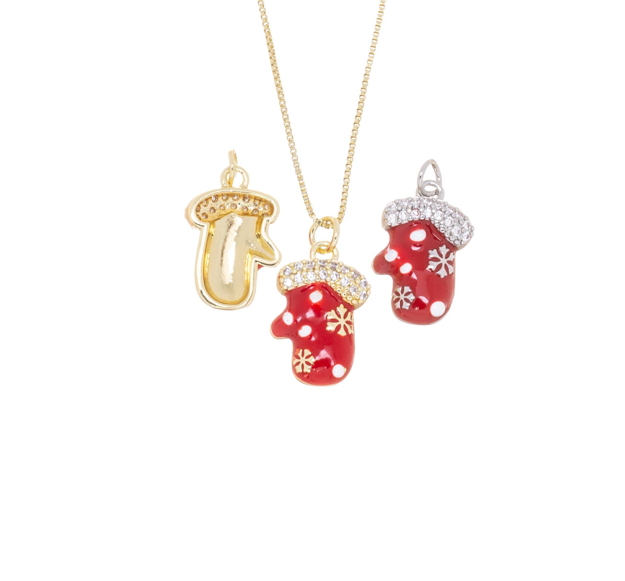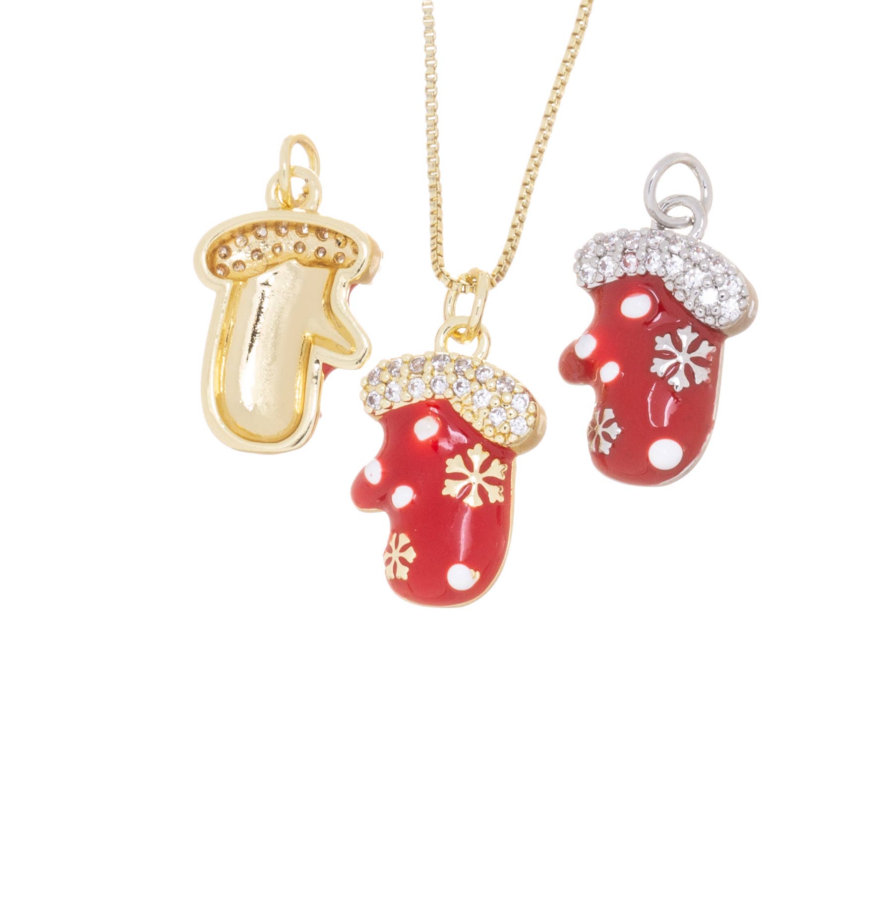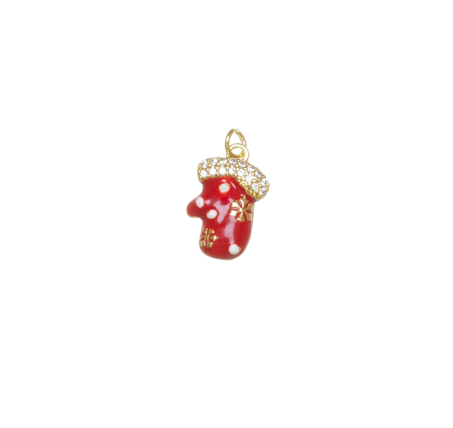 Snow Mittens Gold Charm With CZ, Snow Gloves Charm,CPG2848