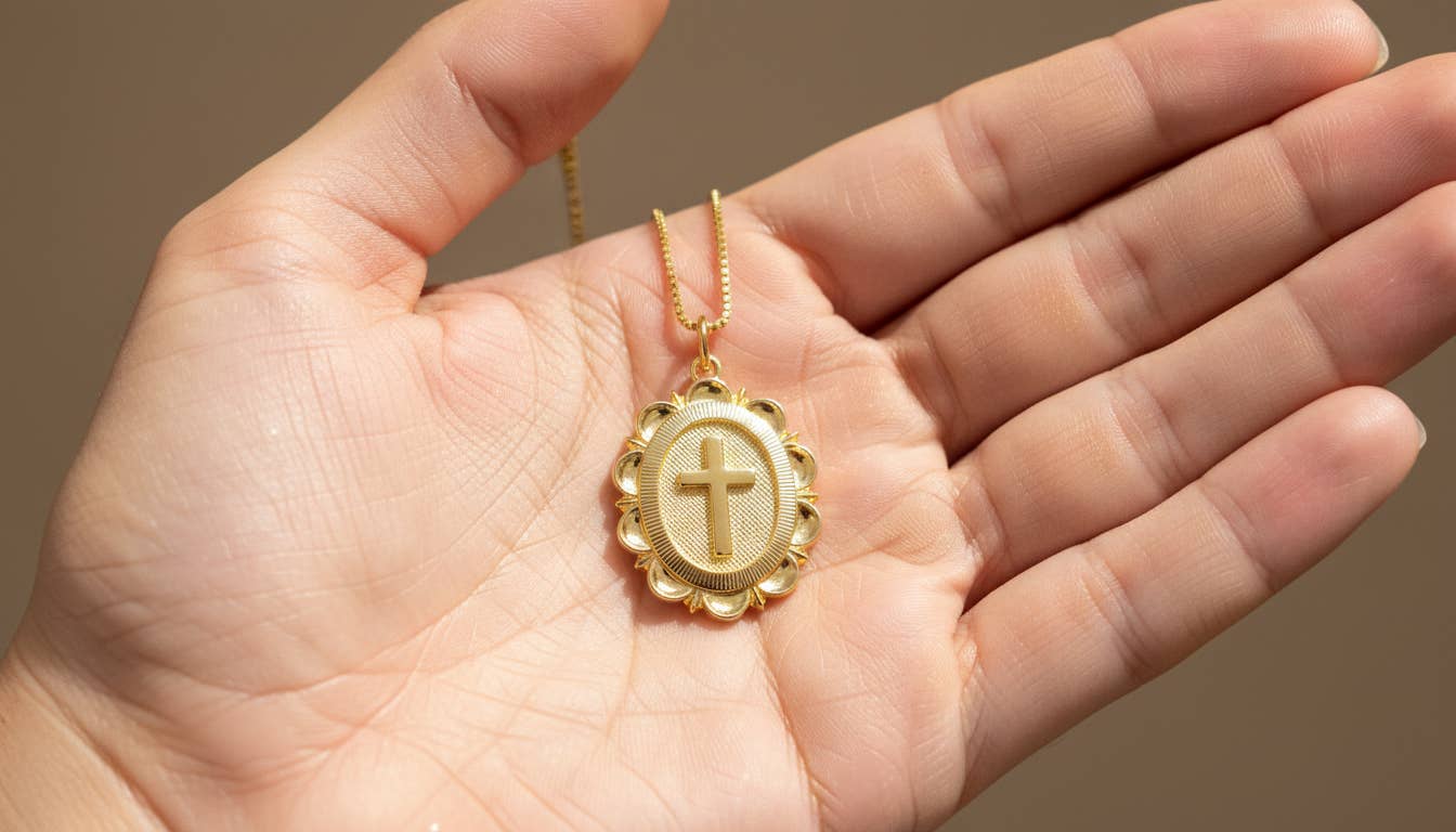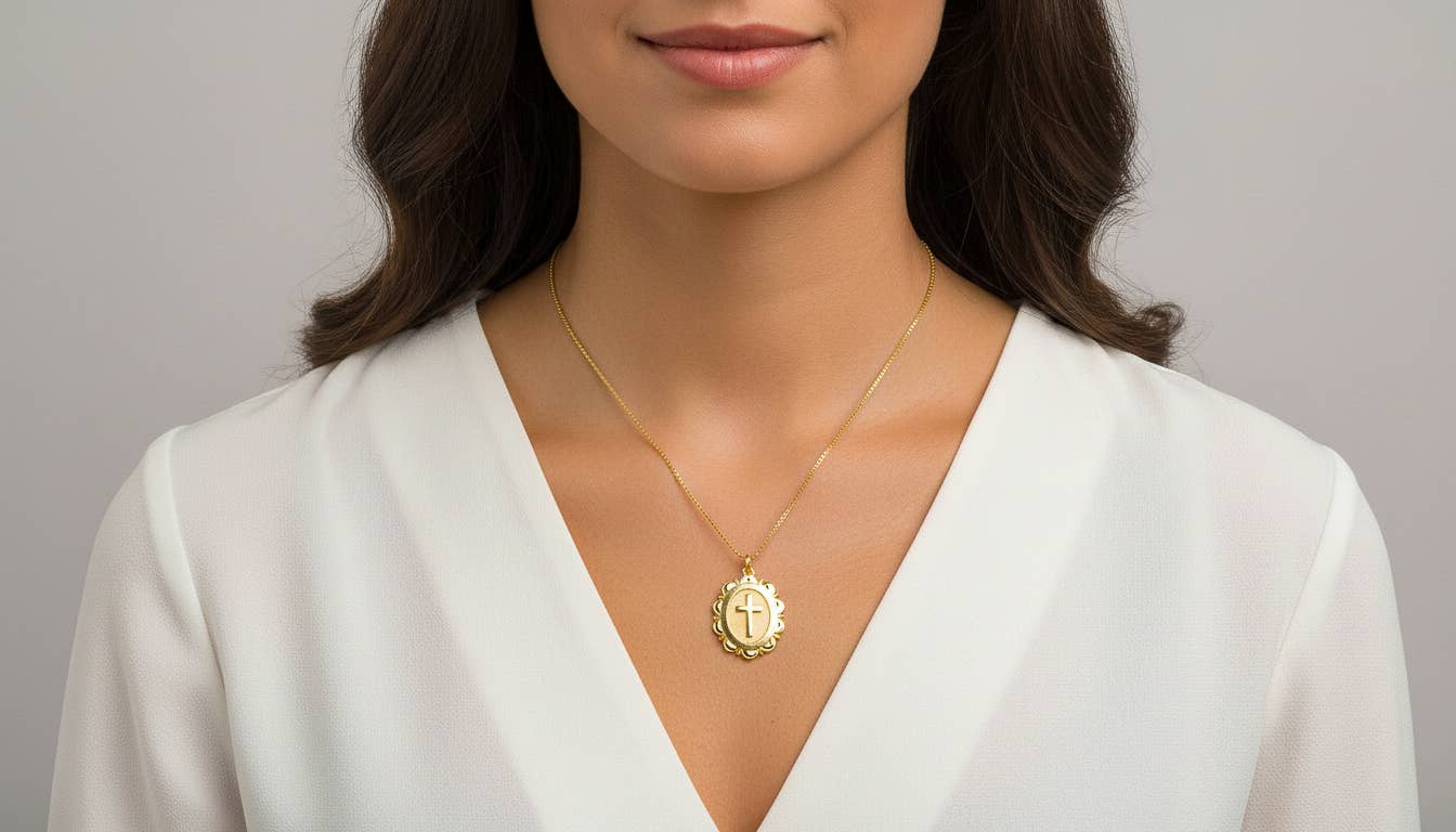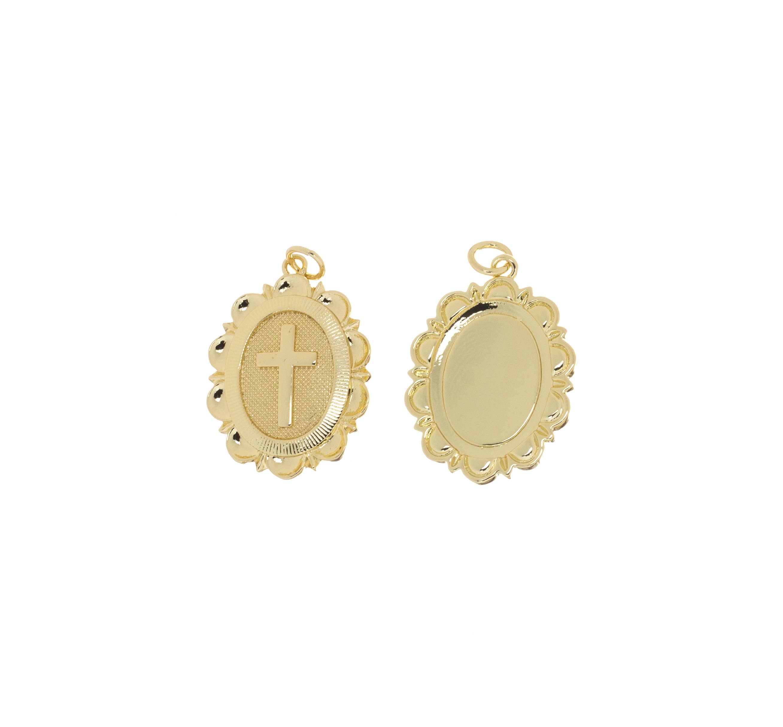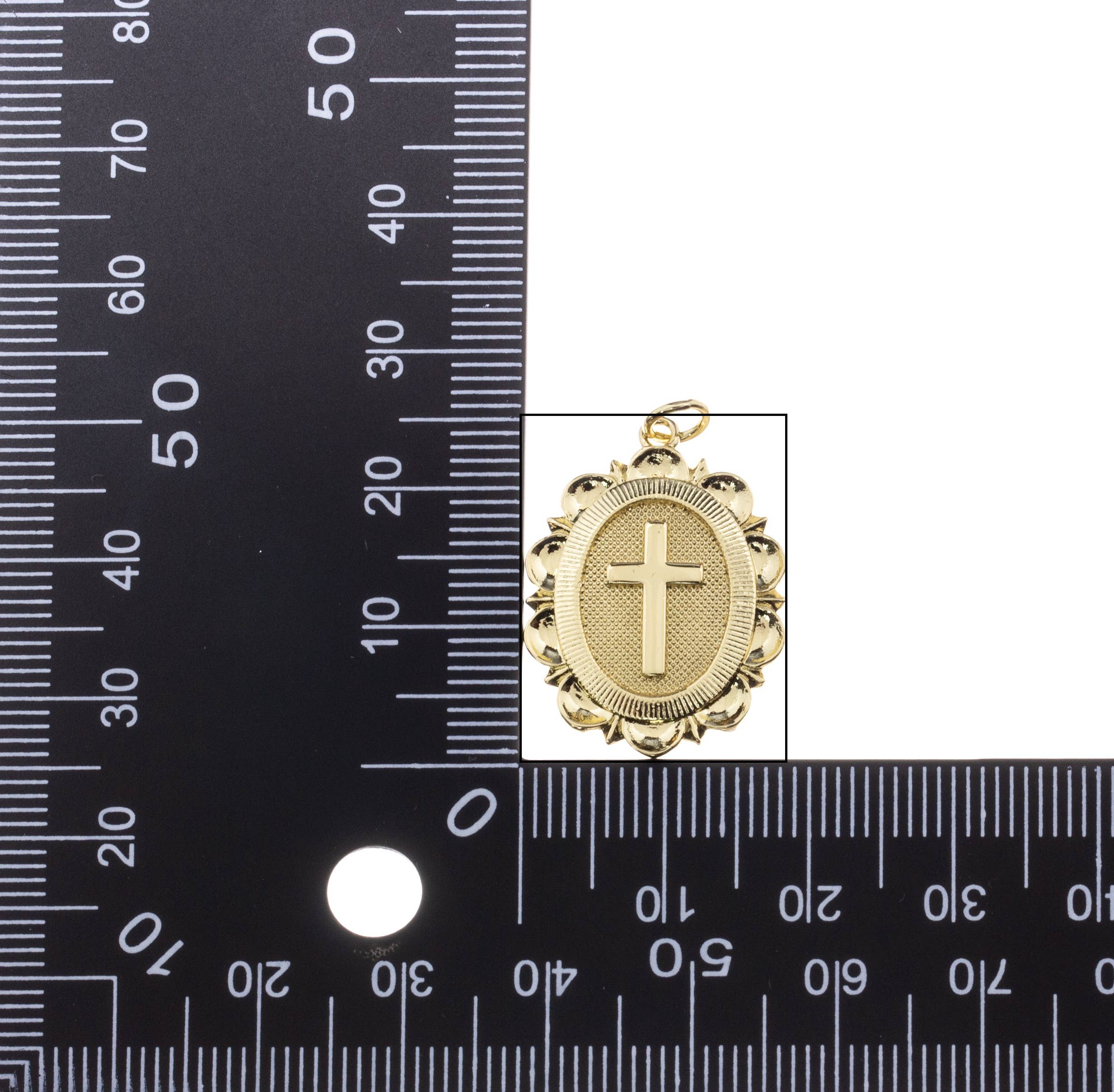 Textured Gold Cross Pendant,Oval Tag Cross Charm,CPG2943