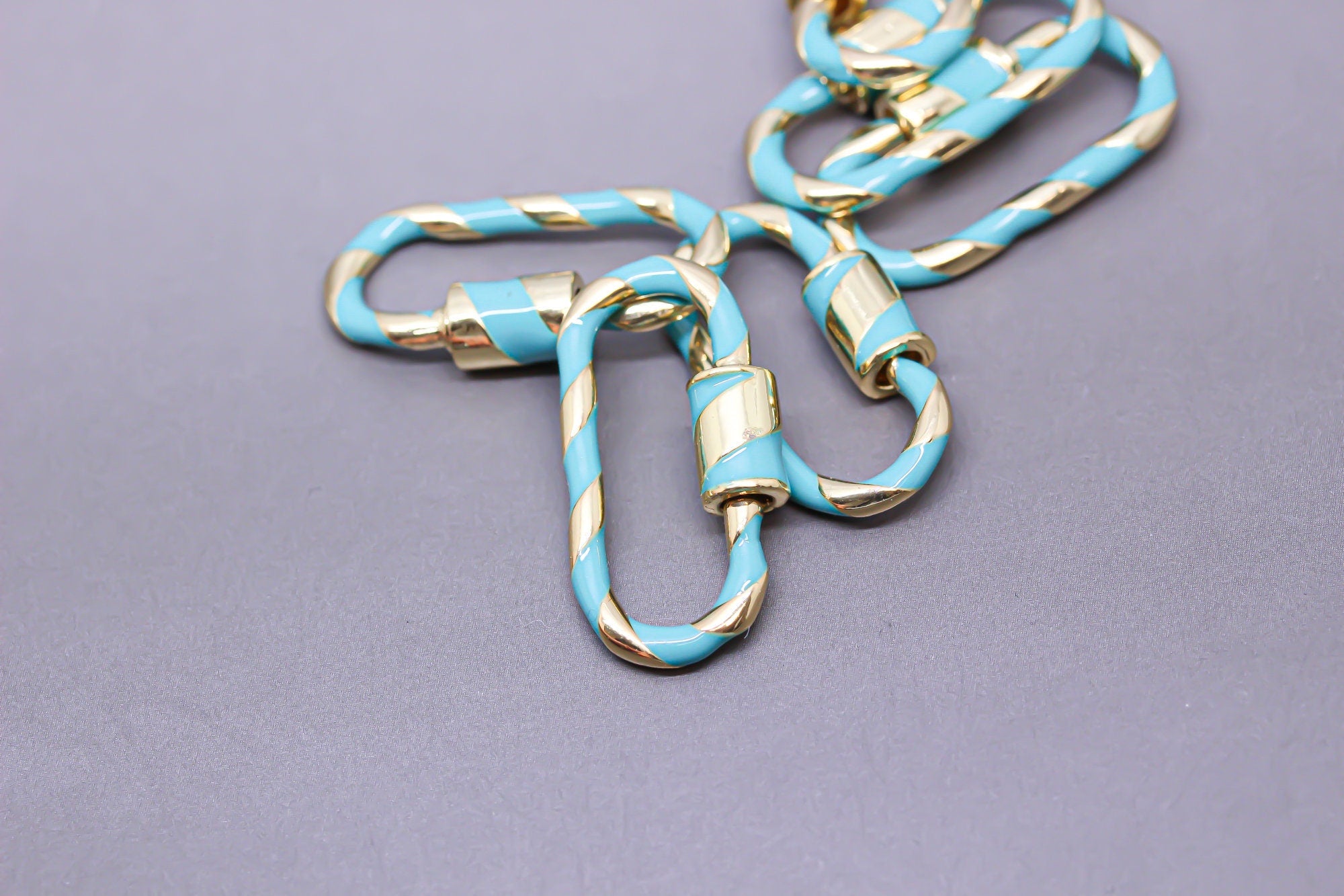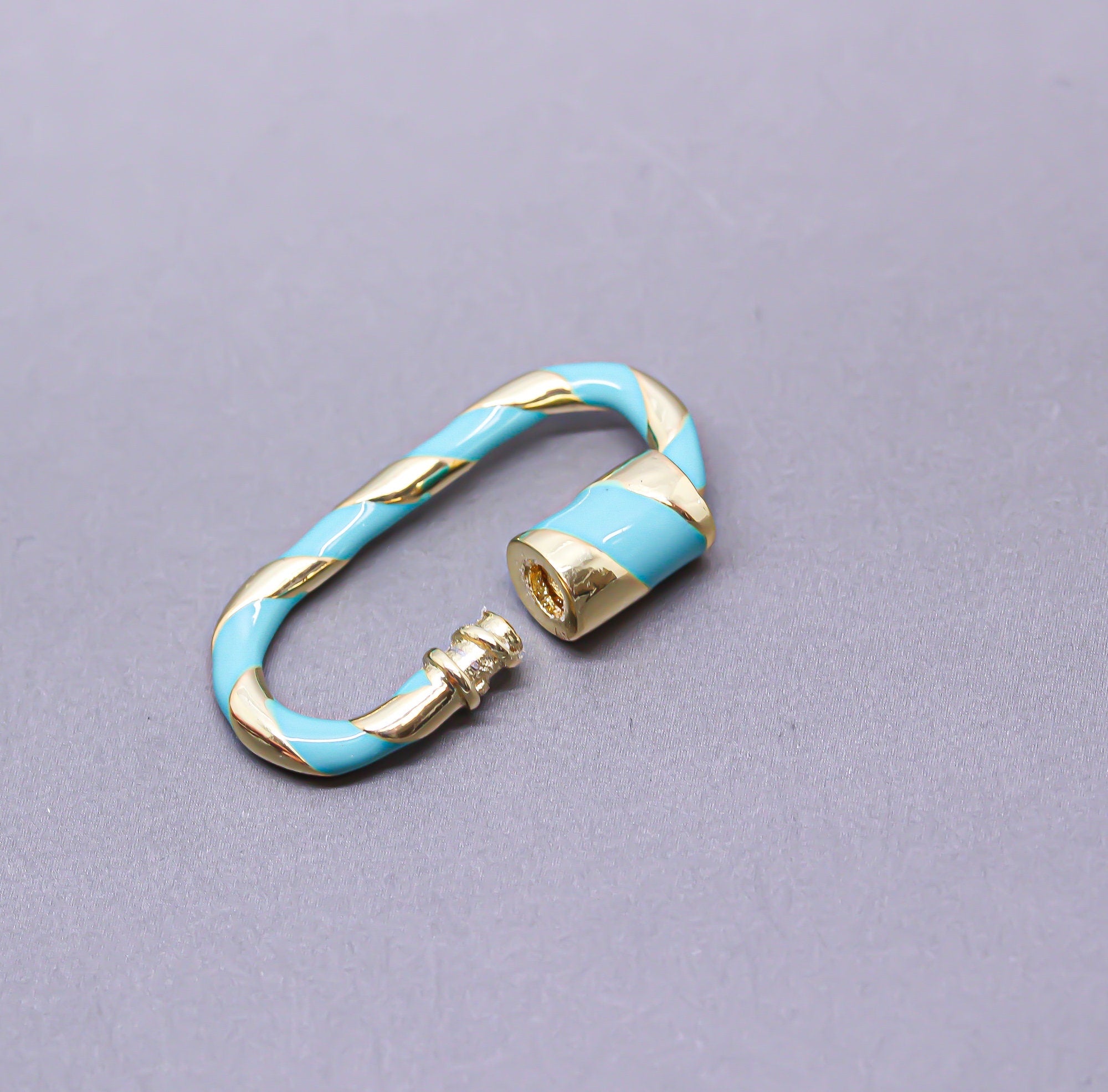 Turquoise/Gold Enamel 11x25mm Large Candy Cane Carabiner lock, Screw Clasp, Screw on Clasp, 1 pc or 10 pcs, WHOLESALE.CLG078