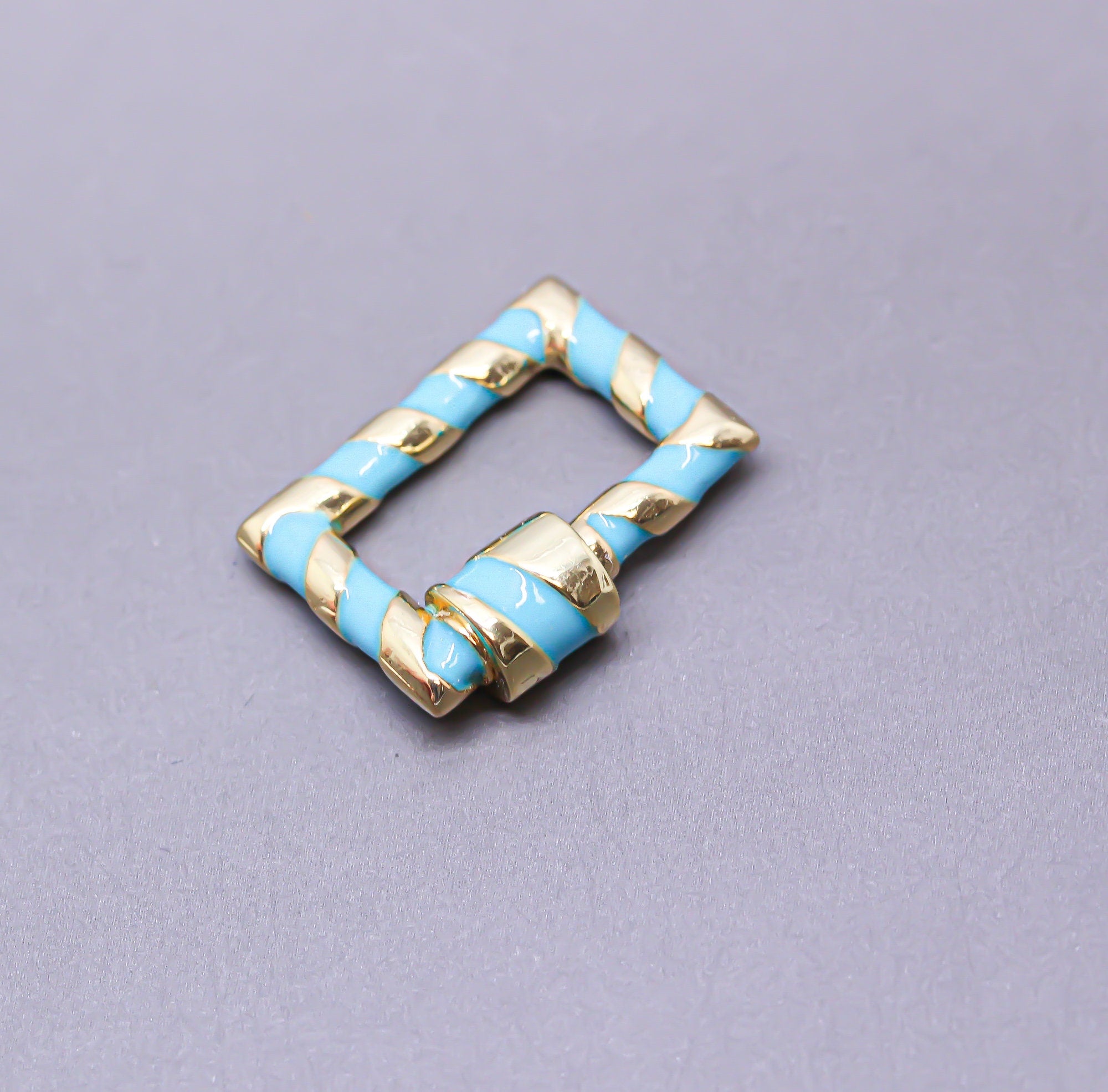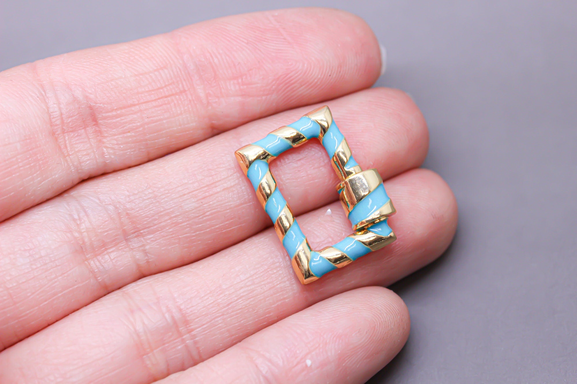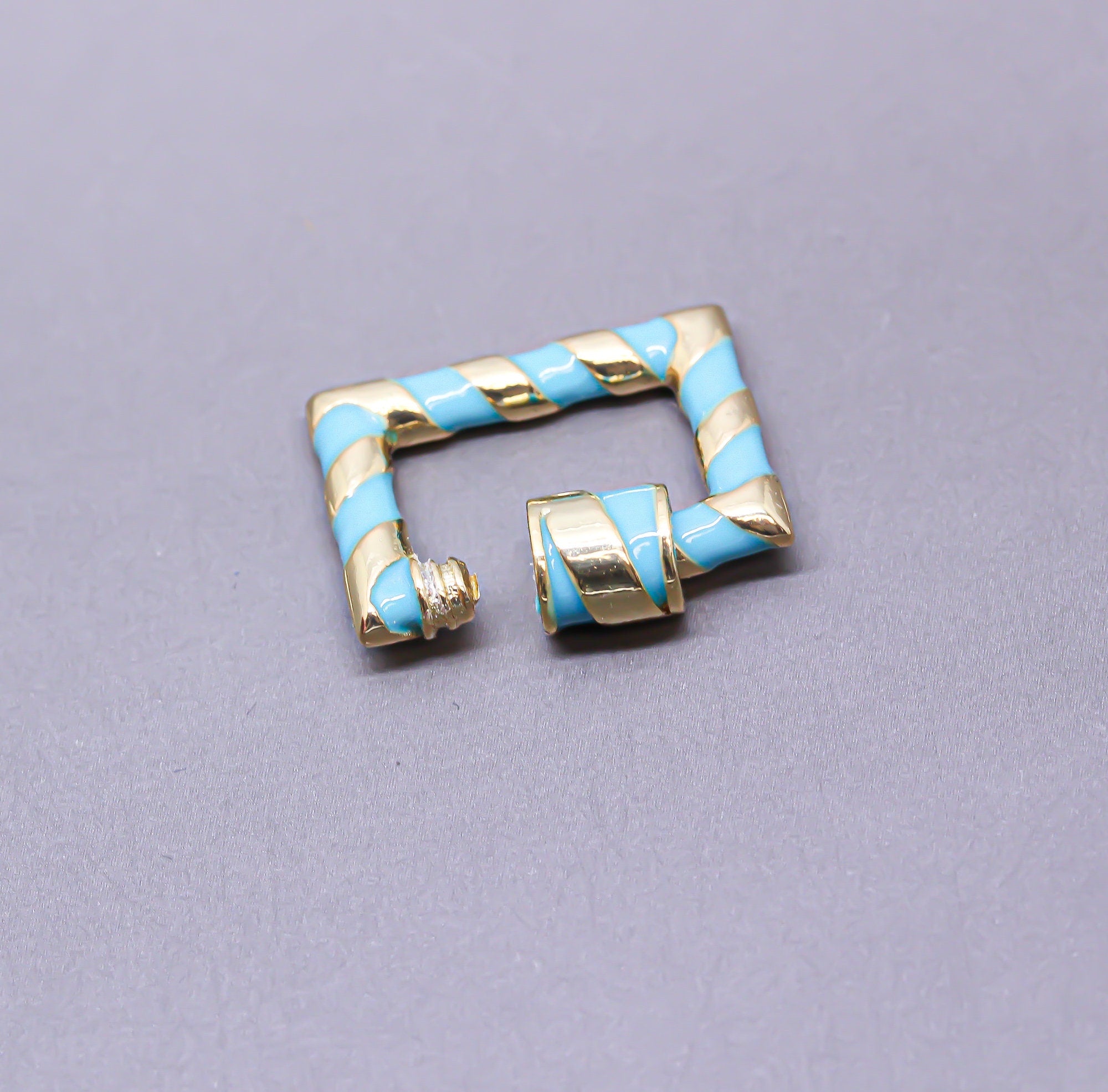 Turquoise/Gold Enamel 15x19mm Rectangle Candy Cane Carabiner lock, Screw Clasp, Screw on Clasp,CLG093