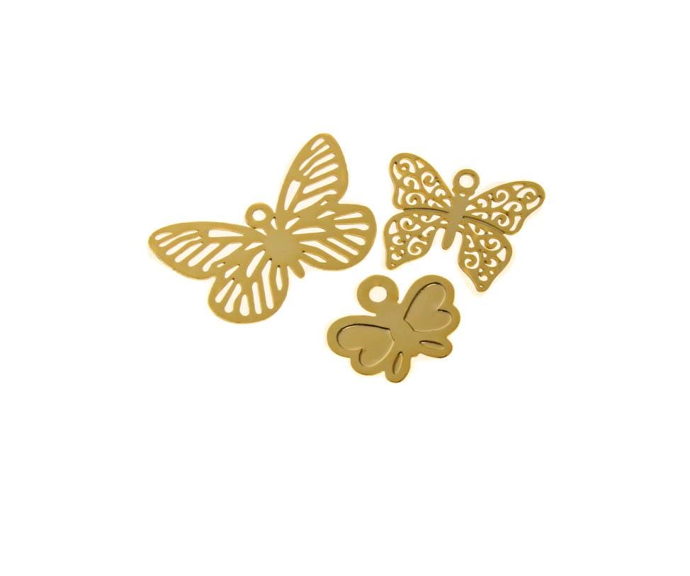 Water Proof, Tarnish Proof Gold Butterflies, Transformation, Rebirth Charm, For Necklace or earrings, Boho Chic, SSPG019-21