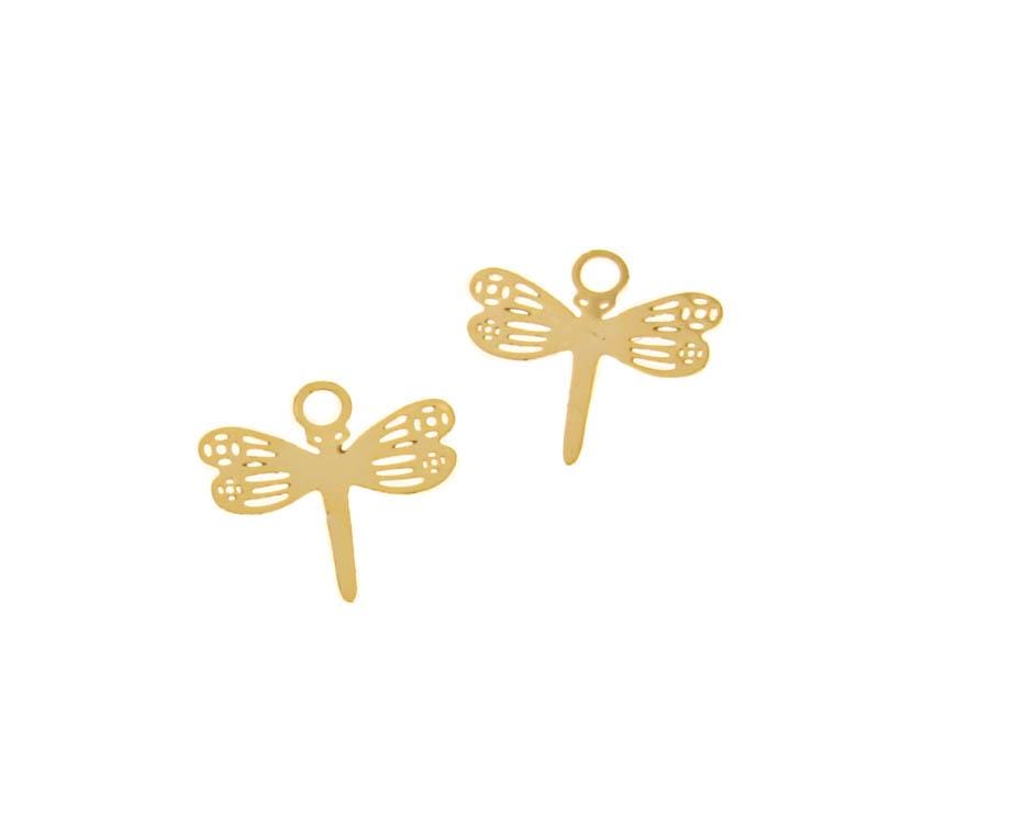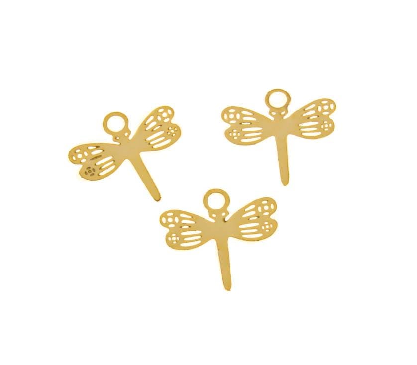 Water Proof, Tarnish Proof Gold Dragonfly, Wisdom, Adaptability Charm, For Necklace or earrings, Boho Chic, SSPG023 Dragonfly