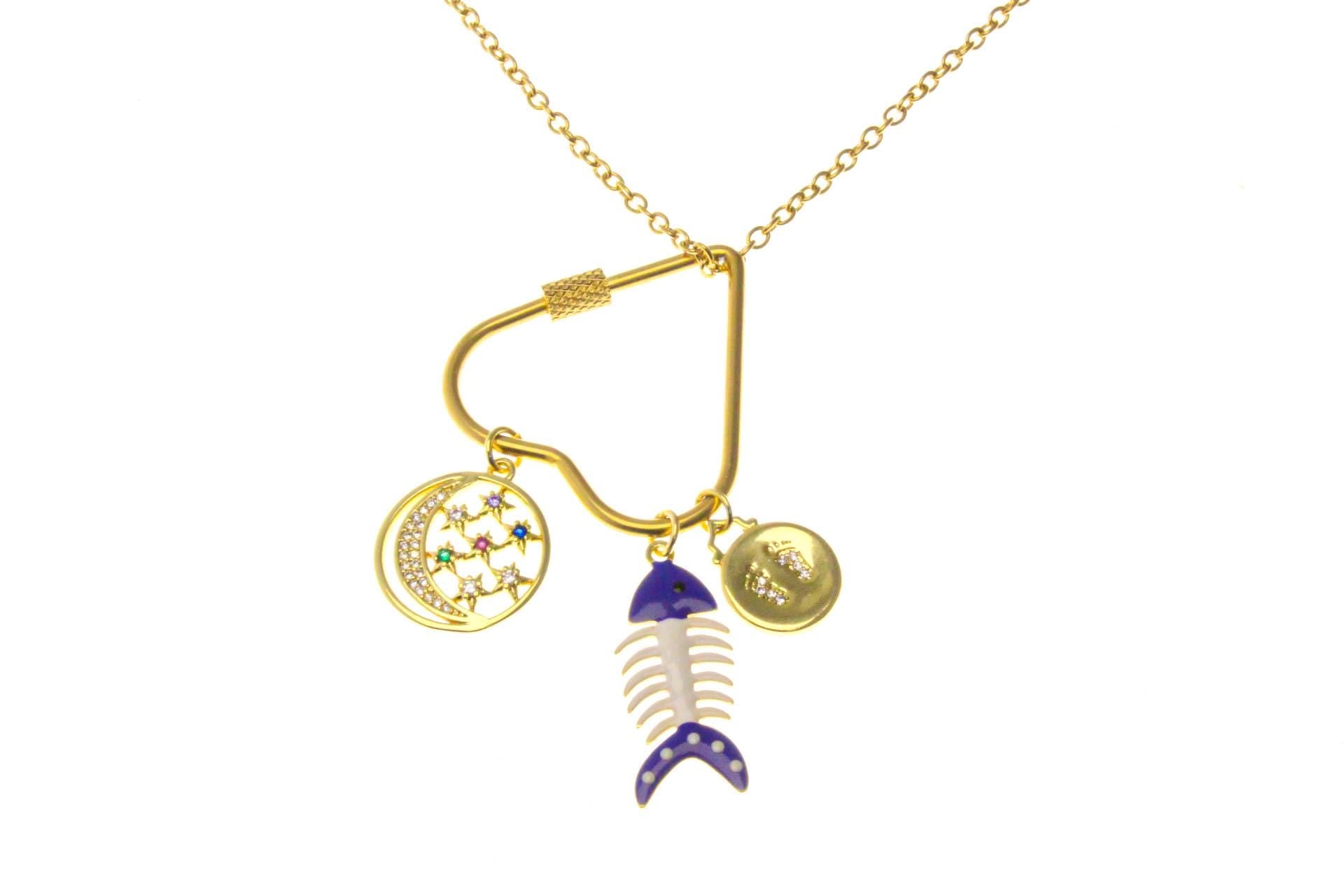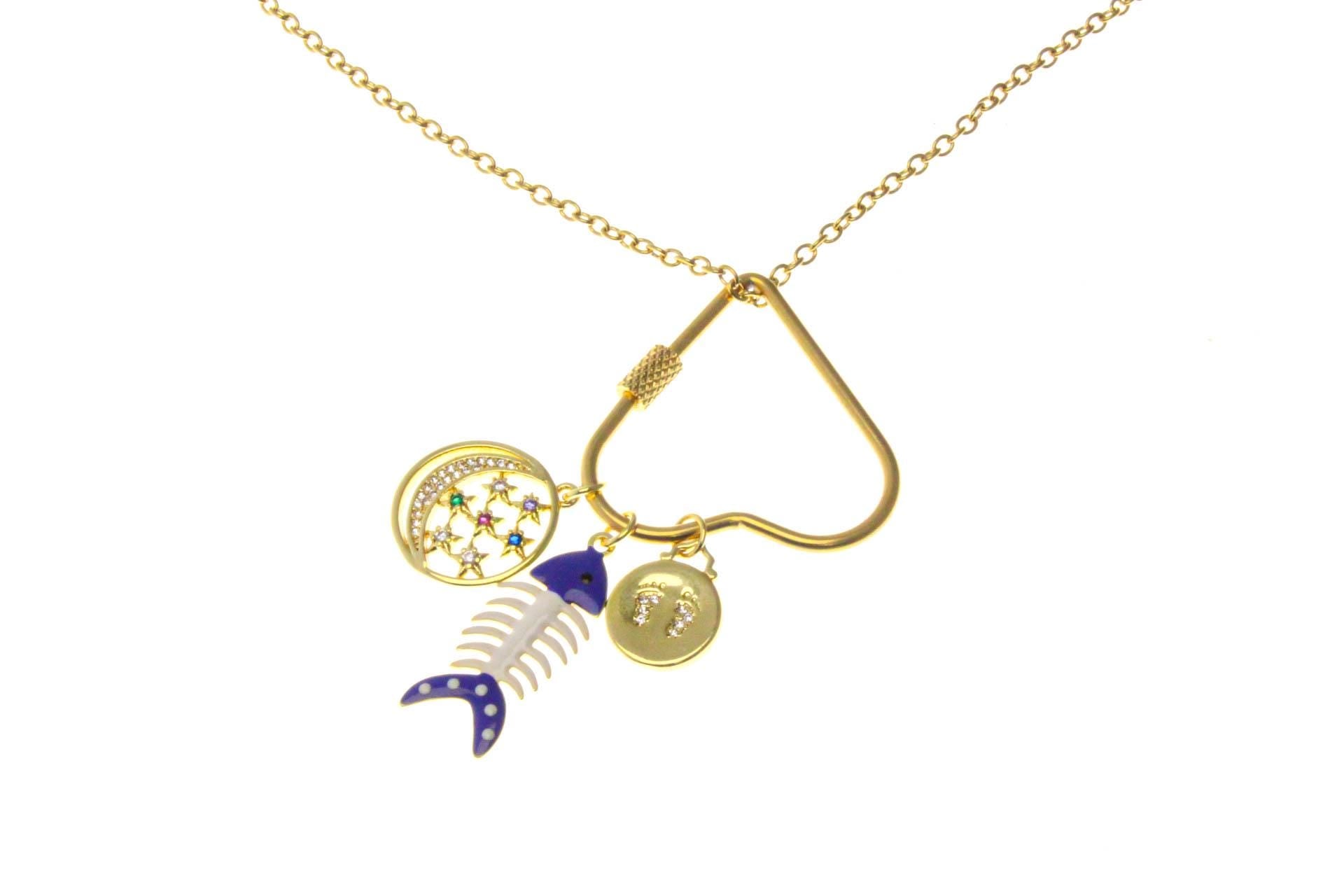 Water Proof, Tarnish Proof Gold Heart Carabiner, Screw on Textured Clasp, for Charm Necklace or Bag Charms, Large Size 241130RJAX-1