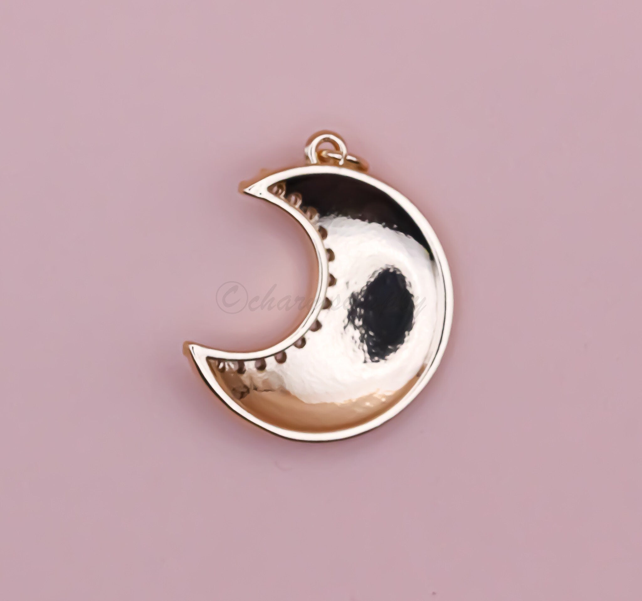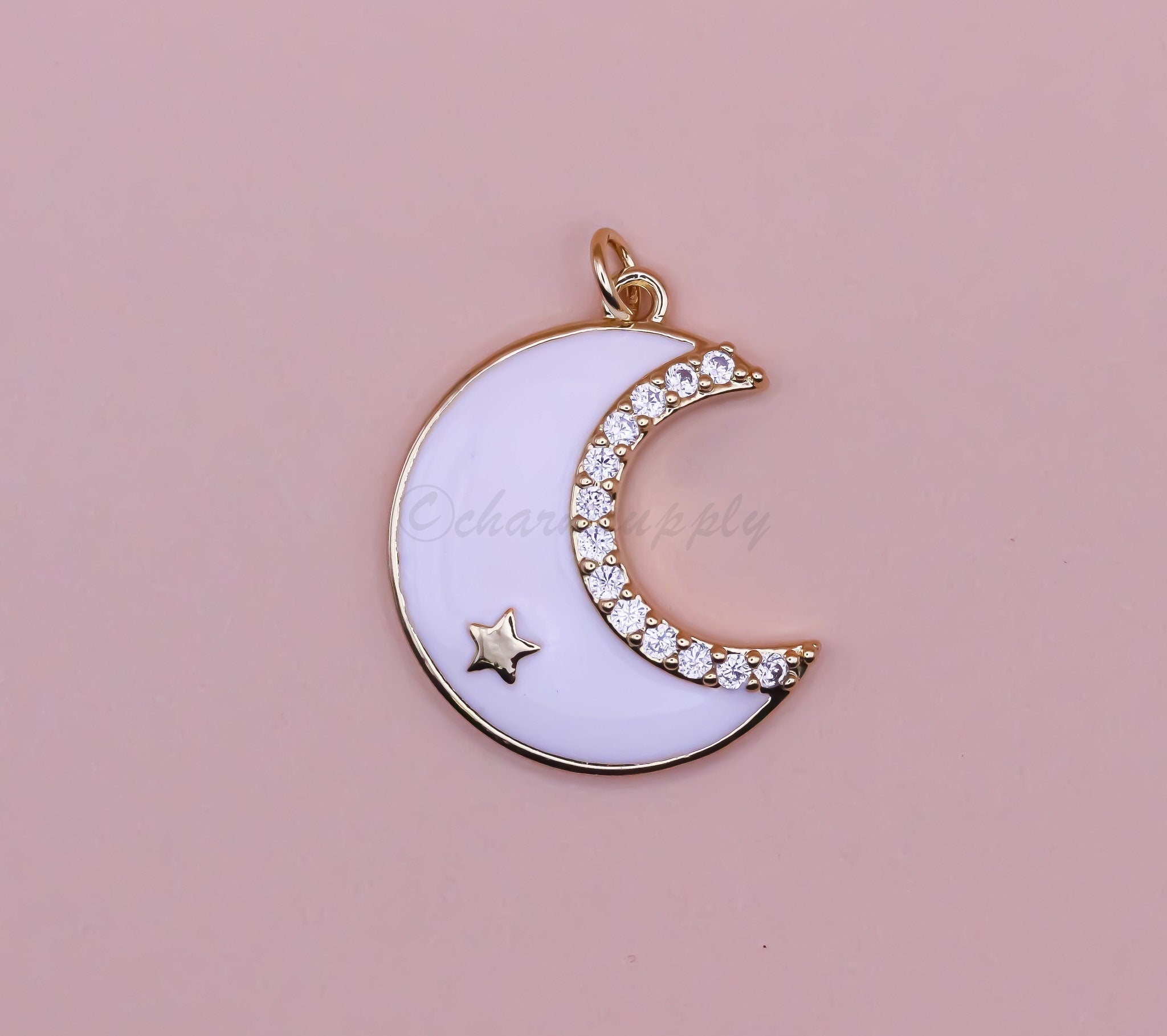 White enamel Moon cz accent Pendant, 22x18mm, crescent moon pendant, moon charm, white moon jewelry,CPG245