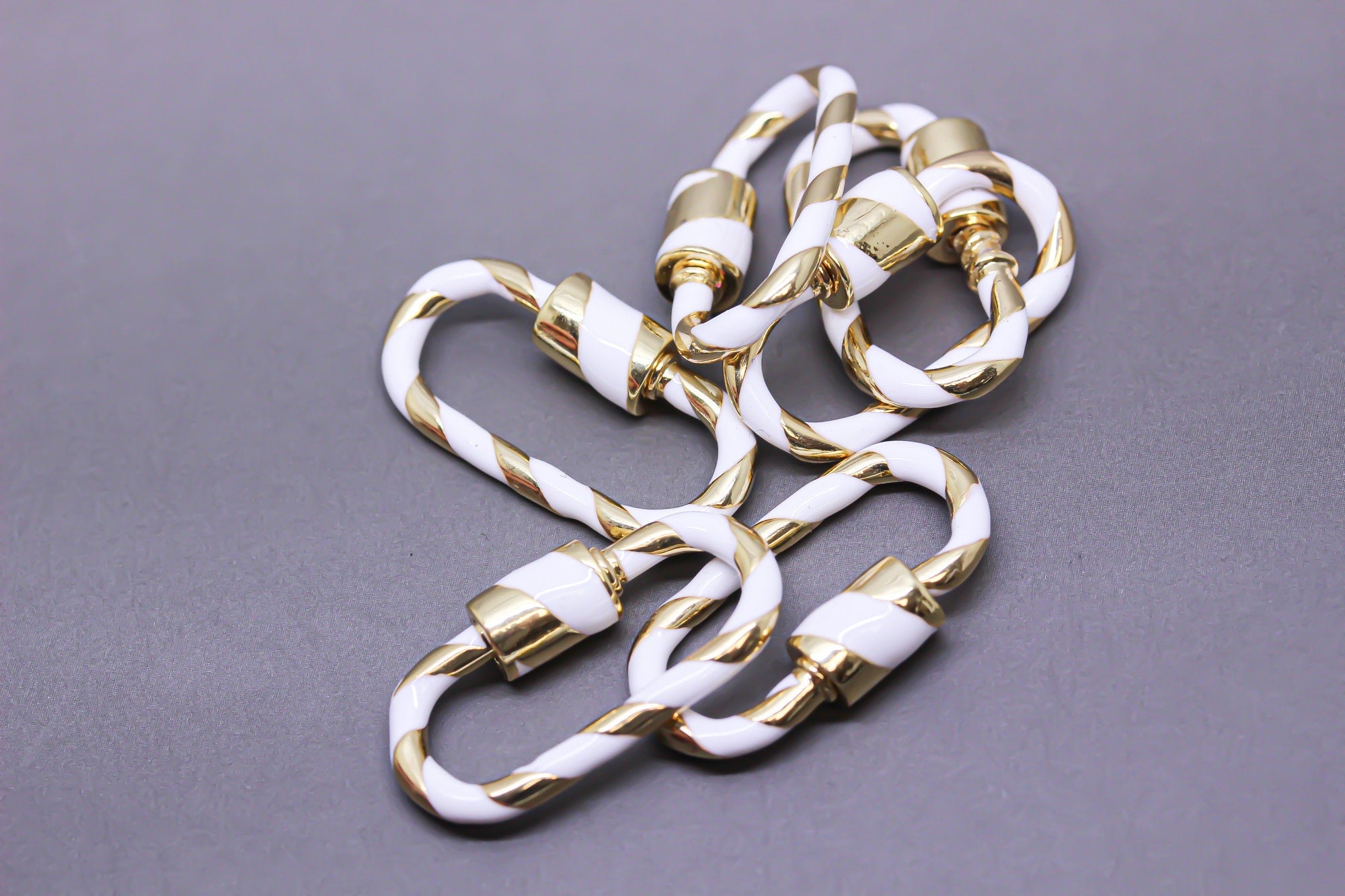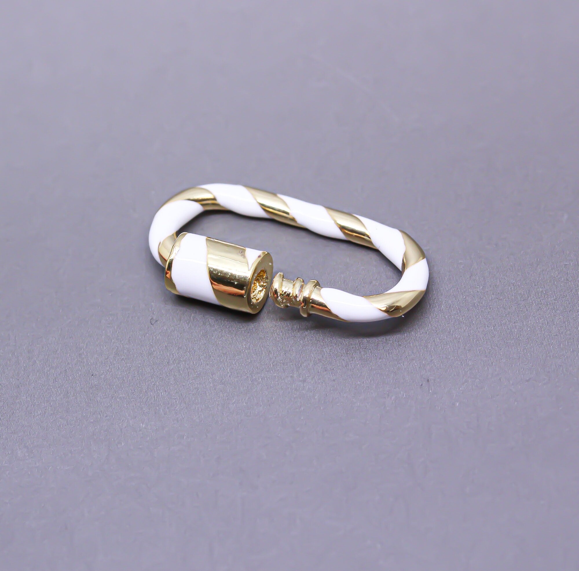 White/Gold Enamel 11x25mm Large Candy Cane Carabiner lock, Screw Clasp, Screw on Clasp, 1 pc or 10 pcs, WHOLESALE, CLG083