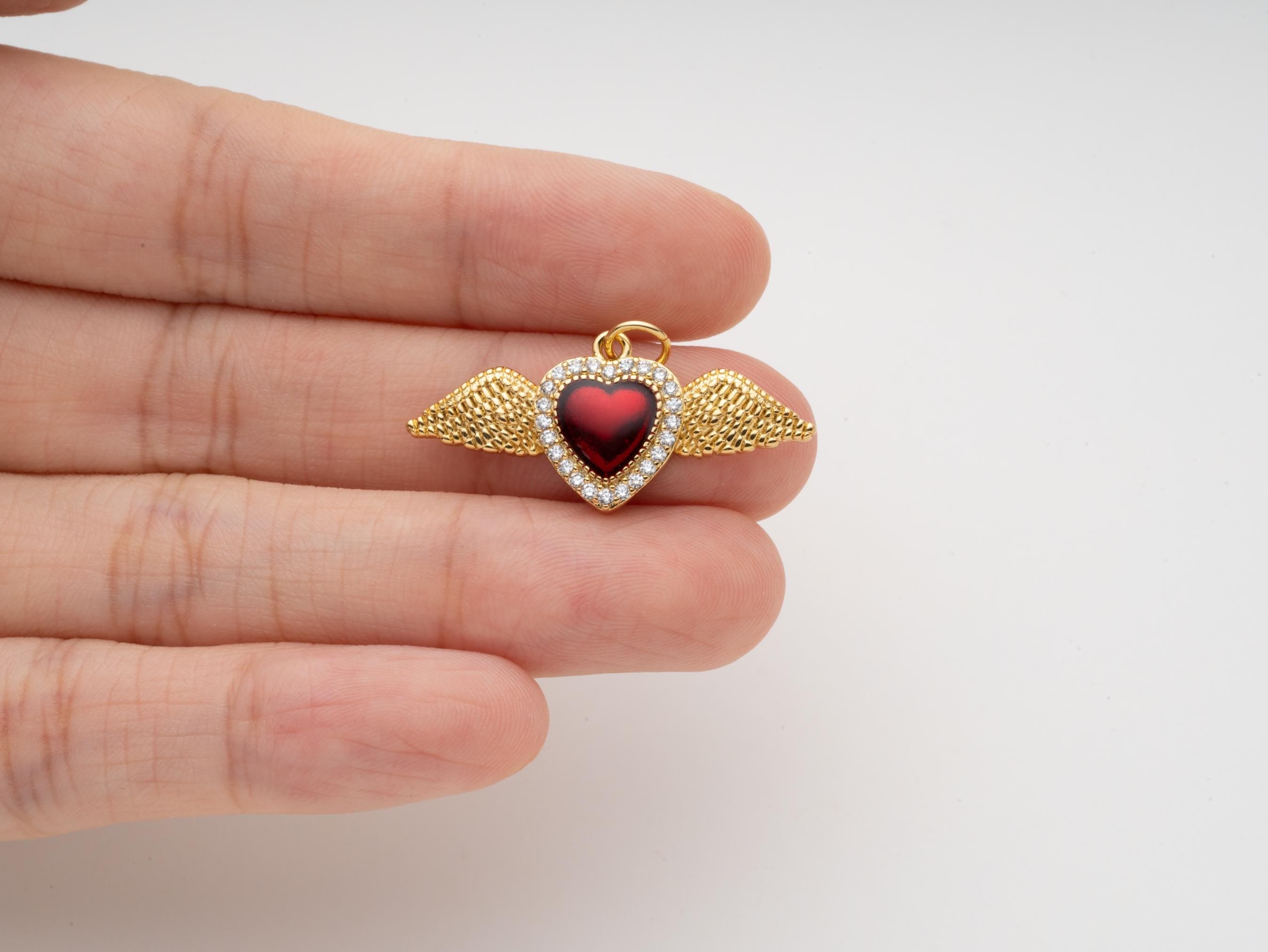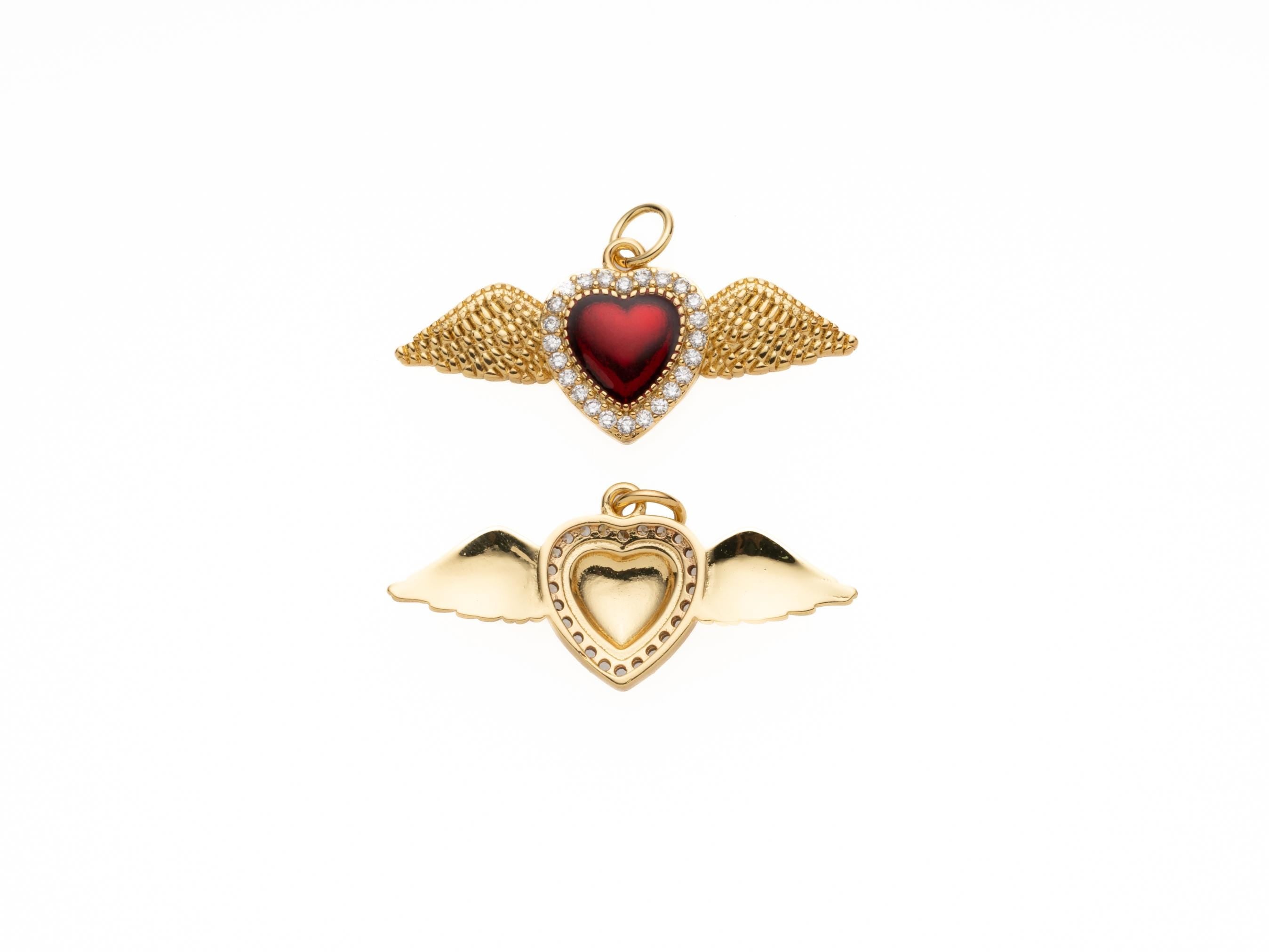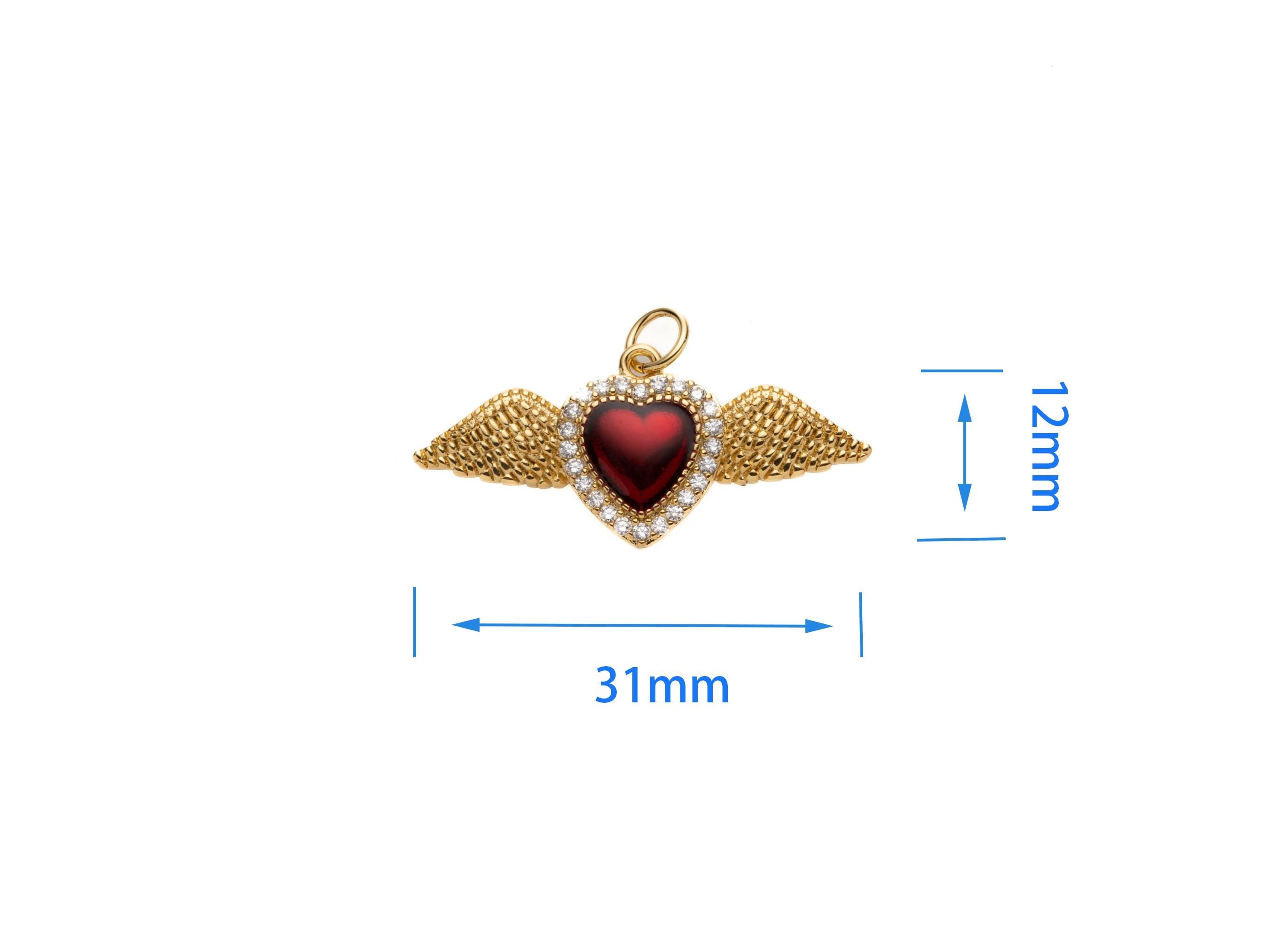 Wings Heart Pendant, MicroPave CZ Heart Necklace, Heart-Shaped Charm, DIY Jewelry Making Supplies, CPG2018